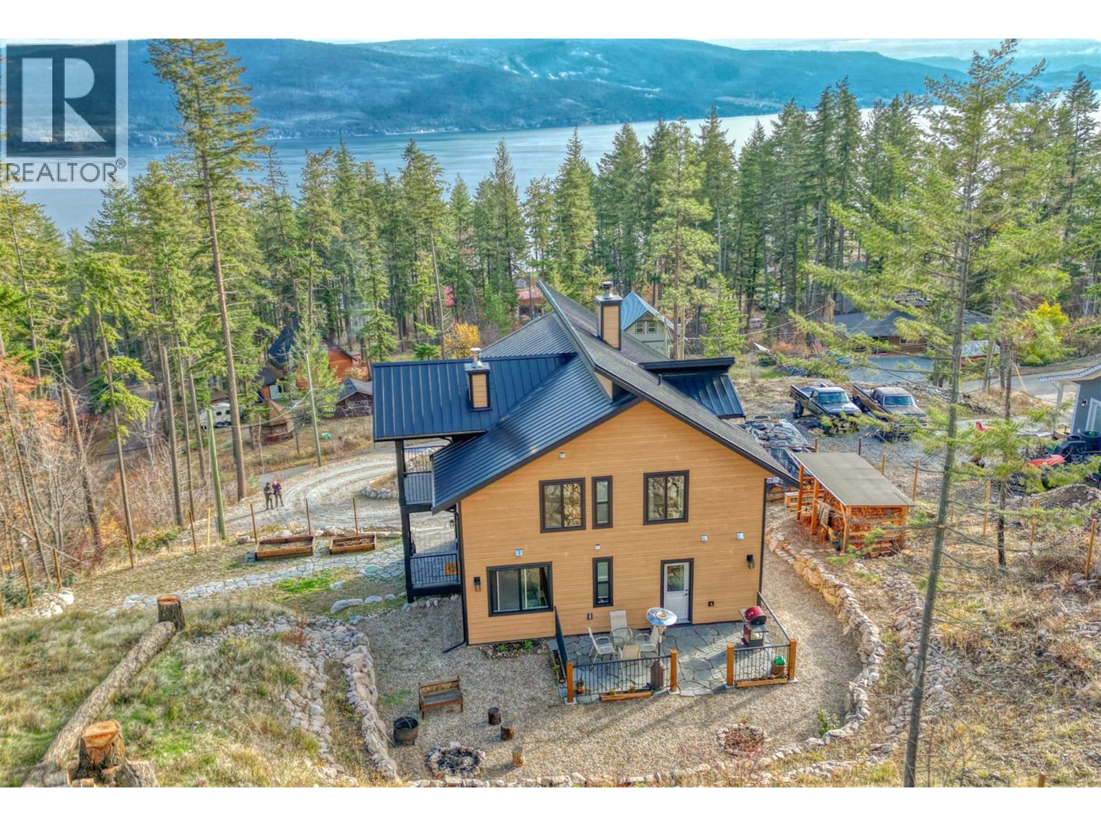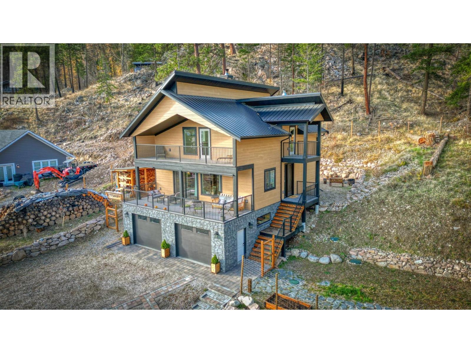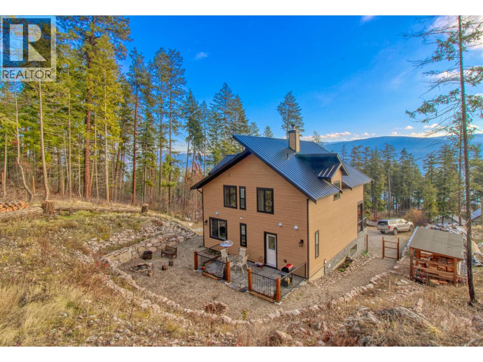 STUNNING Contemporary Custom Home, beautifully built & maintained has to be seen in person to be appreciated . . . Huge amount of parking space . . . Okanagan Lake views over the trees . . Large covered decks plus Patio in this very Private half acre location . . . SAUNA room with it's own covered balcony on top floor . . . Centrally located WOOD STOVE for cozy living & low heating cost through the winter . . . High ceilings . . . Worry-free Metal Roof . . . Main floor with Open, Airy Living, Dining, Kitchen, Primary bed with en-suite, Laundry Room, additional half bathroom, Large covered deck, walk out to private rear patio. . . . Top floor with two more bedrooms, bathroom, Large open loft area, covered deck, Sauna with it's own deck to cool off. . . Walk down from main to Basement/Garage with large partially finished area for Hobby room, Man/Girl Cave or extra parking for your favourite toys . . . Outside also has a fenced area ideal for the keen gardener, large wood storage shed. . . . The community of Killiney Beach has many activities at their community hall just down the street plus several public beaches, boat launches and Westshore Community Park with even more outdoor events . . . (id:6770)