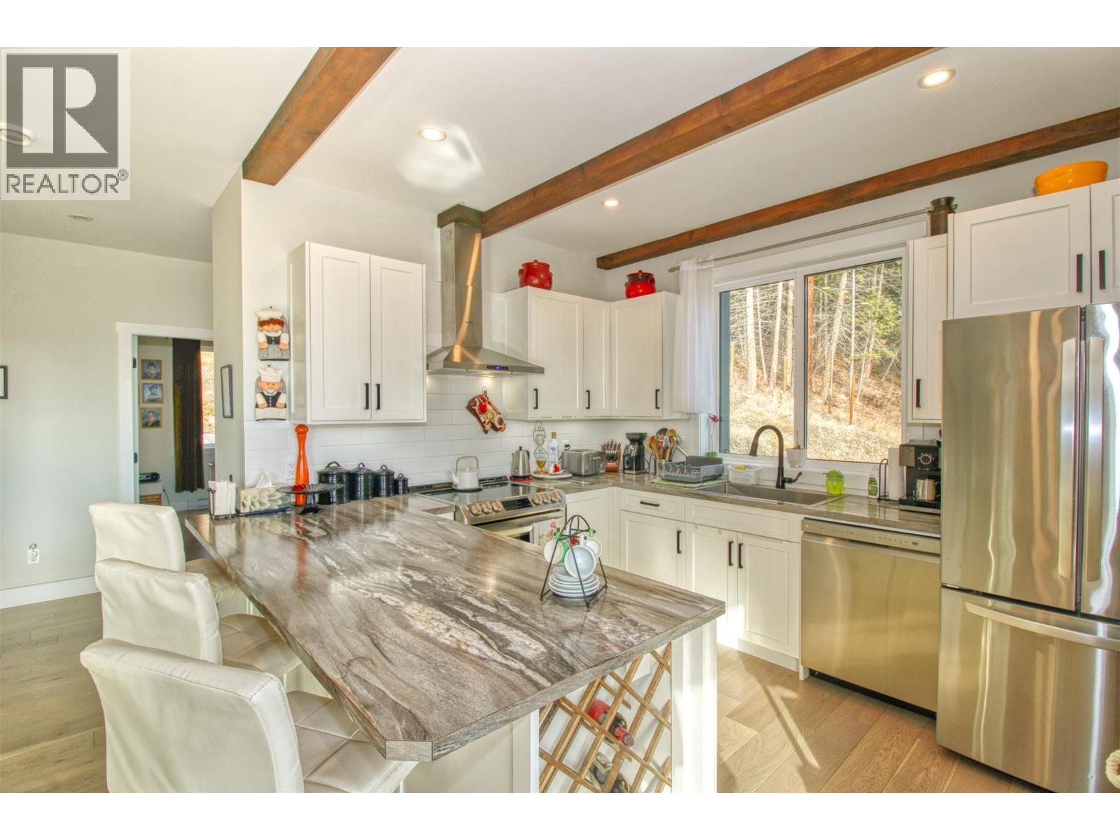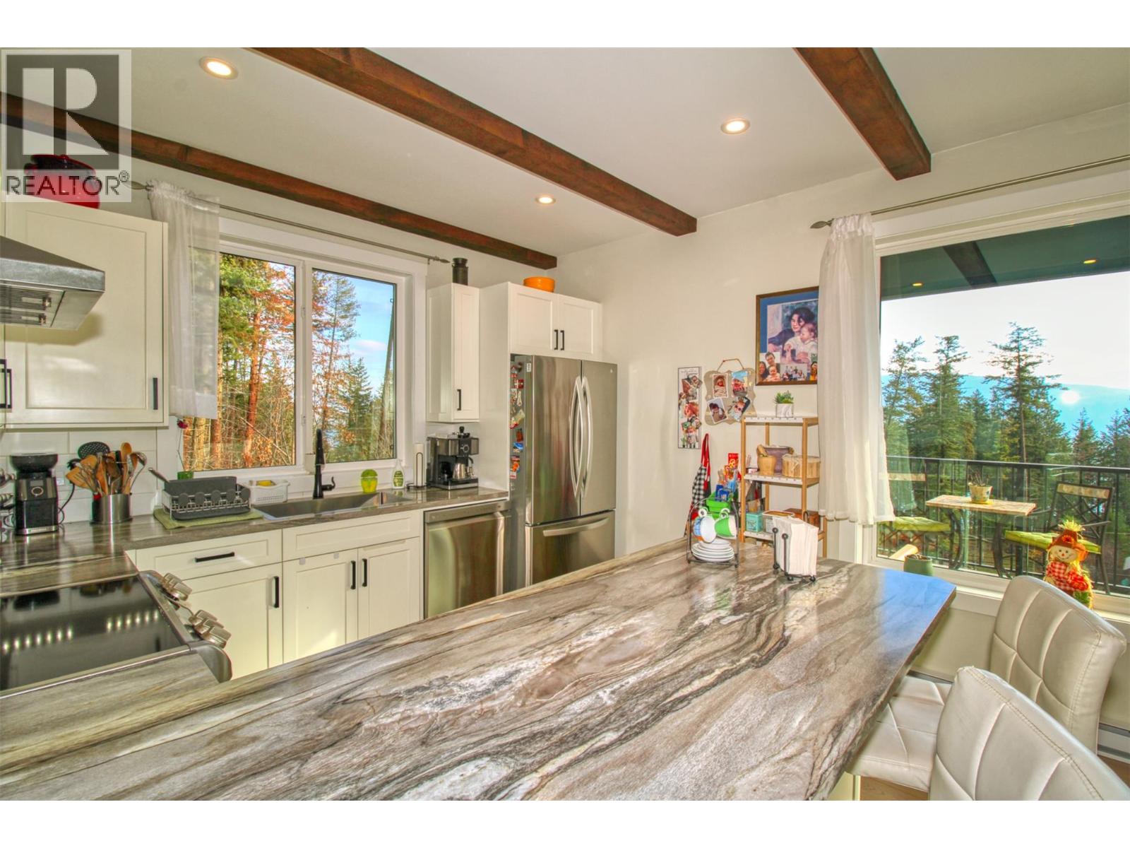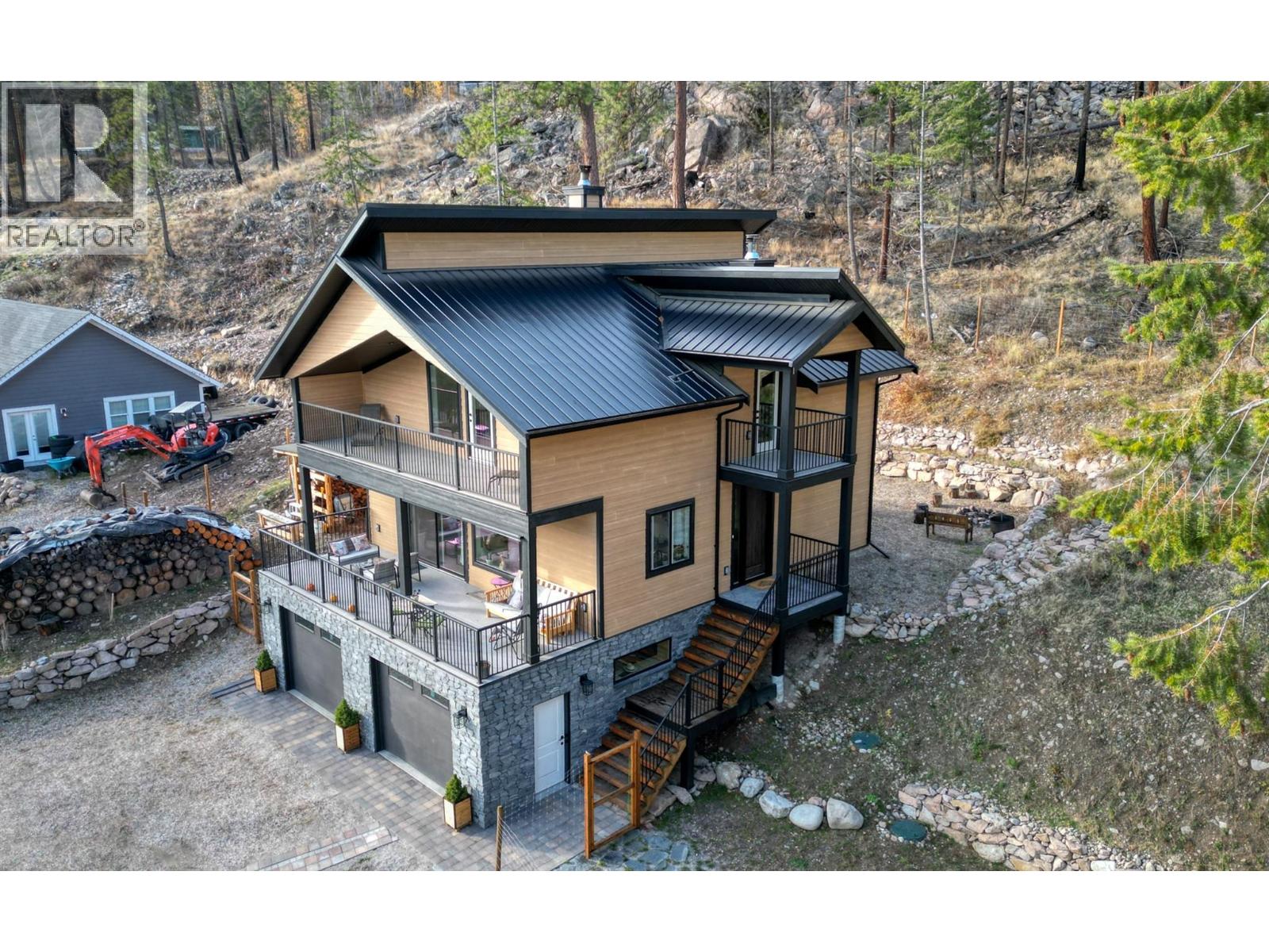 STUNNING Contemporary Custom Home, beautifully built & maintained has to be seen in person to be appreciated . . . Huge amount of parking space . . . Okanagan Lake views over the trees . . Large covered decks plus Patio in this very Private half acre location . . . SAUNA room with it's own covered balcony on top floor . . . Centrally located WOOD STOVE for cozy living & low heating cost through the winter . . . High ceilings . . . Worry-free Metal Roof . . . Main floor with Open, Airy Living, Dining, Kitchen, Primary bed with en-suite, Laundry Room, additional half bathroom, Large covered deck, walk out to private rear patio. . . . Top floor with two more bedrooms, bathroom, Large open loft area, covered deck, Sauna with it's own deck to cool off. . . Walk down from main to Basement/Garage with large partially finished area for Hobby room, Man/Girl Cave or extra parking for your favourite toys . . . Outside also has a fenced area ideal for the keen gardener, large wood storage shed. . . . The community of Killiney Beach has many activities at their community hall just down the street plus several public beaches, boat launches and Westshore Community Park with even more outdoor events . . . (id:6770)