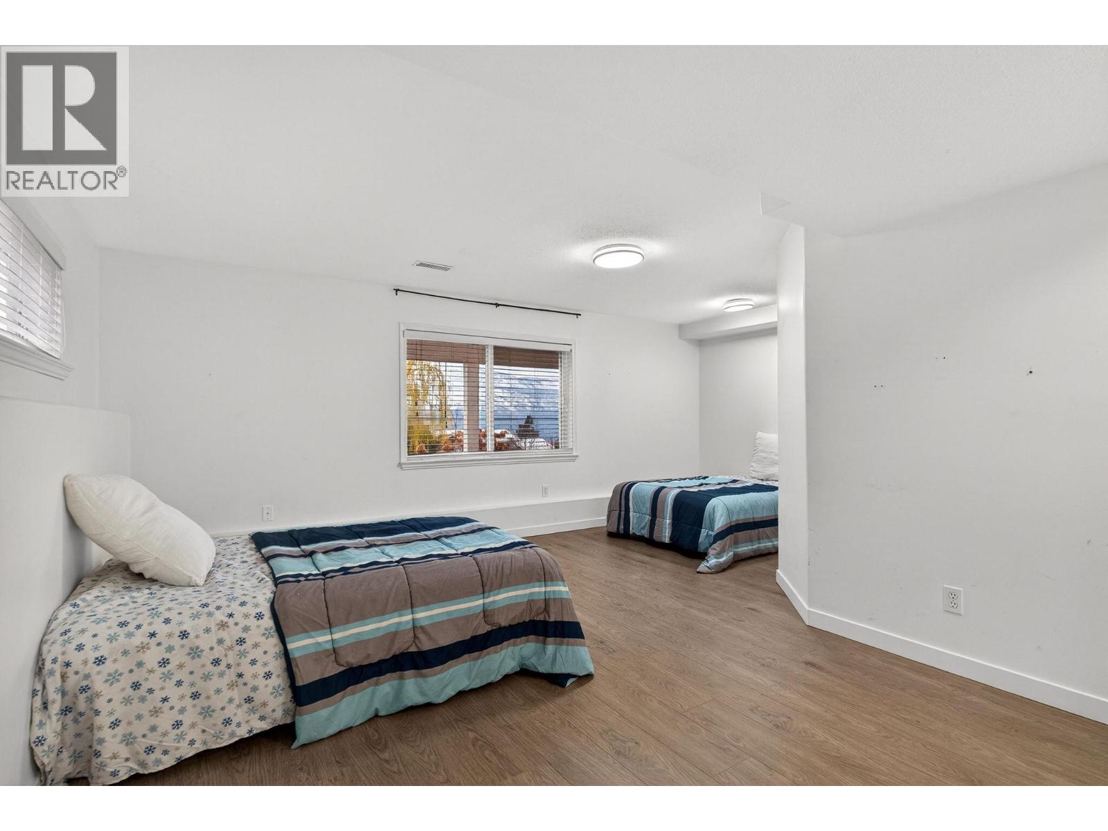 Stunning Walk-Out Rancher with Lake Views & Legal Suite. It’s all about location & breathtaking lake views with this beautifully designed walk-out rancher. This 4-bedroom, 3-bathroom home features a highly functional layout, was updated in 2022 & includes a fully self-contained 1-3bedroom legal suite—ideal for extended family or rental income.The main level offers a family-friendly floor plan with 3 spacious bedrooms plus a den, vaulted ceilings in the living room, a large entertainer’s kitchen and dining area, and a convenient laundry room just off the garage entry. Oversized windows flood the space with natural light, and the expansive wrap-around deck is perfect for soaking up the sun and enjoying lake views.The suite includes its own private entrance, full kitchen, laundry, a comfortable living area, a bedroom with walk-in pantry, 2 flex rooms, and a large covered patio—creating a peaceful and private space for guests or tenants.The outdoor space is just as impressive: enjoy a beautifully maintained large green space with dedicated RV and boat parking. Additional features include a double heated garage and plenty of storage throughout.Centrally located—just minutes from the beach, public boat launch, shopping, Kelowna International Airport, and UBC Okanagan. Don’t miss this exceptional opportunity—book your private showing today! (id:6770)