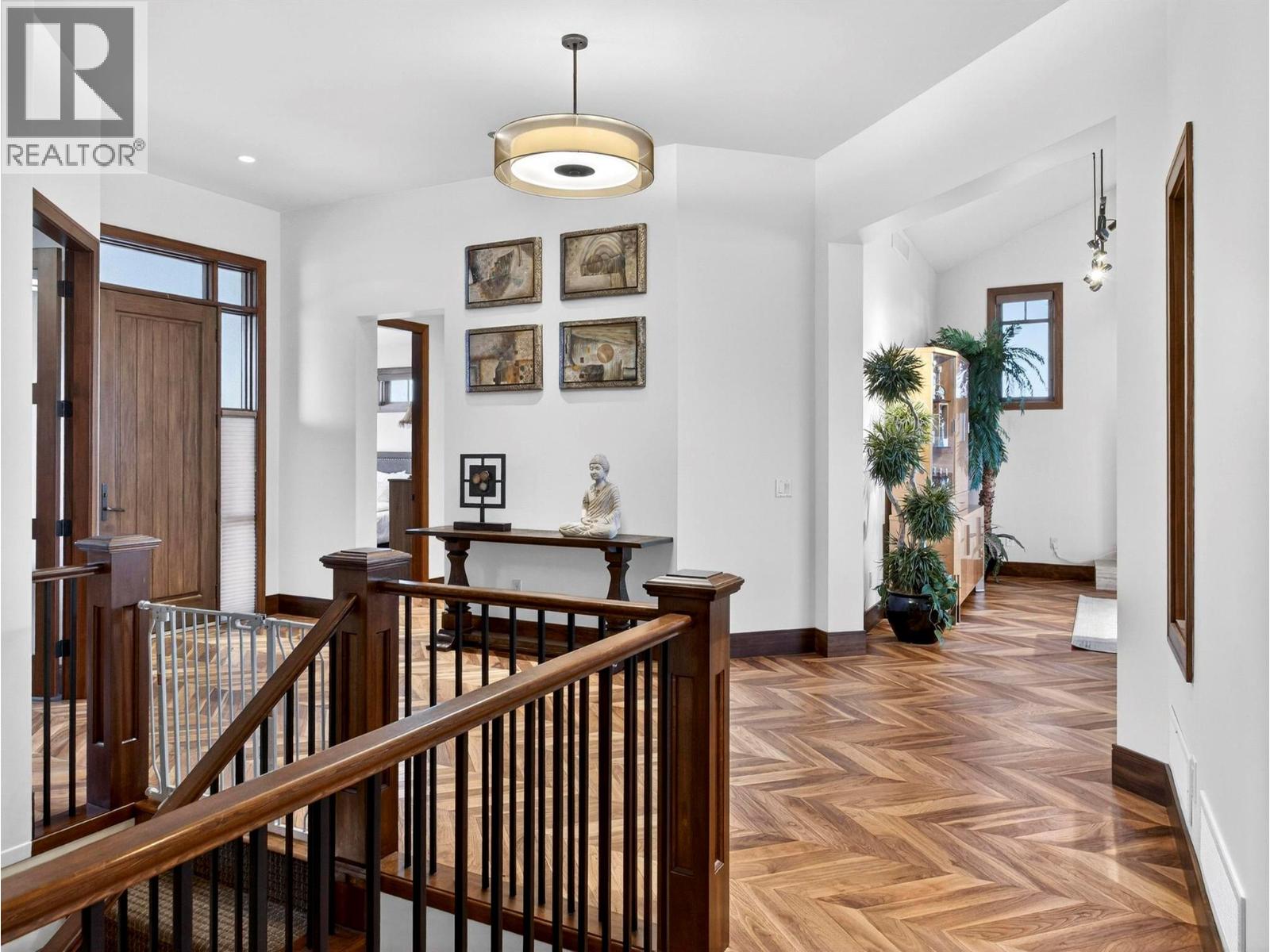 This stunning 4 Bedroom + Den residence blends luxury with timeless modern design and unobstructed panoramic lake views. Gorgeous herringbone hardwood floors, soaring ceilings, and a cozy gas fireplace create an inviting yet elevated atmosphere in the great room, enhanced by expansive windows that frame the surrounding scenery. The open-concept layout flows into a spacious dining area and gourmet kitchen featuring a massive island, high-end Jenn-Air stainless steel appliances, and a fully equipped butler’s pantry. The oversized sundeck - with glass railings - offers breathtaking lake views and effortless indoor/outdoor living. The main level hosts two bedrooms, each with its own ensuite, including the primary retreat with a deluxe 5 piece spa-like ensuite, walk-in closet, and direct sundeck access. A stylish powder room and full laundry room complete the main floor. The fully finished basement adds two additional bedrooms and bathrooms, a large rec room with a wet bar, and 2 large flex spaces (perfect for a home office, crafts, play room, hobby room, gym) and in-floor heat! A Sonos sound system and remote blinds add a nice touch to the finishings. The rec room opens to a covered patio leading to the expansive backyard with an in-ground pool (with waterfall features) and hot tub. A recent landscape refresh made this incredible space even more beautiful. An oversized triple garage provides ample room for vehicles, storage, and toys. This is Okanagan luxury living at its finest! (id:6770)