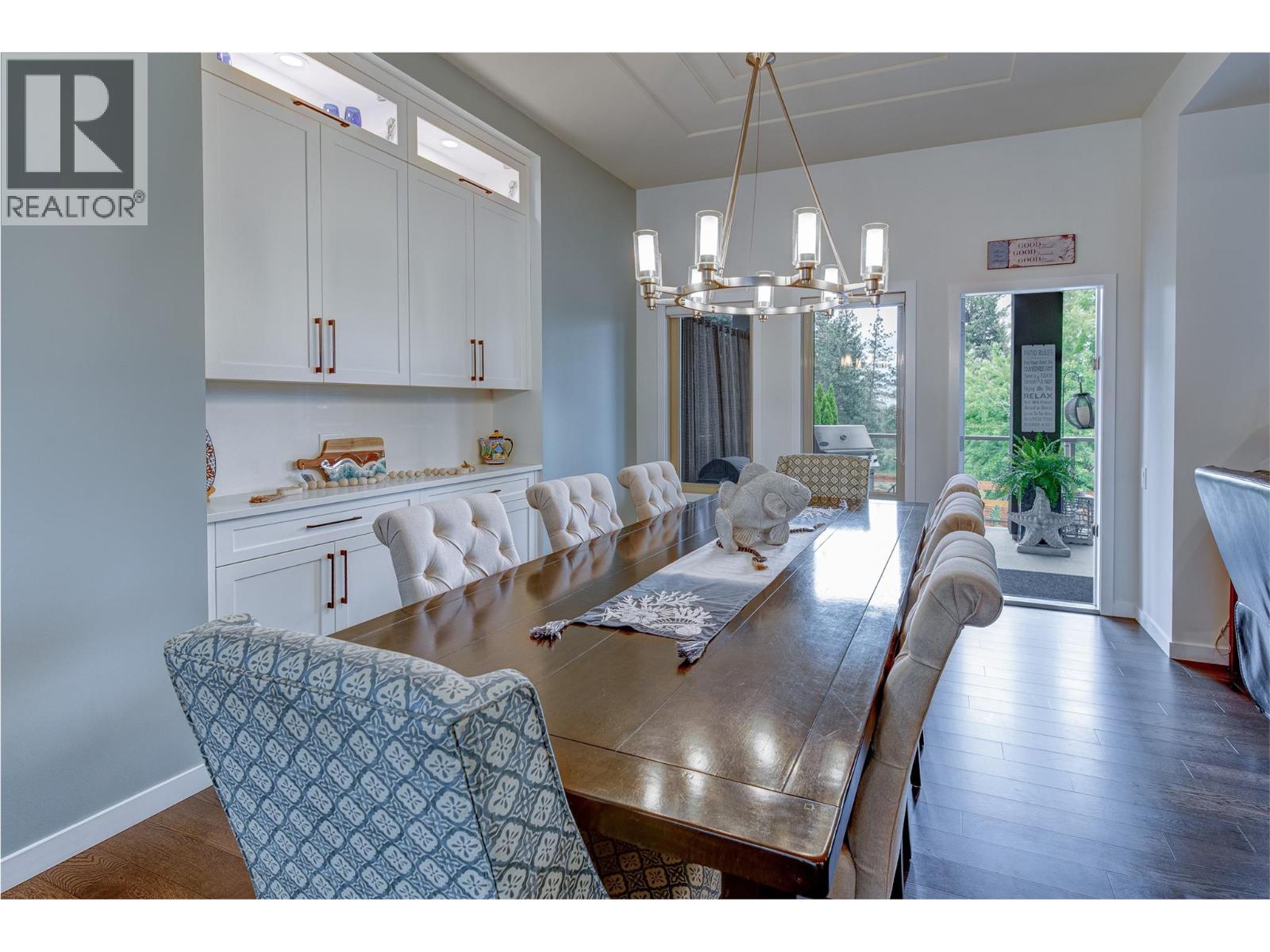 Beautifully UPDATED Walk-Out Rancher at Tallus Ridge. Private, Sun-drenched, Back Yard Oasis featuring a 1 piece fiber glass inground pool with lots of deck to lounge on! Open the front door & step into a ""Show Home"" decorated with an ""up to the minute"" color palette, feature walls, built in shelving & quartz counter tops throughout! Stunning Chef's kitchen is a joy to work in. Large Island with gas stove/oven with hood fan. Loads of cupboards, drawers, & eating bar. Dining Room has trayed ceiling & built in hutch. Living room also has a decorative ceiling & showcase travertine titled fireplace with gorgeous, solid wood wall feature. Primary Bedroom has spa-like ensuite: double sinks, corner tiled shower & separate tub, w/i closet and access to the deck. You will love the roomy Main Floor Laundry with a closet, cupboards, counters, and a sink. Large covered deck on main level overlooks the pool & patio. A curved staircase leads you downstairs to a massive recreation/family room with a 2 sided fireplace and wet bar. Loads of room for and outdoor kitchen. Bring your Pool Table! 2 more bedrooms! The storage room could become a Media Room or gym! More covered patio on the lower level to maximize your Okanagan lifestyle. Oversized garage has a epoxy floor, work bench, cabinetry, & lots of mezzanine storage. Lots of parking on driveway and room for an RV. 2 garden sheds in rear yard for pool equipment and garden tools. Minutes to golf, wineries & shopping. (id:6770)