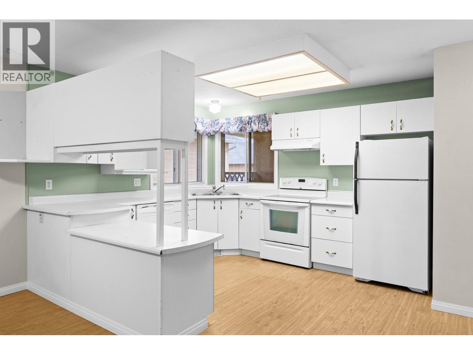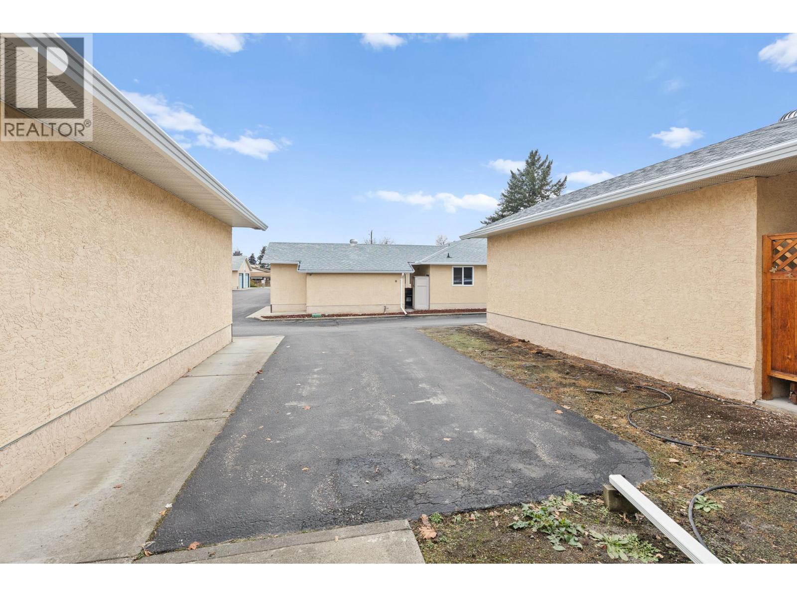Much sought after Gerstmar Park—a small, pristinely kept, level entry townhome complex with the big ticket expensive and much needed upgrades done. This is one of the largest units in the community....and any in complex in the area. Really bright end-unit at the back of the complex enjoys a super secure setting with views of a beautifully landscaped privacy area and offers over 2,000 square feet of finished space with potential to reach nearly 2,700 square feet. Inside, you’ll find huge rooms. Every space has that much sought after generous sizing. The home features 4 large bedrooms, including a entry level primary suite with a walk-in closet, and 3 bathrooms, including a downstairs bathroom plumbed for a tub/shower. The unfinished downstairs rec area offers potential for additional bedrooms, and stairs/window wells could possibly be dug down into the basement for additional exterior access or to bring in even more natural light. BIG updates include newer windows, a 2020 furnace and hot water tank, a 2025 roof and gutters, full Poly-B removal, and a water softener. Additional conveniences include a built-in vacuum, private garage, and a handy “catch-all” area at the garage door for bikes, bins, and more. This home is surrounded by lush lawn space and centrally located on a bus route, close to UBCO, and within walking distance to all amenities. What a great spot. (id:6770)