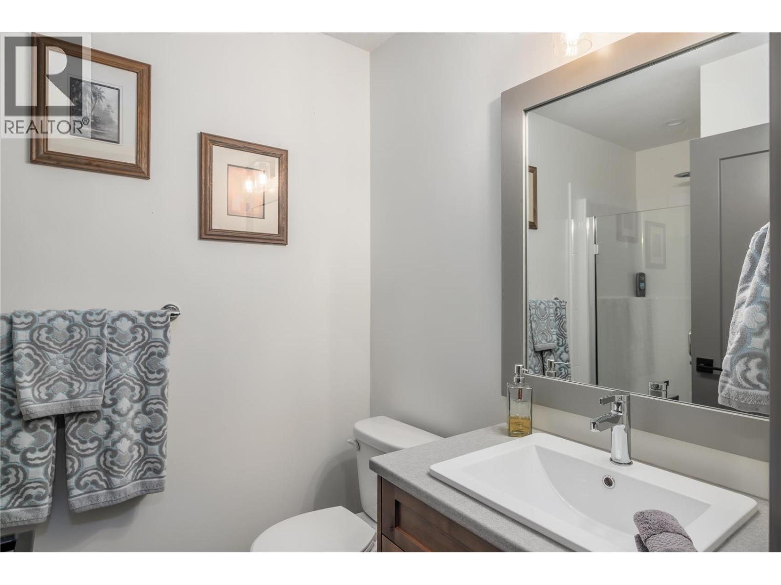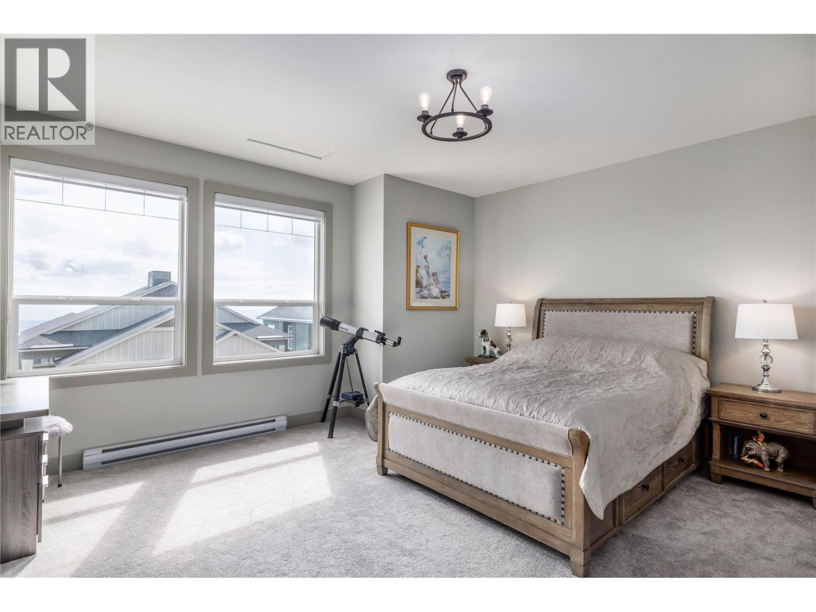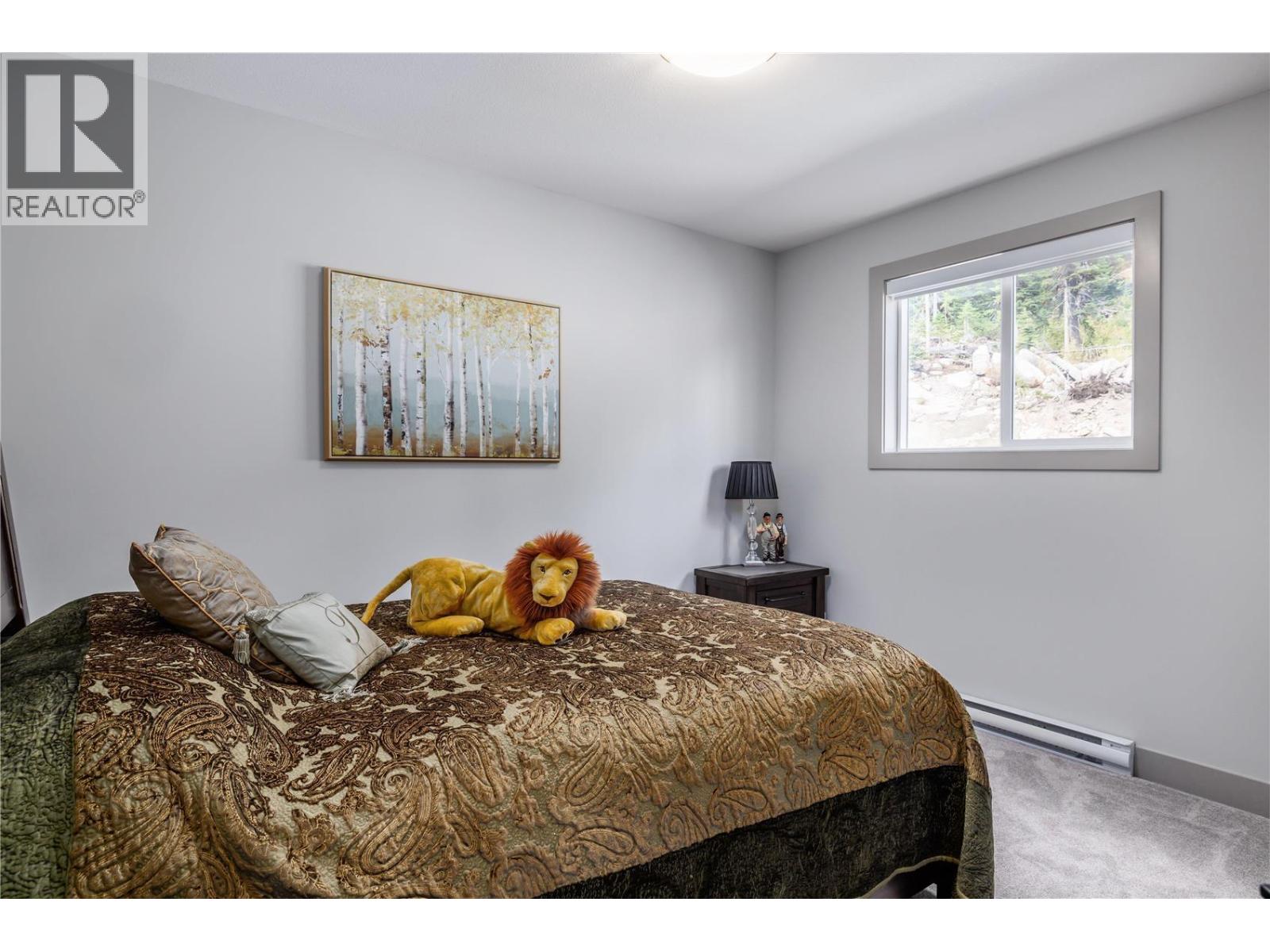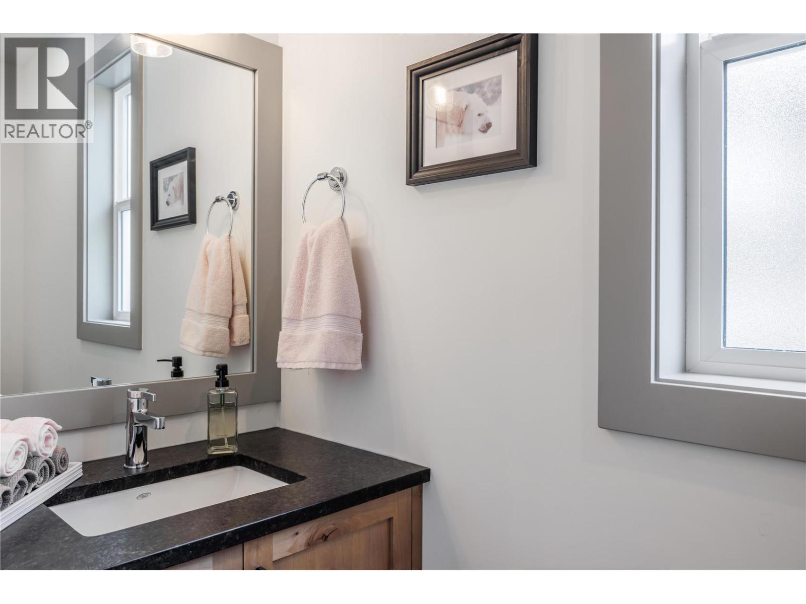 This professionally designed semi-attached home with mountain views at Big White boasts four well-appointed bedrooms and four bathrooms and over 1900 square feet of living space, ideal for family gatherings and entertainment. Enjoy the convenience of ski in/ski out access from the nearby Serwa ski run and a short walk to all Village amenities. The main level features a gourmet-inspired kitchen with granite countertops, a gas range, wine fridge, stainless steel appliances, along with a spacious dining area. A cozy living area with an impressive floor to ceiling gas fireplace provides a warm ambiance & offers views of the Monashees. The covered private deck has space and hook-ups for a hot tub, as well as additional room for lounging & BBQ. On the upper floor, discover the primary suite with a walk-in closet and ensuite bathroom with heated floors, alongside two large bedrooms & full bath with heated floors for quiet separation from guests. The ground floor hosts a double car garage with ample storage, hallway with heated floors to an extra room, and a full bathroom also with heated floors—perfect for guests or kids. With no rental restrictions, this property comes fully furnished and is ready for immediate possession. Similar properties in the area have generated rental revenues ranging from $60,000 to $85,000. Plenty of room for guests with a four car driveway where shovelling is all taken care of. Exempt from Foreign Buyer Ban, Foreign buyers tax, speculation tax, empty home tax, and short term rental ban. (id:6770)