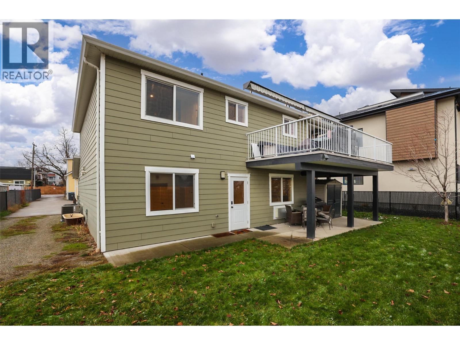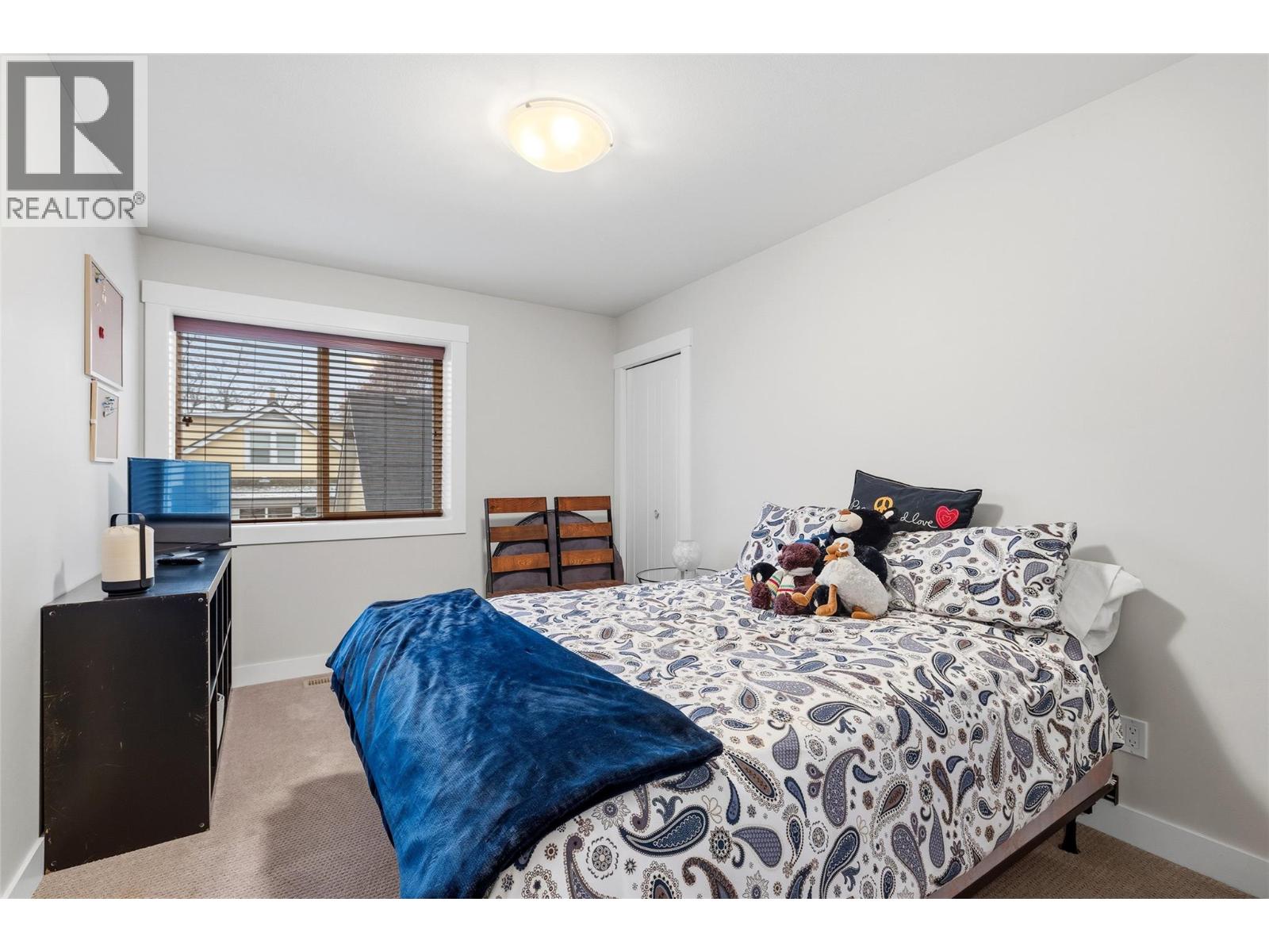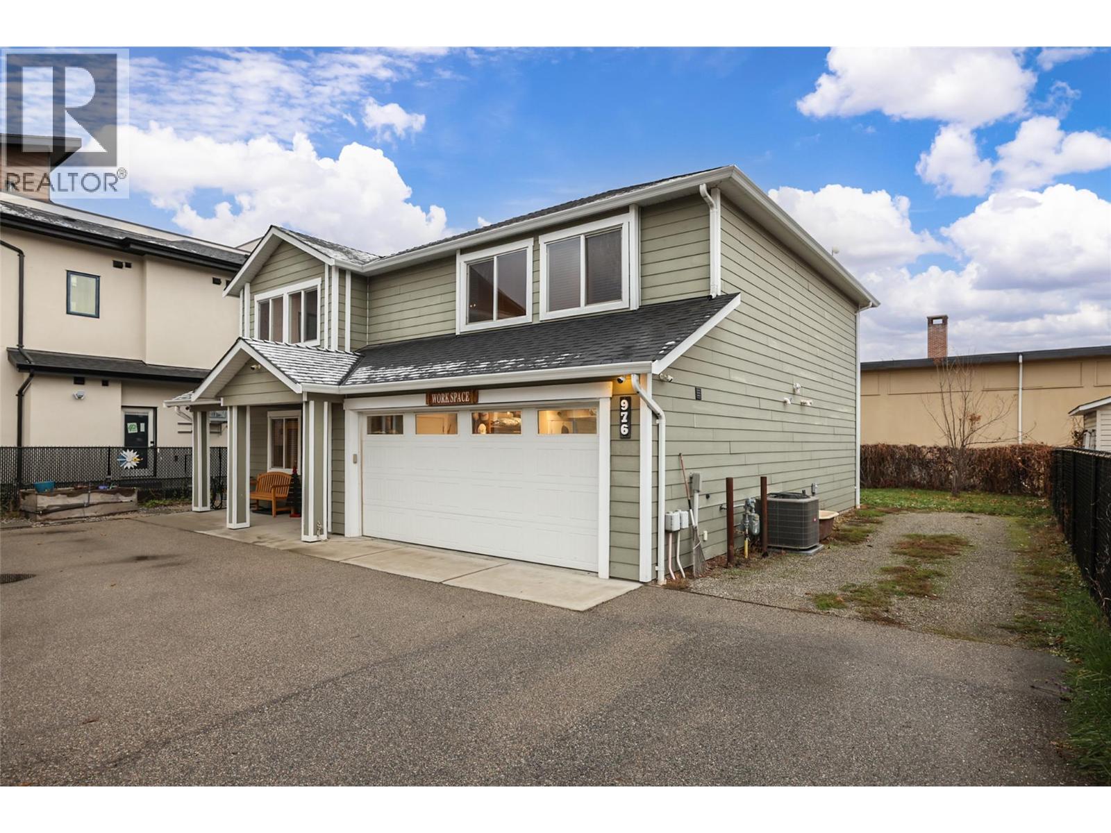 This stunning property is located in downtown Kelowna, just a short walk away from shopping, dining, green spaces, and designated walking and biking paths. The main level features a versatile bedroom/office and ample storage space. One bedroom, one bath private entry suite, with new carpets, laundry facilities, and a private patio. The upper level showcases a bright, open-concept layout that includes a spacious dining and living area, complete with a cozy fireplace perfect for chilly winter days. The upgraded kitchen features stainless steel appliances, ample cupboard space, and wraparound counters ideal for meal prep and baking. The large balcony off the dining area is perfect for entertaining. The large primary suite offers custom closet space, laundry facilities, and a four-piece ensuite bathroom. Additionally, there is another bedroom and bathroom, completing the floor. The property also includes a two-car garage, two tandem parking spots for the suite or RV or boat storage, and extra parking on the left side of the house. (id:6770)