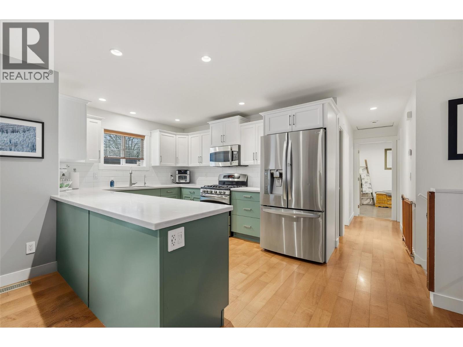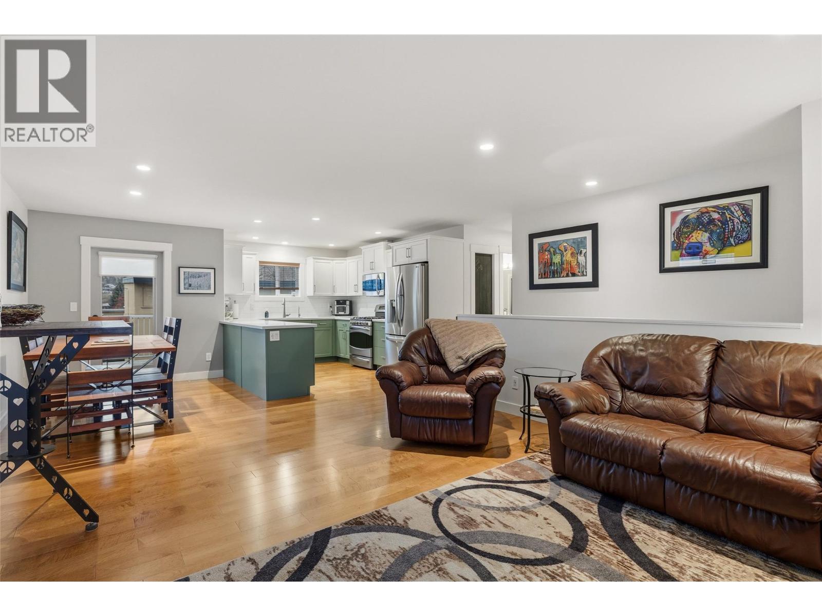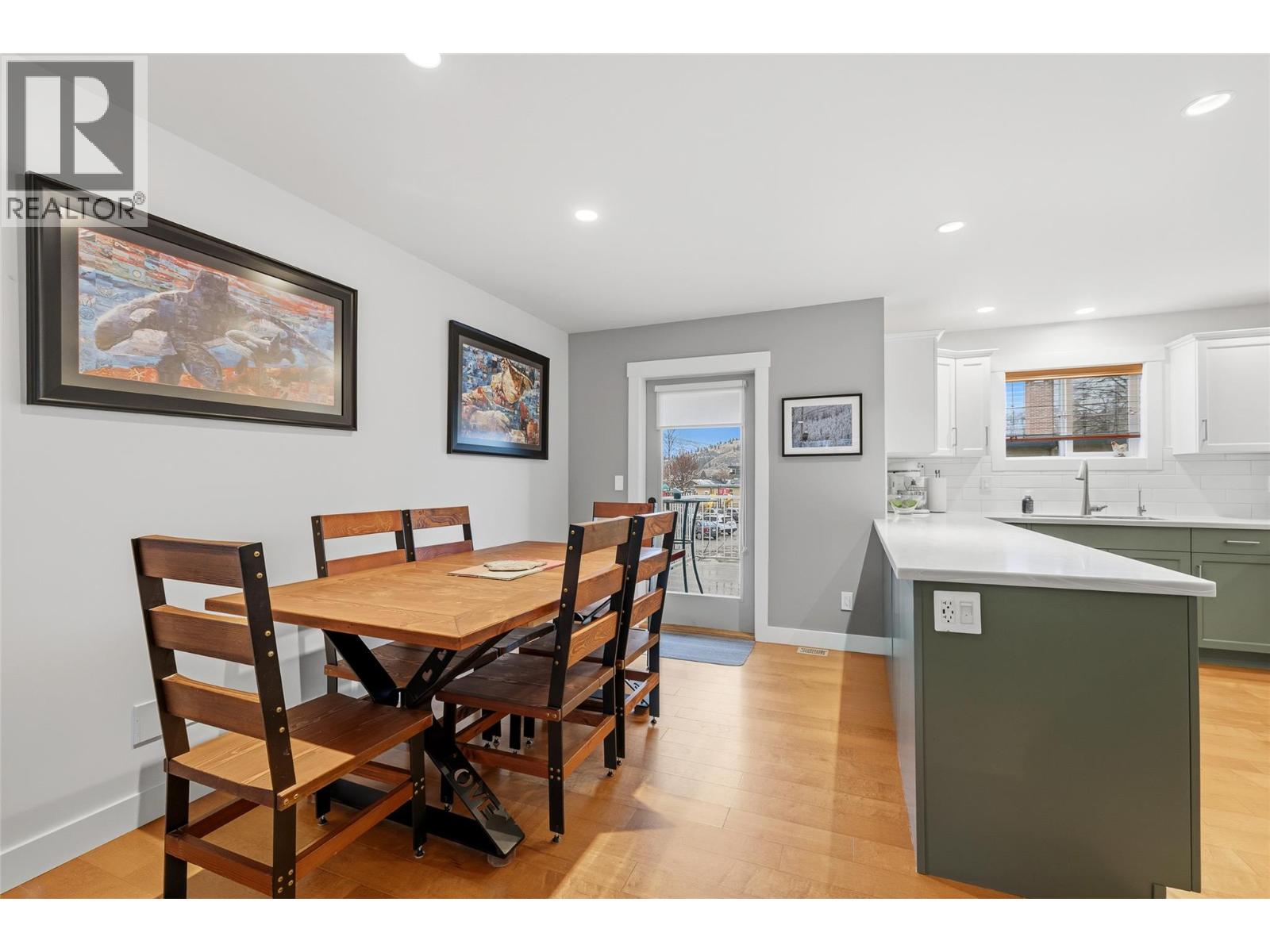 This stunning property is located in downtown Kelowna, just a short walk away from shopping, dining, green spaces, and designated walking and biking paths. The main level features a versatile bedroom/office and ample storage space. One bedroom, one bath private entry suite, with new carpets, laundry facilities, and a private patio. The upper level showcases a bright, open-concept layout that includes a spacious dining and living area, complete with a cozy fireplace perfect for chilly winter days. The upgraded kitchen features stainless steel appliances, ample cupboard space, and wraparound counters ideal for meal prep and baking. The large balcony off the dining area is perfect for entertaining. The large primary suite offers custom closet space, laundry facilities, and a four-piece ensuite bathroom. Additionally, there is another bedroom and bathroom, completing the floor. The property also includes a two-car garage, two tandem parking spots for the suite or RV or boat storage, and extra parking on the left side of the house. (id:6770)