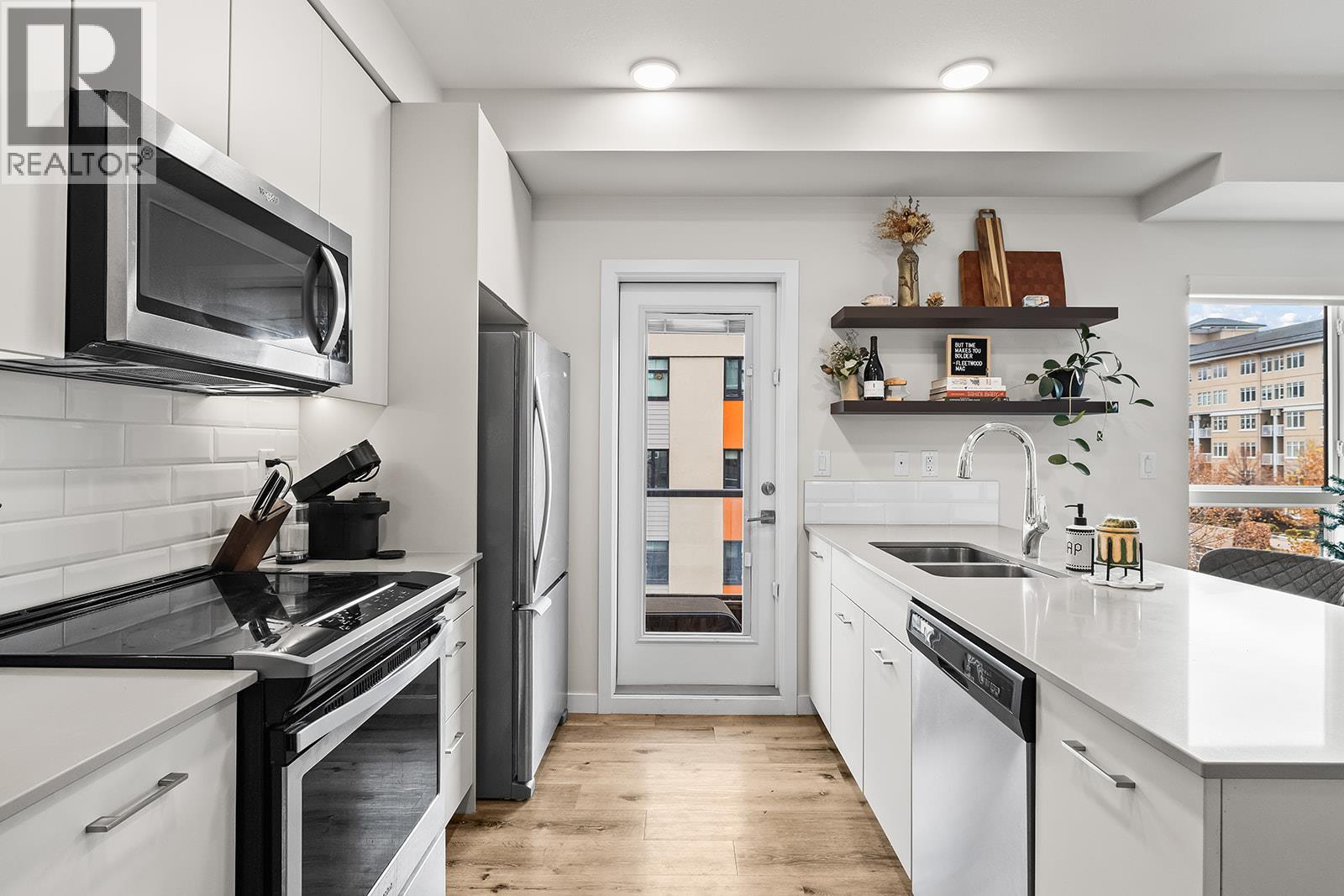 A bright and modern corner unit in the heart of Glenmore, this thoughtfully designed condo offers stylish living in one of Kelowna’s most convenient neighborhoods. This thoughtfully designed home features a sought-after split floorplan, giving each bedroom its own walk through closet and direct access to a full bathroom. Large windows on multiple sides fill the space with natural light, complementing the open concept layout and contemporary kitchen with quartz countertops, stainless steel appliances, and soft-close cabinetry. Enjoy a covered balcony for outdoor relaxation, plus building amenities such as a guest suite, rooftop terrace with BBQ area, bike storage, and a dog wash station. Just minutes to downtown, UBCO, shopping, parks, transit, and all Glenmore conveniences, this is modern living in an unbeatable location. (id:6770)
