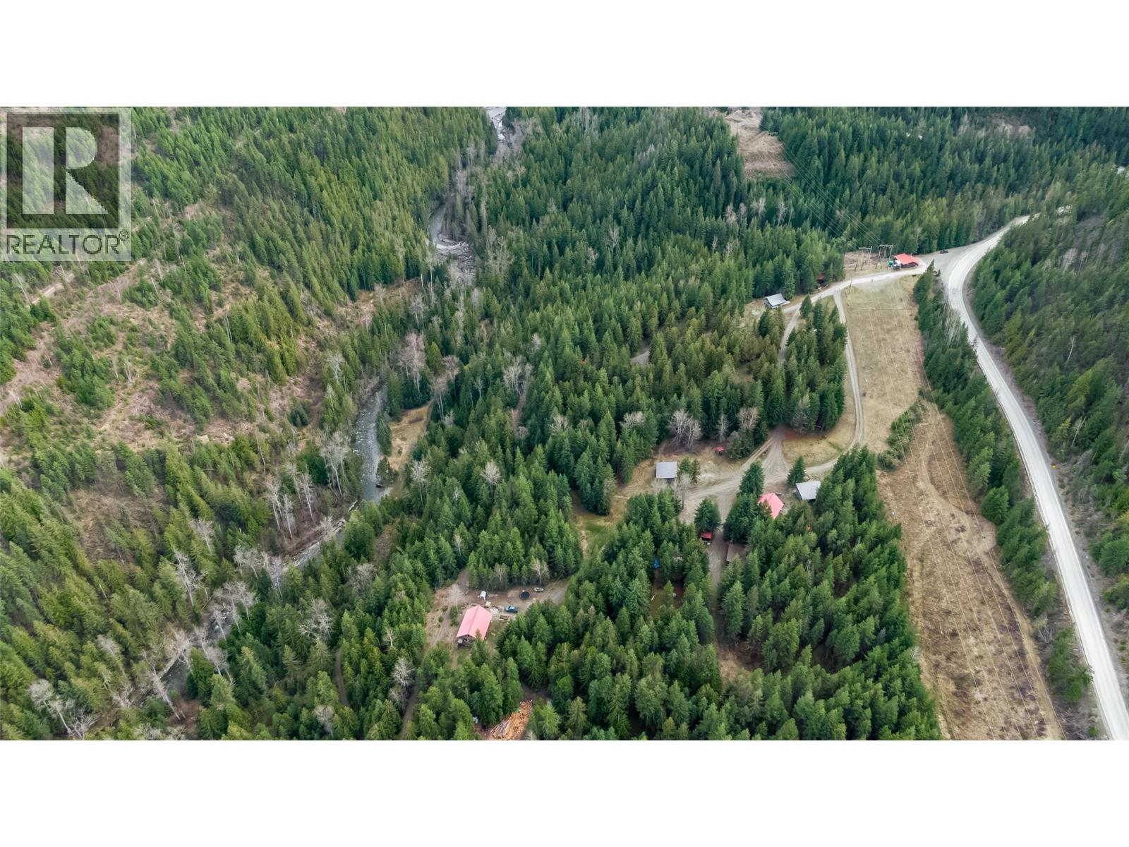 Welcome to the Goldpanner in Cherryville, BC! Nestled on 186 naturally treed acres along Heckman and Monashee Creeks, this property is a haven for those seeking adventure and history. Relive the gold rush era with 2 registered gold claims & water rights adding a touch of nostalgia to this remarkable landscape. The main home is a 1 1/2 story, 3-bedroom haven. With an upper level overlooking the open main floor, new kitchen, flooring, and appliances. Hearthstone fireplace and unwind in the hot tub after a day of exploration. Adjacent is a second 1900 sq.ft. home, fully furnished, echoing the same rustic style. Additionally, two new modern 1400 sq ft guest houses by Richbuilt Homes complement the property. For those yearning for the great outdoors, explore the 4 fully furnished/equipped cabins, 50 RV sites (20 with full 30 amp service, water, and sani dump), endless walking trails. A summer kitchen/patio, shower rooms, and laundry facilities enhance the camping experience. On-site amenities, including an office, heated shop, equipment storage, and a fully equipped restaurant. Would make an excellent spot for a Hot Springs Resort, Mountain Bike Park, Snowmobile lodge etc. Discover historical gold panning sites along the creek, test your skills, or grab a fishing rod and enjoy a leisurely afternoon by the water. This operation is perfect for a family seeking a thriving venture in the heart of nature's beauty. Embrace the spirit of adventure at the Goldpanner! (id:6770)