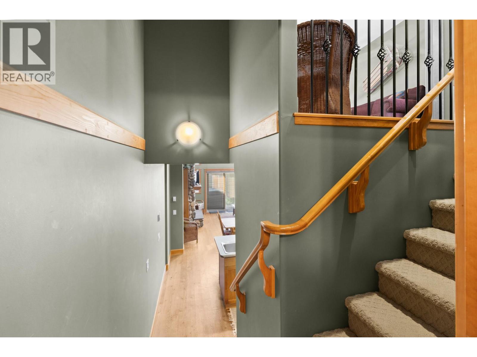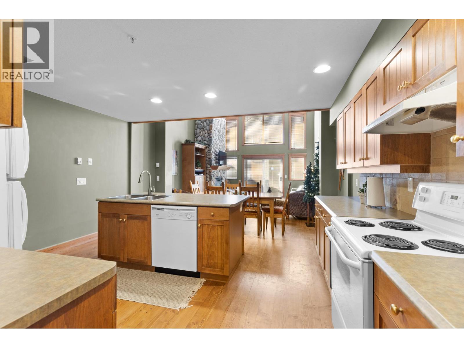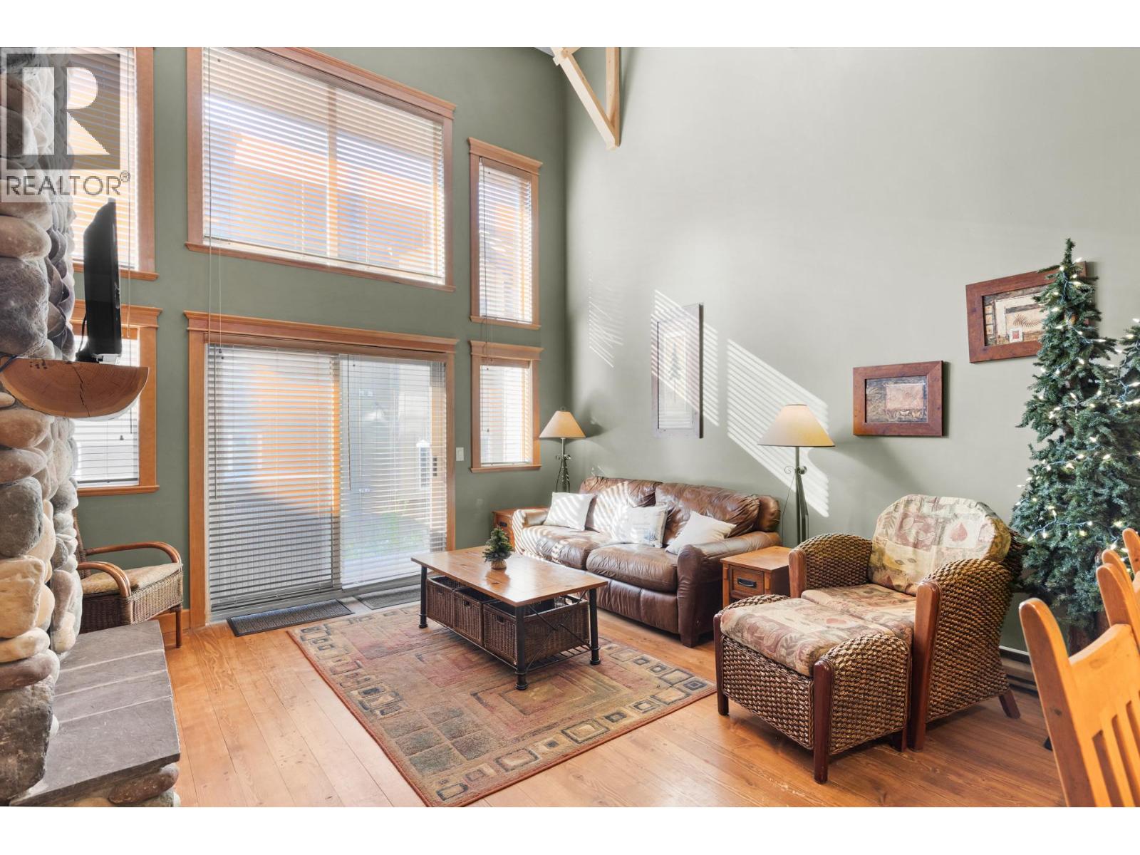 Welcome to Tree Tops, one of Big White’s most sought-after developments offering true ski-in/ski-out convenience via the Mogul Cat Track. This 2 Bed/3 Bath townhome combines mountain charm with modern comfort, making it the perfect getaway for family, friends, or rental guests. Step inside to an airy, open-concept layout highlighted by soaring ceilings & abundance of natural light. The main living area features a stunning floor-to-ceiling river-rock fireplace surrounded by custom built-ins—the ideal centerpiece for cozy evenings after a day on the slopes. Just off the living room, you’ll find your private hot tub, a perfect spot to unwind under the stars. The large kitchen is designed for entertaining with shaker cabinetry, a sit-up island, and plenty of prep space. A versatile loft overlooks the living area, providing a fun hangout for kids and includes a sofa bed for extra sleeping accommodations. Upstairs, both bedrooms offer private ensuites, while one also includes a flex/den space that can easily be used as an additional sleeping area. With a variety of flexible layouts, this home is well-suited to host multiple families or groups. The timeless design blends rich tones, wood accents, & a cozy mountain feel throughout. Additional conveniences include a covered parking stall directly across from the unit & two storage lockers-one for owners and one for guests. This turnkey property is equally perfect as your personal mountain retreat or a high-demand rental investment! (id:6770)
