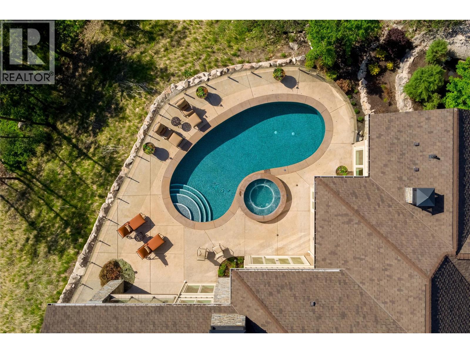Your lifestyle needs that perfect home in a perfect setting! The Predator Ridge Community offers two world class championship golf courses, state-of-the-art fitness centre, tennis & pickleball courts, a vibrant village center and an endless trail system! This exceptional estate home sits at the end of a private cul-de-sac, offering expansive mountain and golf course views with breathtaking sunrises! Built by Heartwood Homes, it showcases exquisite craftsmanship with Calacatta marble, split-faced travertine, fir timber beams, hickory engineered hardwood, and intricate door and window details. The chef-inspired kitchen, featuring Miele, Wolf, and Sub-Zero appliances, flows into a sunlit great room with vaulted ceilings and a grand piano niche. The serene primary suite includes a see-through fireplace, marble slab shower with stone walls, and a custom walnut walk-in closet. The in-floor heated lower walk-out level is designed for entertainment, featuring a state-of-the-art theatre, games area, wet bar, and wine room. Outdoors, a Fujiwa porcelain-tiled saltwater pool, 10-foot hot tub, and multiple sitting areas with two exterior kitchens embrace the Okanagan lifestyle, while a cascading waterfall adds to the tranquility. A heated three-car garage completes this remarkable property. (id:6770)