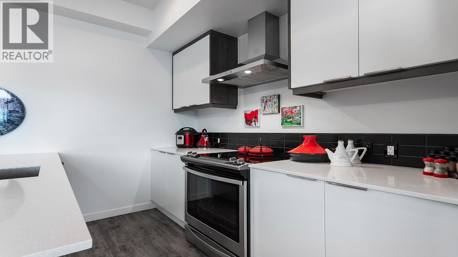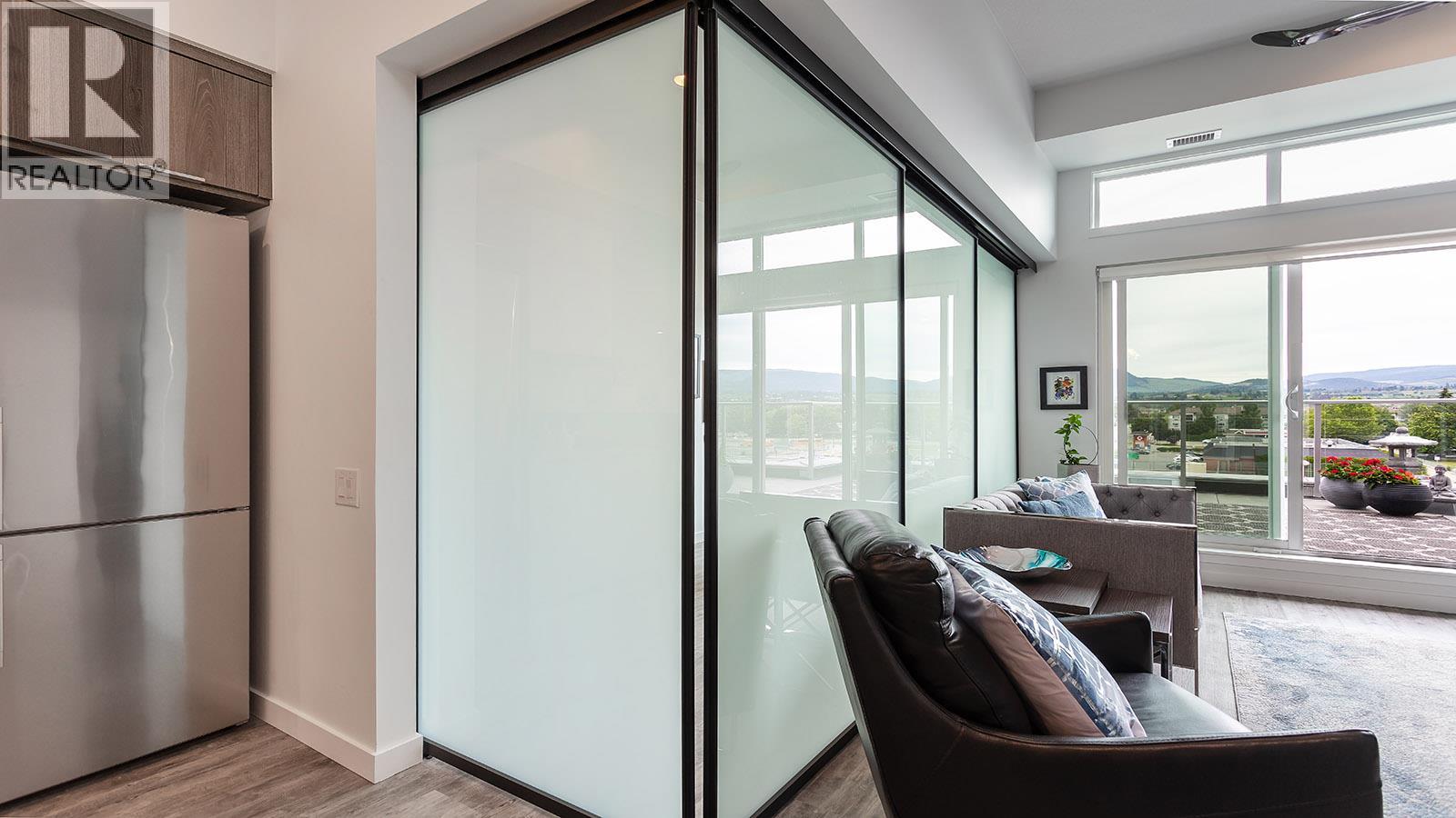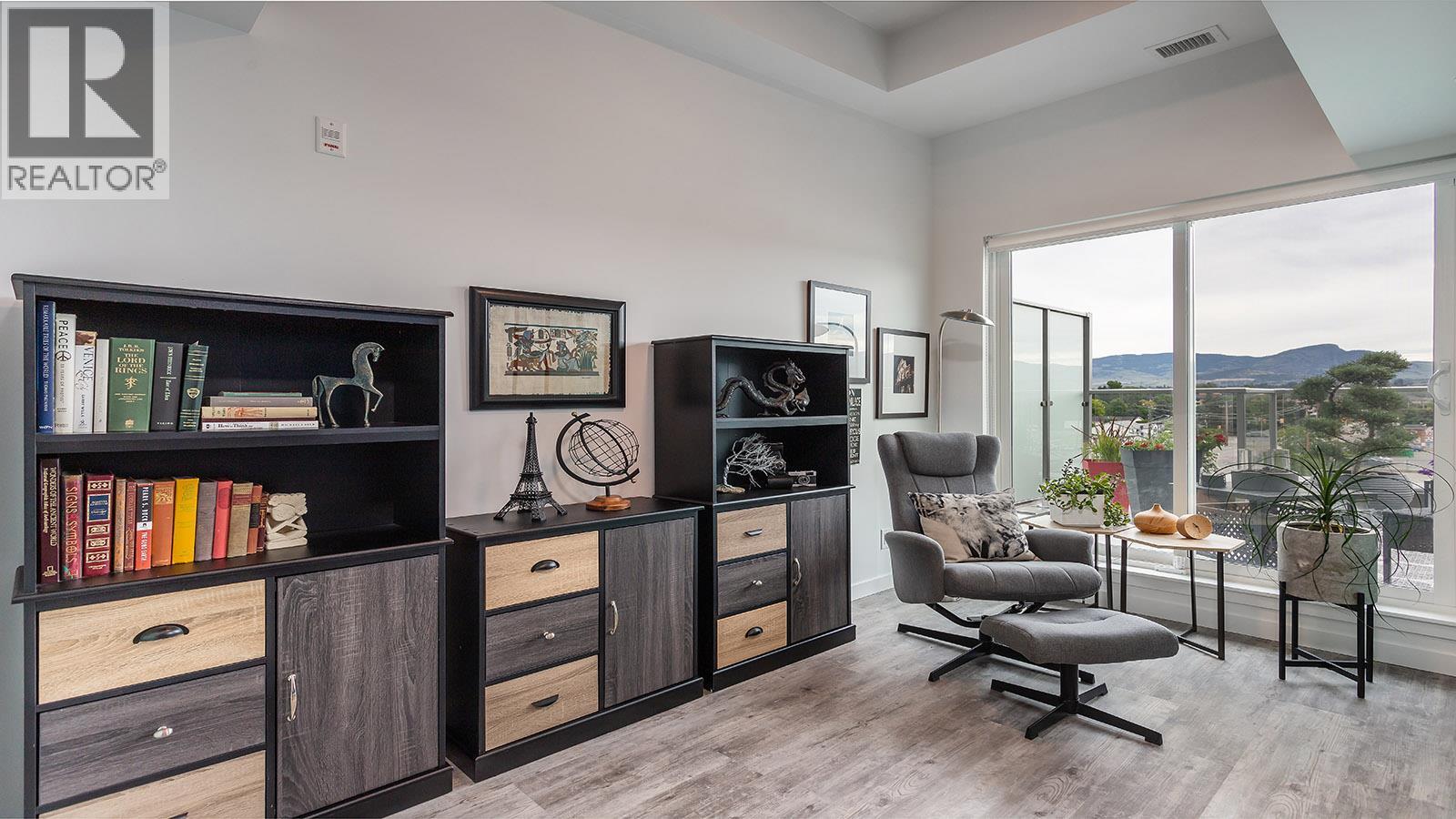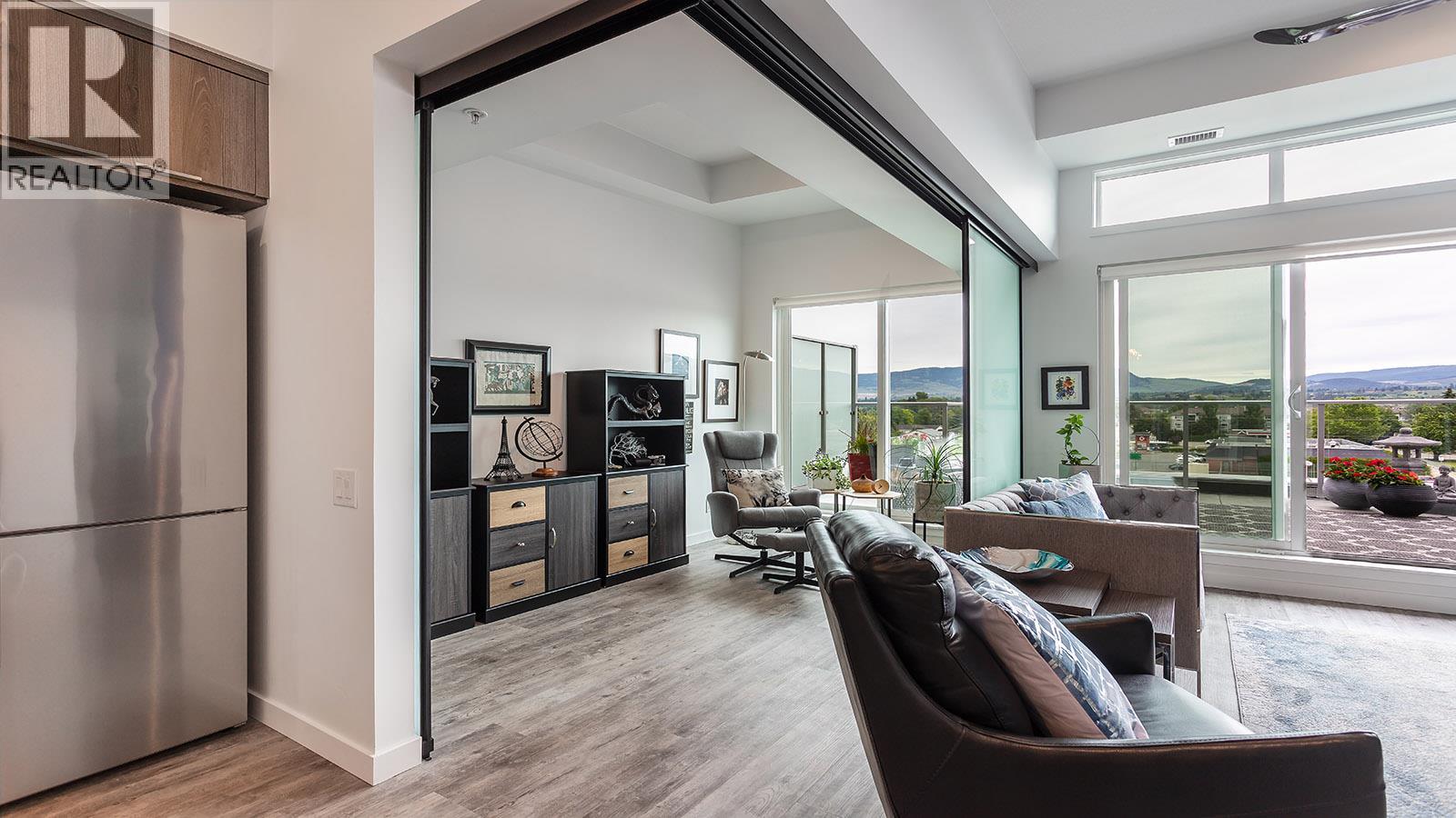 Welcome to SOLE on KLO — a bright, contemporary retreat perfectly positioned in the heart of the Lower Mission. This 1 bedroom plus den, 1 bathroom residence offers effortless modern living with a rare nearly 300 sq. ft. outdoor terrace capturing expansive east-facing mountain views and gentle morning light. Inside, an open-concept layout is enhanced by sleek finishes, including quartz countertops, stainless steel appliances, modern cabinetry, and durable vinyl plank flooring. The spacious den provides valuable flexibility, easily functioning as a second sleeping area with room for a queen Murphy bed, ideal for guests or hybrid living needs. The bedroom is paired with a well-appointed bath featuring clean, modern lines and a glass-enclosed shower. Large windows and sliding doors draw natural light throughout the home while seamlessly connecting the interior living space to the oversized terrace, perfect for outdoor dining, relaxing, and taking in the panoramic landscape. Additional features include in-suite laundry and a generously sized parking stall. Located directly across from Okanagan College and moments from the boutiques, cafes, and waterfront pathways of Pandosy Village, this residence offers exceptional walkability and a vibrant urban lifestyle. (id:6770)
