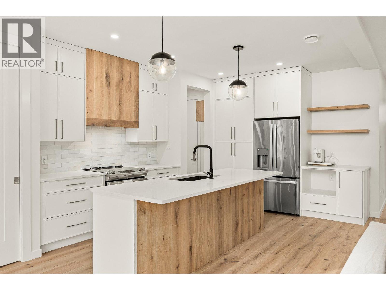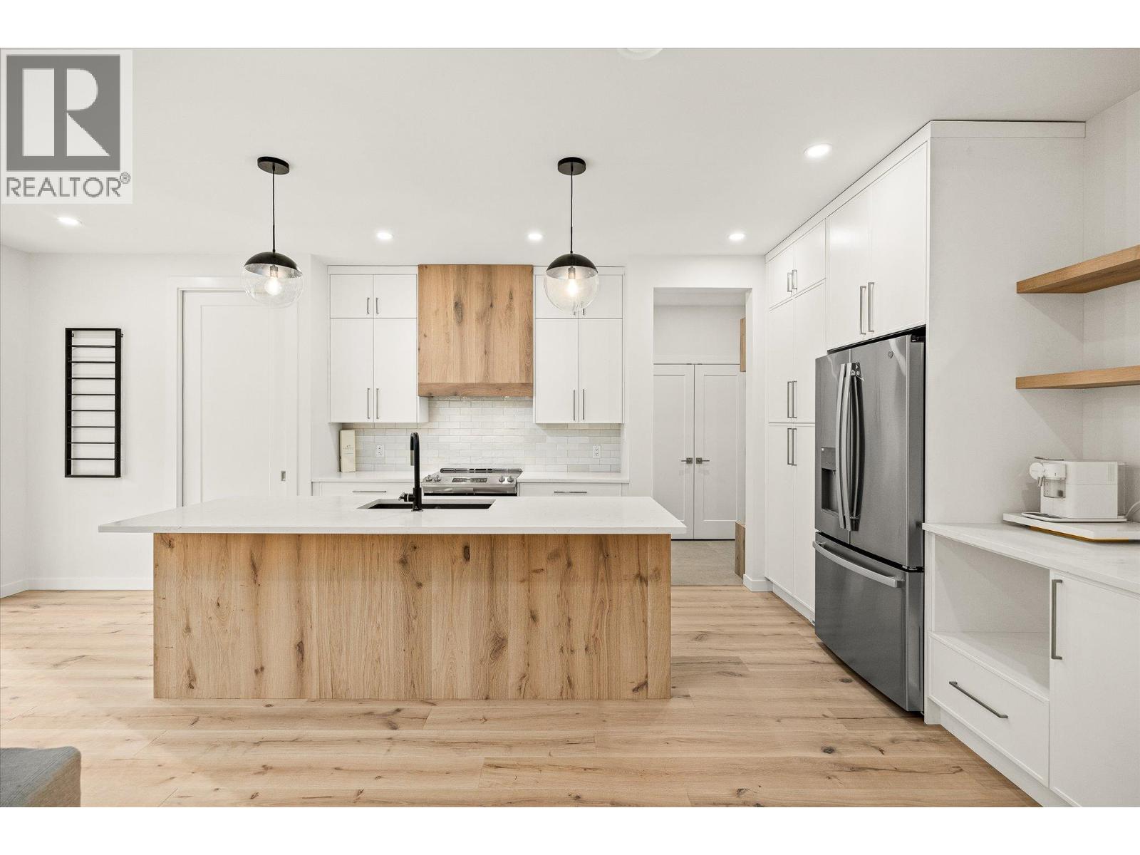 Welcome to this beautifully crafted brand-new home in The Orchards, one of Kelowna’s most beloved new family communities. The backyard extends beyond the fence line into a protected natural area, creating a quiet, private backdrop where kids can play & evenings feel calm & connected to nature. Just steps from DeHart Park & close to elementary, middle & high schools, as well as the Shops at The Ponds, this is a location designed for an easy, family-focused lifestyle. Inside, the main level is bright & welcoming with an open-concept living, dining & kitchen space made for gathering. A classic palette of warm wood tones, crisp white cabinetry, black accents & stainless-steel appliances feels timeless & inviting. Hardwood flooring flows throughout, complemented by striking tile backsplashes in the kitchen & in every bathroom. A practical mudroom with storage off the double garage & a spacious main-floor laundry—ideal for extra pantry space—add thoughtful everyday functionality. Upstairs, you’ll find three bedrooms plus a loft-style family area, perfect for movie nights or homework time. The primary suite is a true retreat, featuring dual vanities, a luxury walk-in shower & his-and-hers closets. The unfinished lower level invites your vision—create a legal one-bedroom suite, guest space, gym, office, or family room. With a separate side entrance and plumbing & wiring already in place, the builder can customize the space to suit your lifestyle for an additional cost. Come & look! (id:6770)