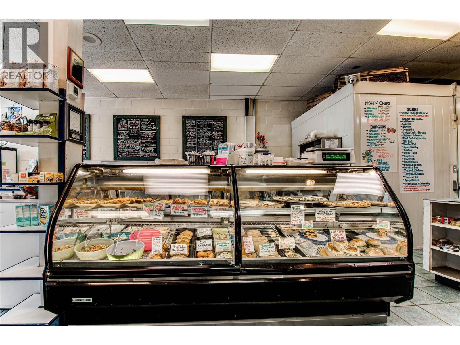 A Fine Kettle 0' Fish in Vernon is a fresh fish and seafood market plus take-out deli. Well respected and established business in Vernon, operating since 1983, and in their current location since 2000. With a superior selection of fresh and frozen fish/seafood from around the world, and a full-service kitchen, a Fine Kettle O’ Fish offers small to large single portion meals, meals for groups, lunch and dinner take-out, custom catering and fresh-made sushi, all utilizing quality, fresh ingredients. Profitable business and a strong rate of return. Recently replaced and added new equipment, Vernon's premium fresh fish market, Sellers prefer an asset sale. (id:6770)
