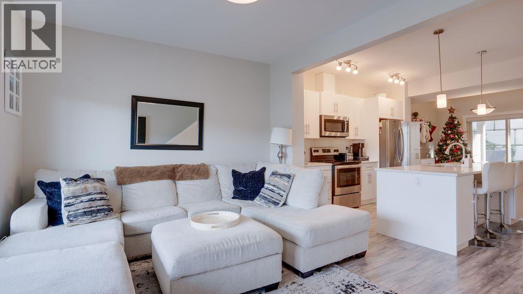 (OFFER ACCEPTED, SR JAN 30) Immaculate 2 bed 2.5 bath END UNIT in The Terraces. This home features a bright open floor plan with gorgeous California Shutters.... The kitchen boasts tall ceilings, extra cabinets, stainless steel appliances and a large island with quartz countertops that easily fits four stools . The dining area opens up to your private backyard where you will find a large covered deck with plenty of room for entertaining, a ceiling fan to keep you cool and a lawn area that is great for kids and pets. With the open concept floor plan, the kitchen flows into the living room with 9' ceilings and a large picture window that fills the home with natural light. Easy access from the living room to the front deck where you can enjoy coffee with a view. Upstairs features two master suites, each with a full ensuite, custom walk-in closets. Doing laundry will be a pleasure in the second floor laundry room with loads of storage, a folding counter and even room for an ironing board. Two car tandem garage is 32' long giving you space to park your car as well as store your paddle boards, E-bikes, golf clubs and everything you need to enjoy the Okanagan Lifestyle. Conveniently located near transit, and a short drive to restaurants, schools, coffee shops, shopping , golf, the beach and more. Call today to book a showing! (Pets aloud with minimal restrictions). (id:6770)