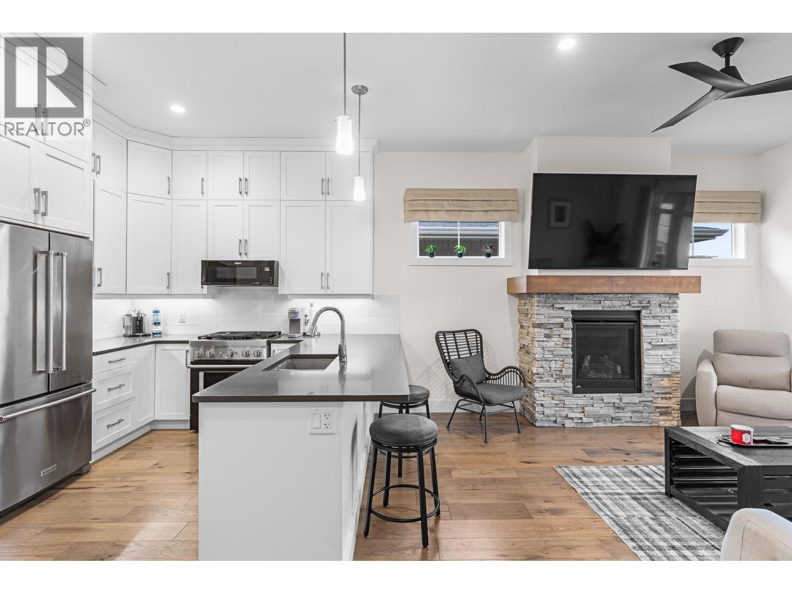 YOUR NEW ADDRESS! ""SOUGHT-AFTER"" SOLSTICE COMMUNITY AT TOWER RANCH! Stellar reputation, located on a quiet no thru road, with UNSURPASSED VIEWS! Light and bright quartz kitchen with high end appliances including a commercial Wi-Fi gas range + quality cabinets that elevate to the ceiling for added storage. VIEW living room with feature gas fireplace. Spacious dining room that will accommodate larger furniture for family gatherings. King size primary with deluxe ensuite and convenient laundry complete the main floor. The lower level is equally appealing with an oversized recreation/family room, ANOTHER PRIMARY with a 3-piece ensuite + the 3rd bedroom and another full bath. Tons of storage on the Lower level. BONUS POINTS FOR new Syn Turf installed in back, 12K worth of window treatments, newly professionally installed ceiling fans in living room and deck, sun blinds on deck + dedicated breaker box for 2022 Jacuzzi hot tub. Owners have use of the fitness center, media room & club house. Walking, hiking & biking trails to Tower Ranch Mountain + a few minutes to all major shopping, restaurants, pubs + other amenities. A STYLE OF HOME OWNERSHIP WITH A CLEAR LOGICAL ADVANTAGE When you live here, you own your home without buying the land. You own your home from the ground up and pay a moderate fee for an ironclad 99-year renewable lease for the land in a professionally managed community with beautifully maintained grounds and shared amenities. By not purchasing the land, you pay less and keep cash flow available to make the most of your active lifestyle. Lease is 832.23, Community fee is 20.00, strata fee is 94.82. (id:6770)