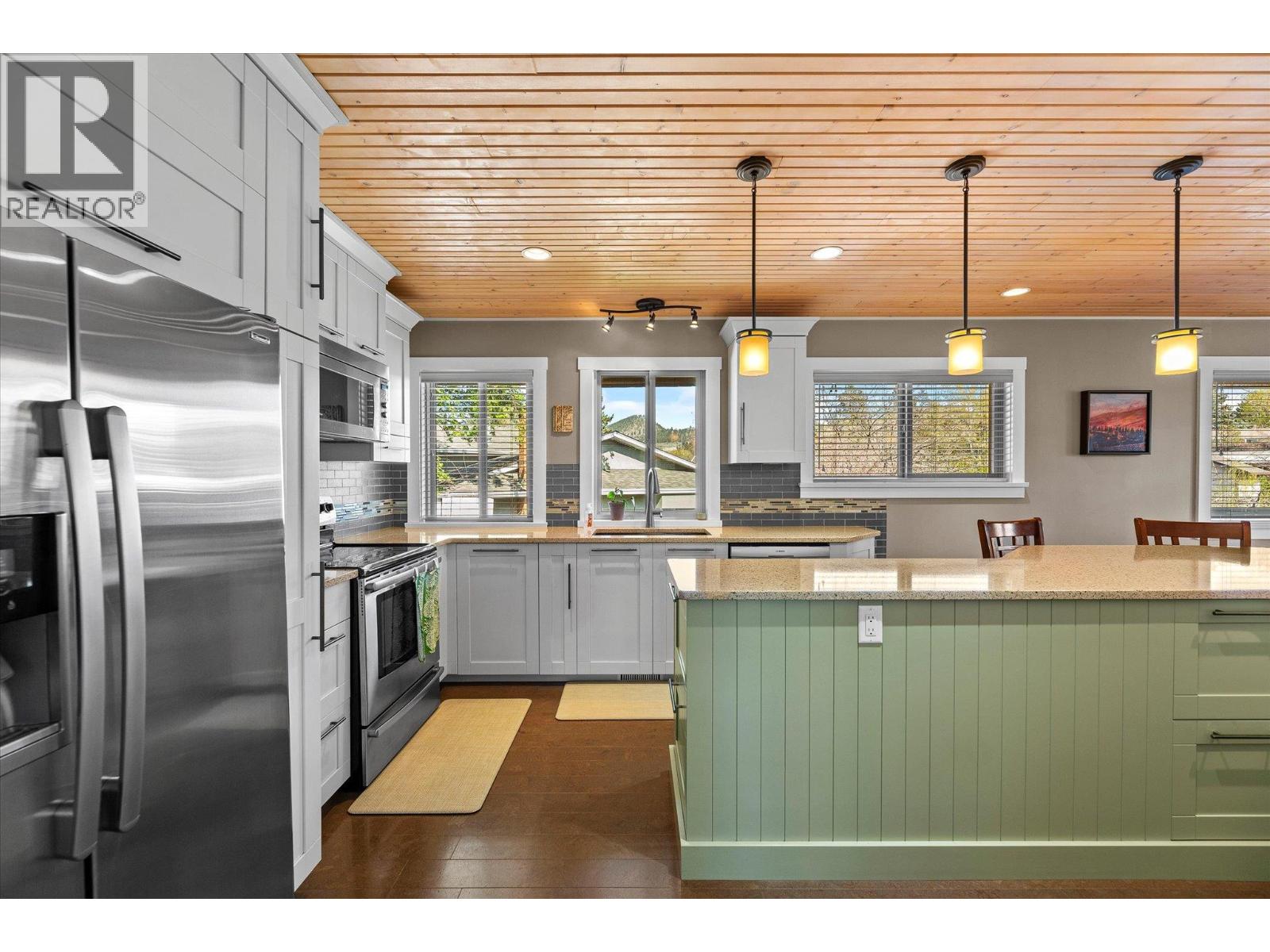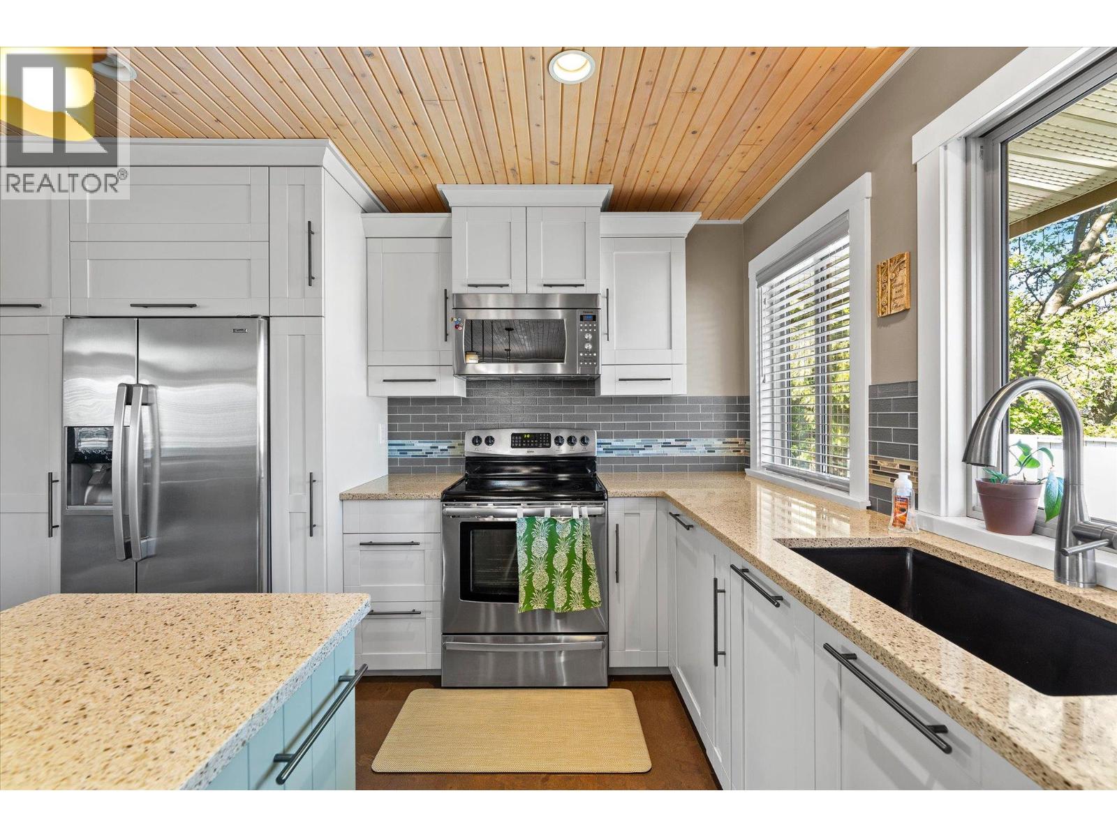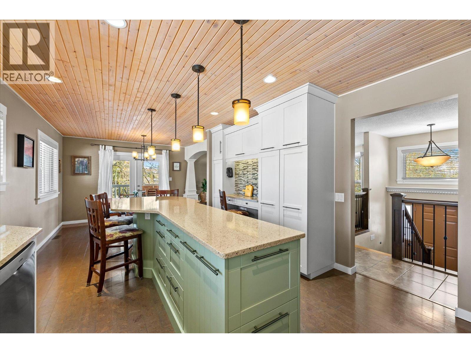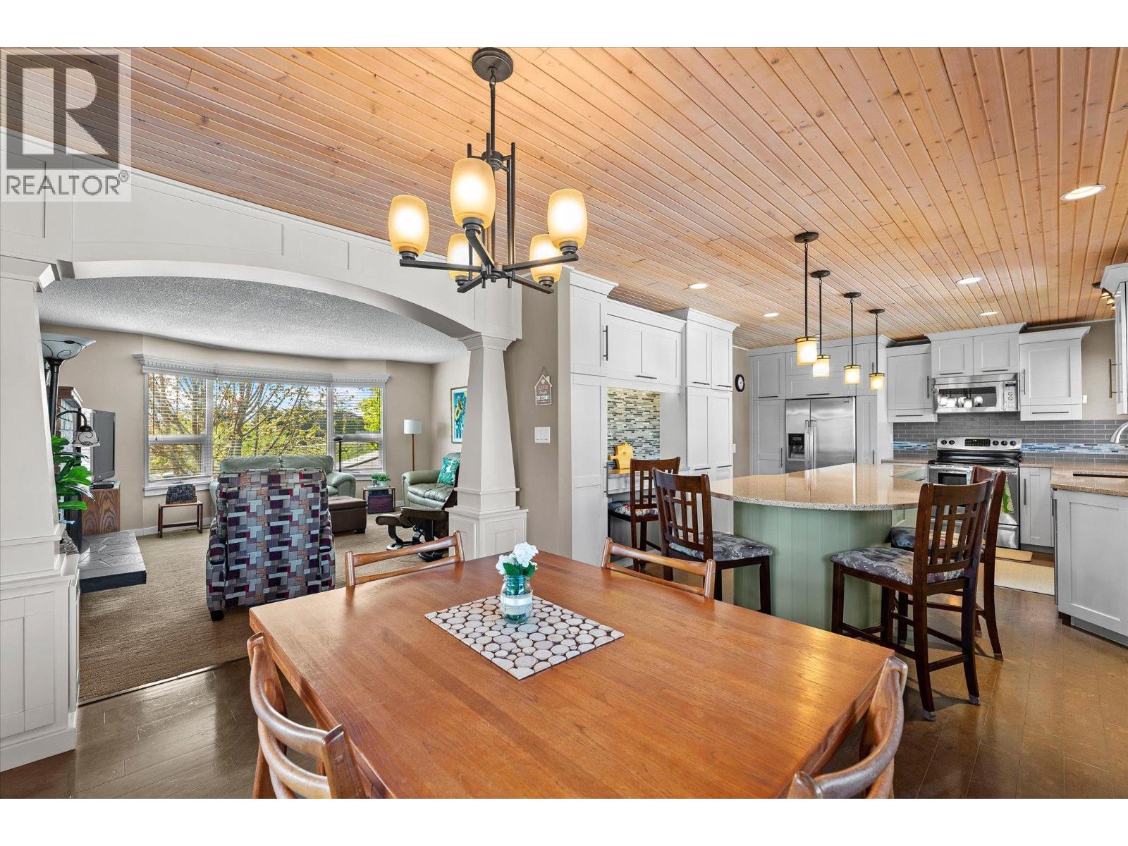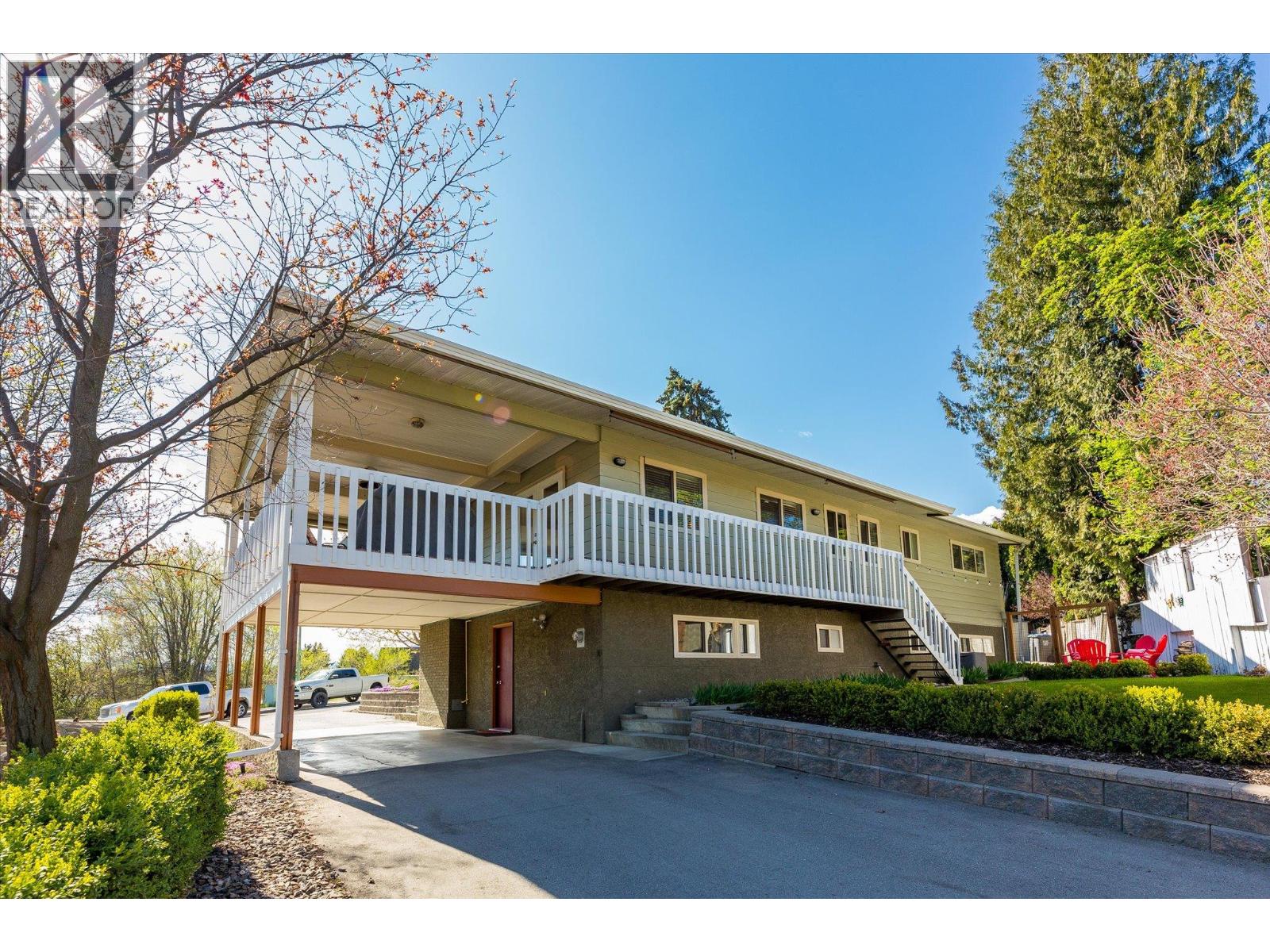 Glenmore Family home loaded with value. Located with great access to schools, parks, Rail Trail, downtown access to the water front boardwalk and more. This 5 bedroom, 3 bath home includes a private 2 bedroom in-law suite/ summer kitchen complete with full kitchen, 3 piece bath and shared laundry. The main level has 3 spacious bedrooms, a 4 piece main bath and 3 piece en-suite with tile and glass shower. Entertain friends and family around the quartz counter top island in the remodeled kitchen with access to the Dining area, Living room with Gas Fireplace and double French doors to the covered patio. The lower level has a generous sized family room with wood burning fireplace, entry to the 2 bed suite, laundry room, and storage space. The low maintenance yard is completed with underground irrigation to flower and garden beds and your own private putting green to practice your ""short game"". There is also a great outdoor patio area which makes a perfect oasis space to read a book or entertain with friends. Lots of parking on the half moon driveway with a covered carport. This home has been maintained and cared for over the years. Glenmore listing at its best. (id:6770)