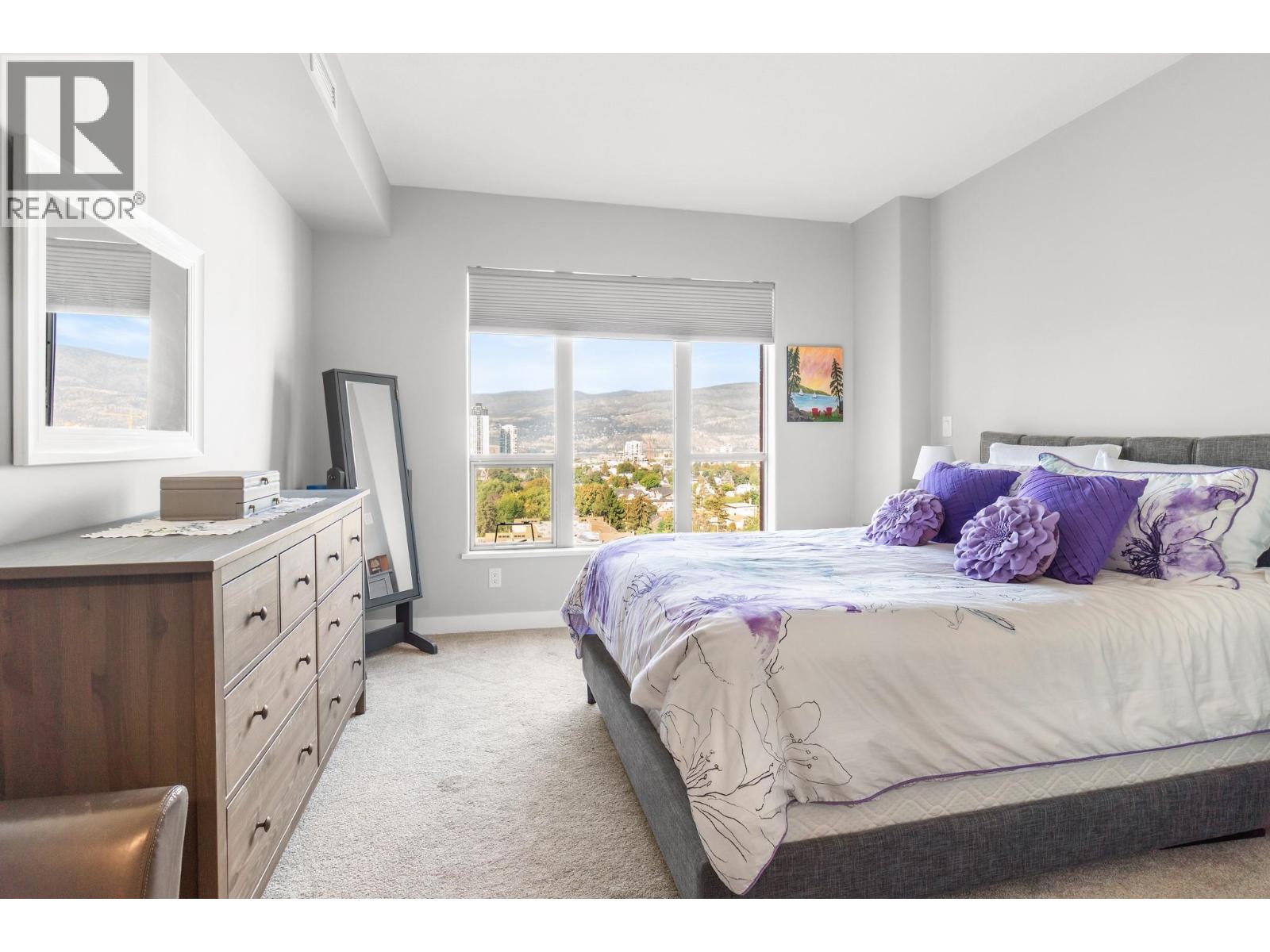 Okanagan Lake views from every window and urban convenience meet in this 2 bed + den, 2 bath condo at Centuria Urban Village. With 1,276 sq ft of interior space, this 12th-floor home offers excellent separation between bedrooms, a flex room that could be an office, bar, or fitness space and generous open-concept living. Step onto your private balcony to enjoy views of Okanagan Lake and the downtown skyline. The building has low strata fees for the size and offers excellent amenities, including a fitness centre, outdoor pool, hot tub, sauna, and car wash. 2 underground parking stalls and a private storage locker are included. The storage locker is right in front of your stall for easy loading and unloading. Centuria is a well-managed strata with low monthly fees, all just steps from downtown Kelowna, groceries, restaurants, parks, and more. (id:6770)