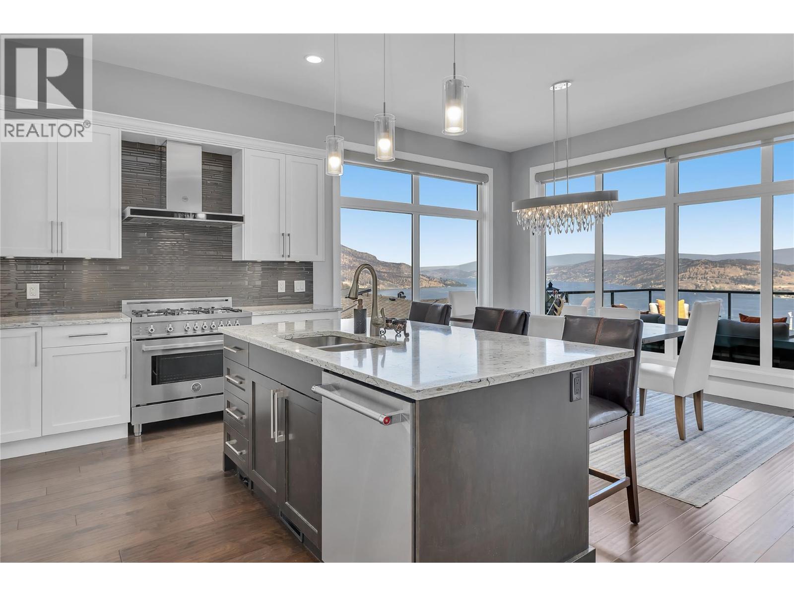 Nestled in a coveted area in West Kelowna renowned for stunning lake and mountain views, this exquisite home offers a blend of luxury and comfort. The main floor includes a serene primary bedroom complete with a luxurious ensuite bathroom with custom steam shower and generous sized walk-in closet. Stunning views from your kitchen and dining area can be enjoyed day and night! Large island and plenty of cabinetry make storage and meal creations a treat. The lower level is a haven for entertaining your family and friends featuring a state of the art theatre room, a spacious recreation area and 3 bedrooms with one boasting its own ensuite bathroom. With a total of 5 beautifully designed bedrooms and an array of high-end amenities, this home promises an unparalleled living experience inside and out! With your personal inground pool with a new liner and lighting as well as a separate bathroom and a hot tub, you can enjoy every season the Okanagan has to offer. (id:6770)
