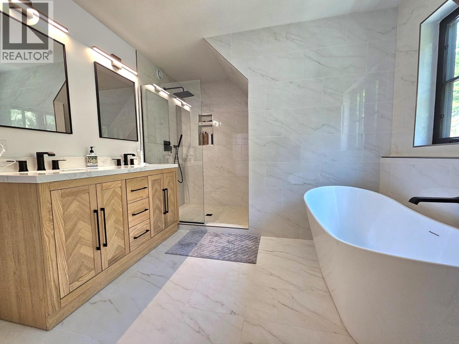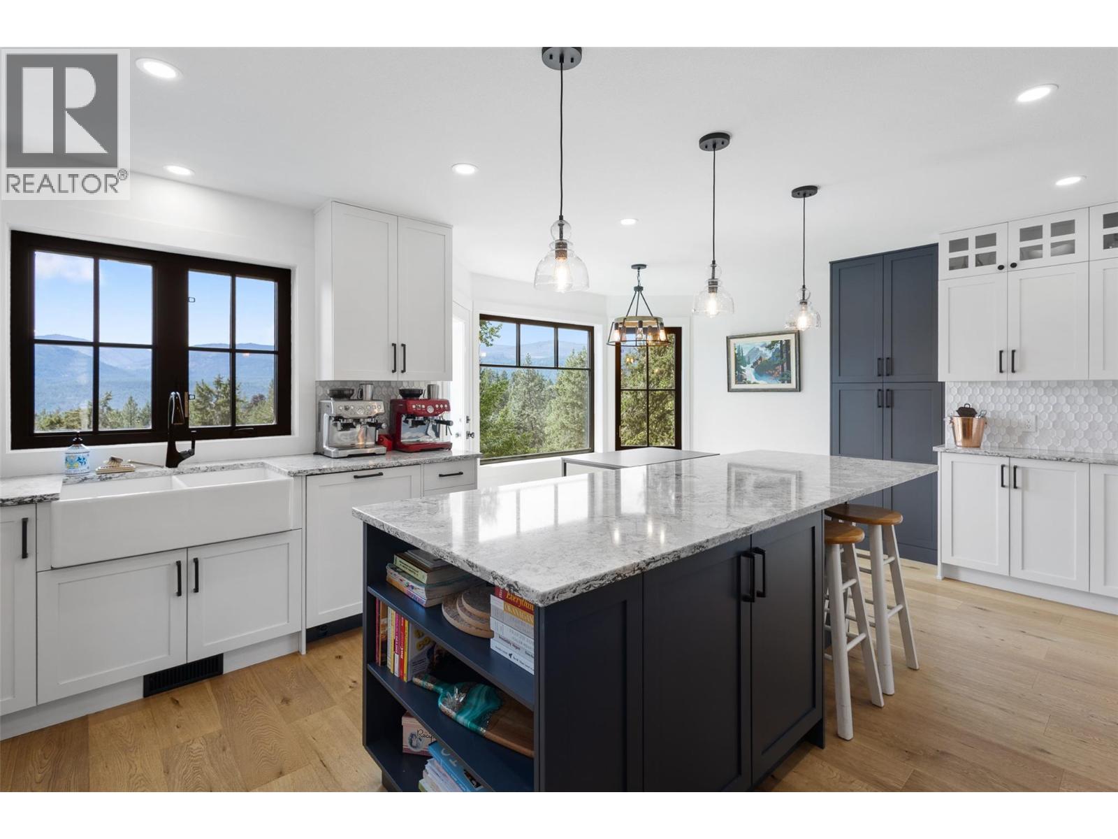 Lake Views, Privacy, and Beach Access with Boat Launch - welcome to your Okanagan retreat! This 0.39 acre corner lot is perched above the trees with a stunning west facing view overlooking Okanagan Lake and 360 degrees of surrounding natural landscape, offering a unique private setting that provides the perfect quiet get away for taking in lake views and sunsets. The turn key, newly fully renovated 5 bedroom home comes with high end finishings and upgrades: all new stainless steel appliances, new washer and dryer, new custom built gourmet kitchen complete with new cabinets, massive island, granite counters, new tile backsplash, new hardwood flooring, new doors, all new windows and light fixtures throughout the home, open concept living space, gorgeous new master bathroom, new tile fireplace, freshly painted walls, doors and trim throughout, and so much more! Enjoy spa amenities with the hot yoga room, sauna, and outdoor hot tub! Lots of room for all the toys - boat, RV, and ample parking. RV hook up available complete with 30 amps and water. New roof in 2019. Mature landscaping with low maintenance yard. Access to the Canadian Lakeview Estates private beach (500 feet of lakefront) is available, with boat launch, 2 wharfs, picnic area, and restrooms ($100 per year amenity fee). Welcome home to your perfect Okanagan retreat where you will feel on vacation all year round. (id:6770)