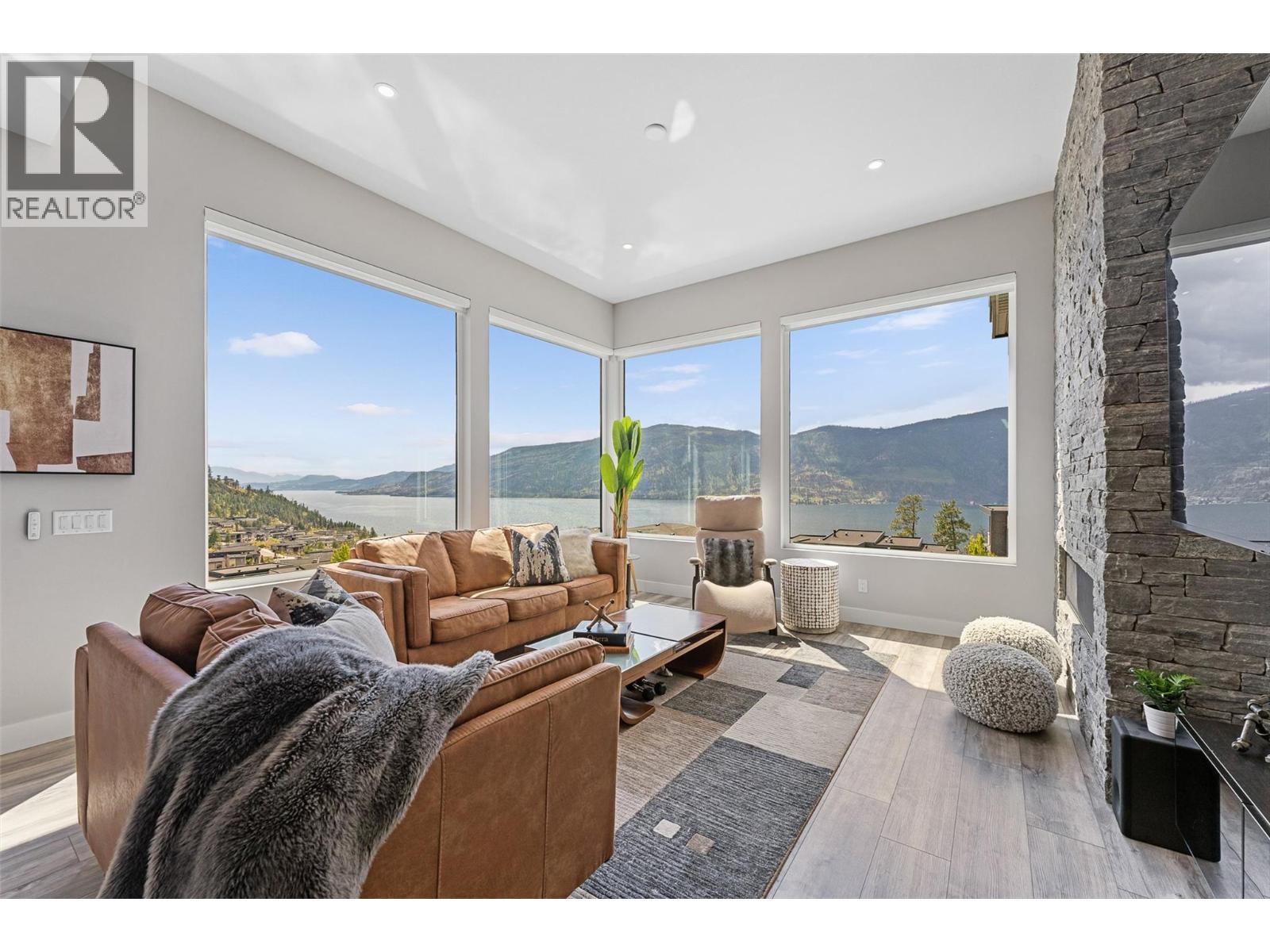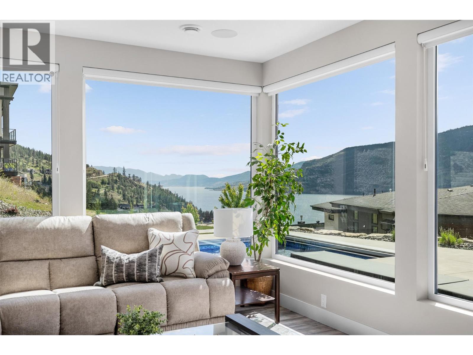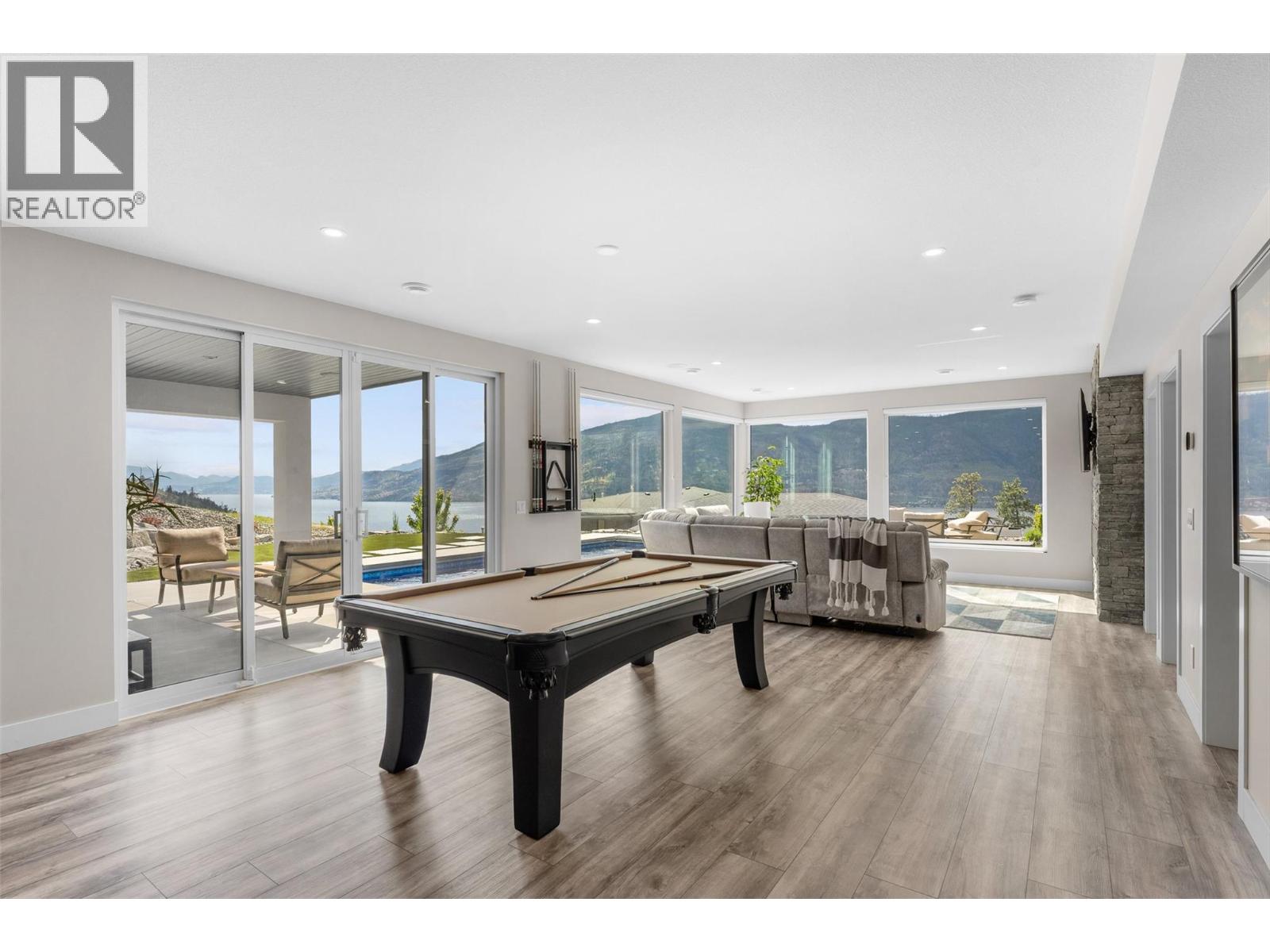 Gorgeous modern home in McKinley Beach where elevated Okanagan living meets thoughtful design & panoramic lake views. Situated on a rare 0.374-acre lot, this estate boasts a spacious family layout with resort-style amenities, expansive indoor-outdoor living, & a self-contained 2 bed/1 bath legal suite. The main level impresses with soaring ceilings, a chef’s kitchen featuring JennAir appliances, a massive island, & a seamless connection to the covered deck—perfect for al fresco dining. The luxurious primary suite enjoys sweeping lake &valley views, a spa-inspired ensuite, & a walk-through dressing room. A bright office, large pantry, powder room, & laundry complete this level. Downstairs, entertain in style with a rec room, wet bar with pass-through windows, wine cellar, & direct walkout access to the backyard oasis, featuring a heated saltwater pool, hot tub, & built-in firepit. Three additional beds & two baths offer flexibility. Upstairs, a versatile loft space is ideal for a home office or gym. The legal suite offers privacy & comfort with a separate deck, laundry, & private entrance. A highlight of this home is the 1300+ sq ft garage with cabinets, separate heat, & hard wired for network. Located minutes from the marina, airport, UBCO, wineries, & golf. Residents enjoy exclusive access to McKinley’s amenity centre with gym, pool, hot tub, pickleball, & more. This is a rare opportunity to own one of the most versatile & beautifully appointed homes in McKinley Beach. (id:6770)
