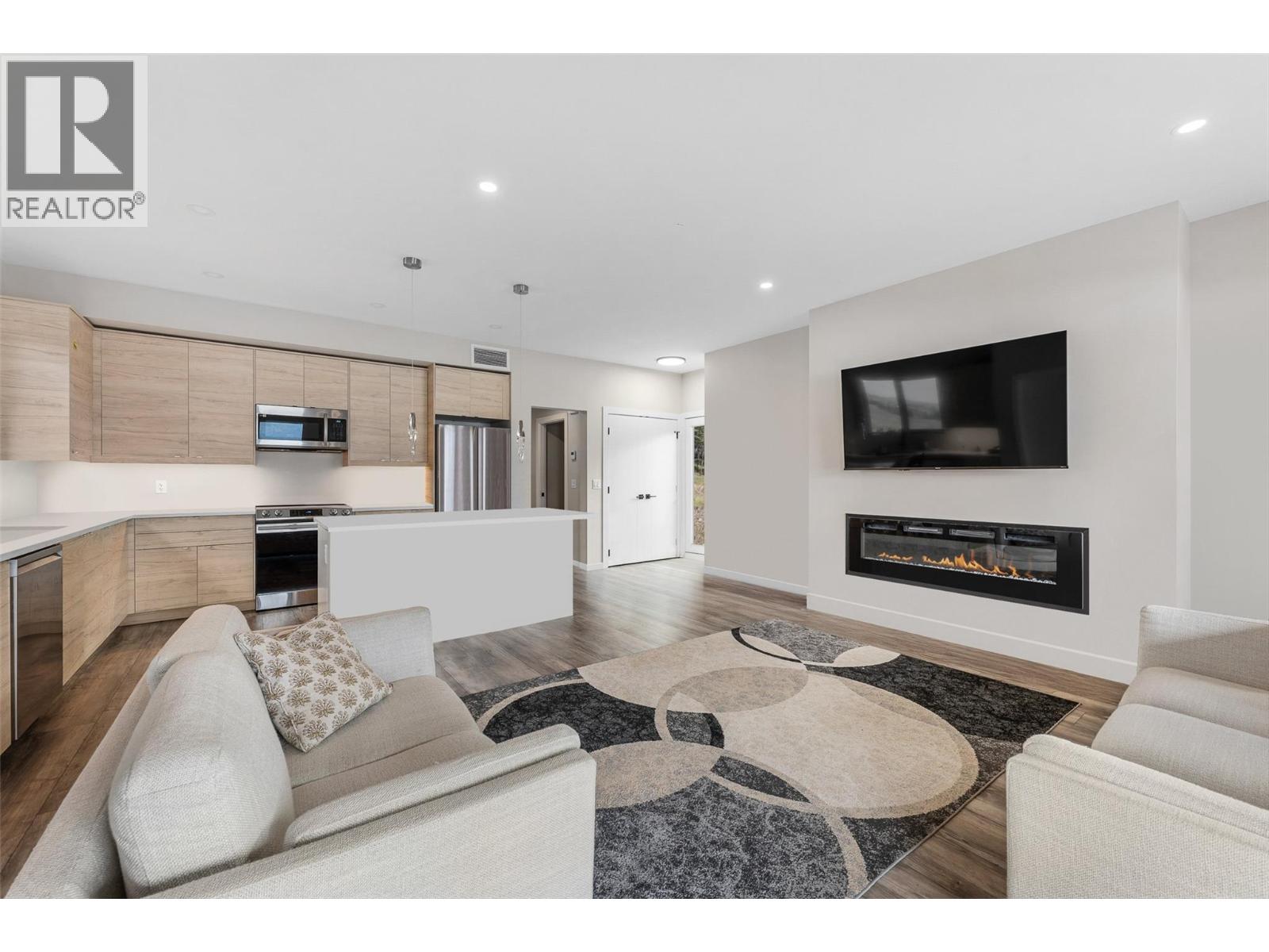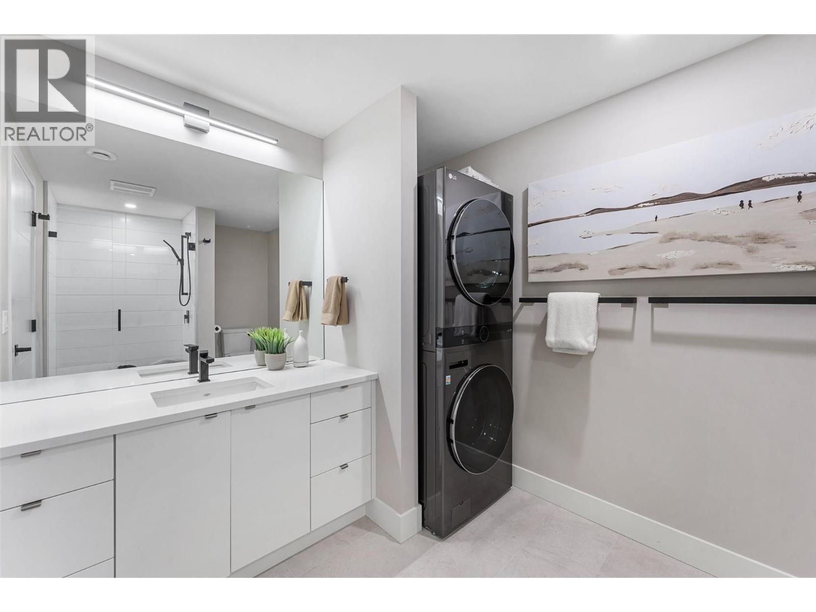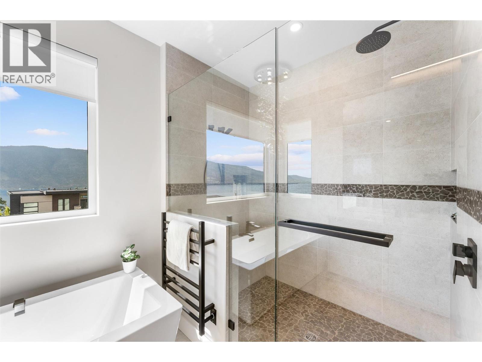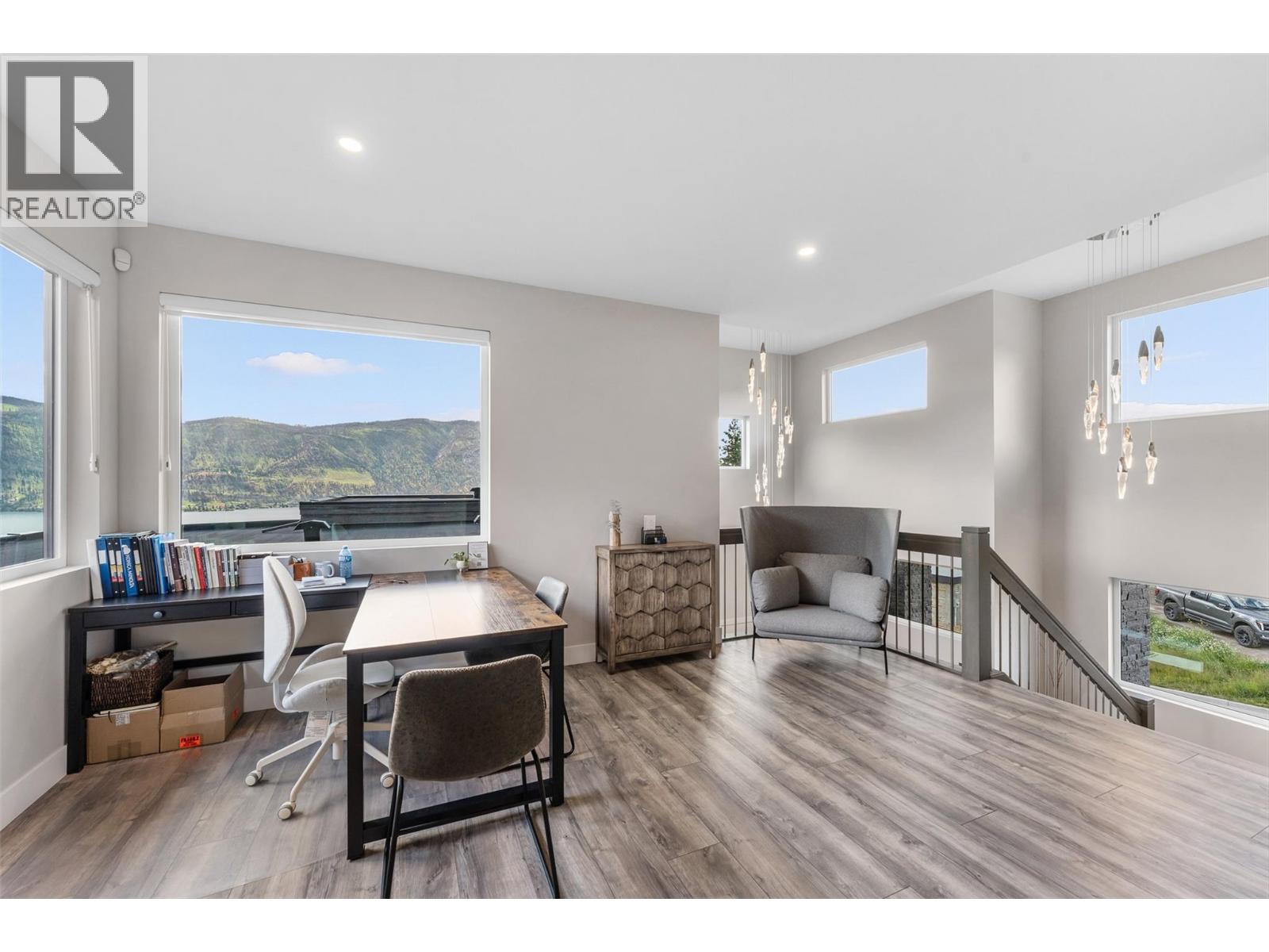 Gorgeous modern home in McKinley Beach where elevated Okanagan living meets thoughtful design & panoramic lake views. Situated on a rare 0.374-acre lot, this estate boasts a spacious family layout with resort-style amenities, expansive indoor-outdoor living, & a self-contained 2 bed/1 bath legal suite. The main level impresses with soaring ceilings, a chef’s kitchen featuring JennAir appliances, a massive island, & a seamless connection to the covered deck—perfect for al fresco dining. The luxurious primary suite enjoys sweeping lake &valley views, a spa-inspired ensuite, & a walk-through dressing room. A bright office, large pantry, powder room, & laundry complete this level. Downstairs, entertain in style with a rec room, wet bar with pass-through windows, wine cellar, & direct walkout access to the backyard oasis, featuring a heated saltwater pool, hot tub, & built-in firepit. Three additional beds & two baths offer flexibility. Upstairs, a versatile loft space is ideal for a home office or gym. The legal suite offers privacy & comfort with a separate deck, laundry, & private entrance. A highlight of this home is the 1300+ sq ft garage with cabinets, separate heat, & hard wired for network. Located minutes from the marina, airport, UBCO, wineries, & golf. Residents enjoy exclusive access to McKinley’s amenity centre with gym, pool, hot tub, pickleball, & more. This is a rare opportunity to own one of the most versatile & beautifully appointed homes in McKinley Beach. (id:6770)