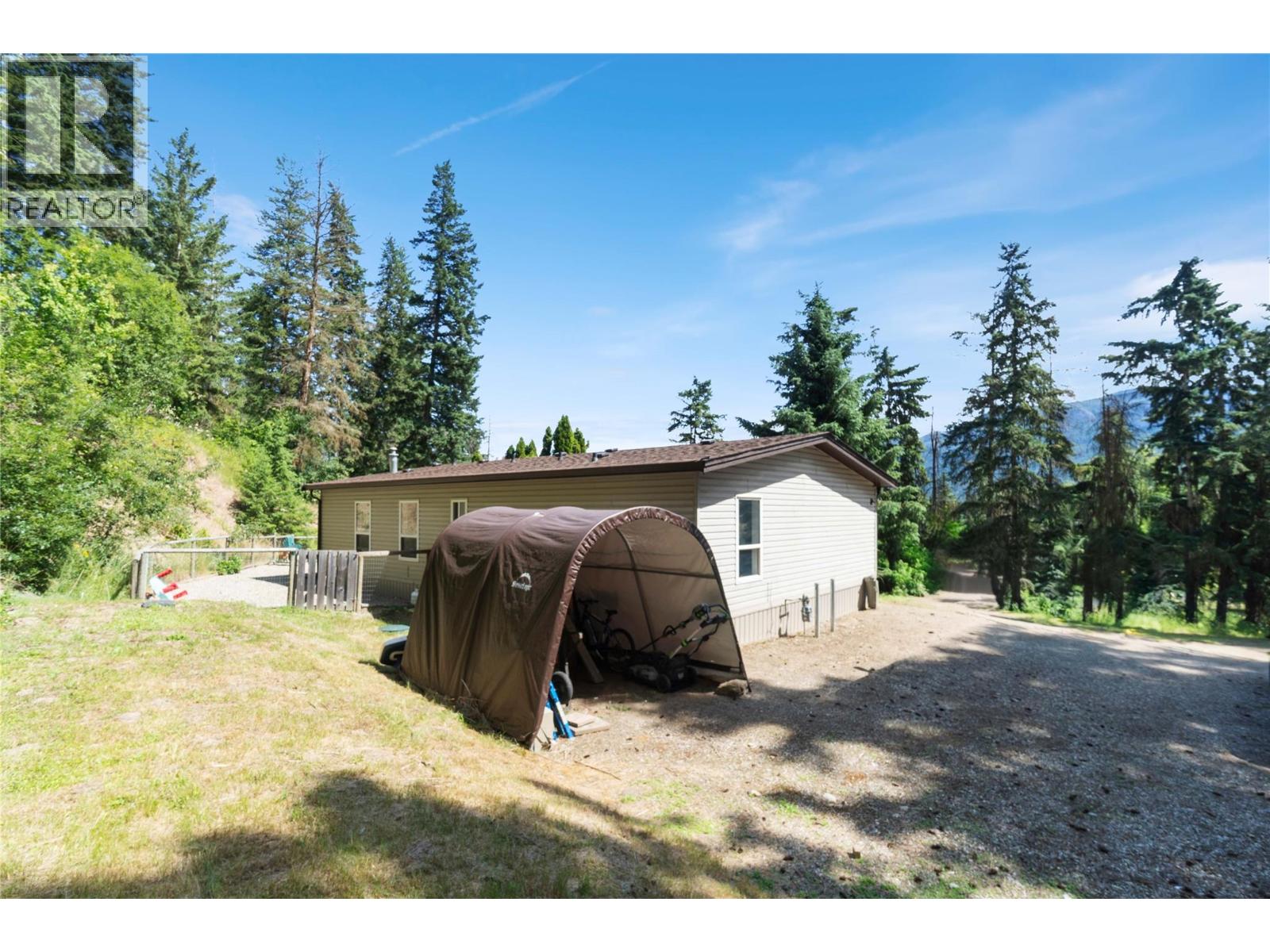 Private and affordable retreat! This 3-bedroom, 2-bathroom manufactured home, built in 2004, offers 1,350 sq. ft. of comfortable living space on a beautifully treed and private 4.52-acre parcel. The heart of the home is the spacious kitchen which is open to the living and dining rooms and features a large pantry and peninsula with room for bar stools. The primary suite is complete with a generous 5-piece ensuite featuring a soaker tub, double sinks, and a walk-in closet. Enjoy serene views of the iconic Enderby Cliffs right from your front porch. Outside, you'll find a fenced backyard, a grassy area ideal for gardens or animals, and plenty of space for parking. The hillside acreage includes trails and open areas to explore, perfect for exploring and enjoying the natural setting. Bonus: the septic system was newly installed in 2020, offering peace of mind for years to come. If you're looking for privacy, space, and an affordable price, this property checks all the boxes. (id:6770)
