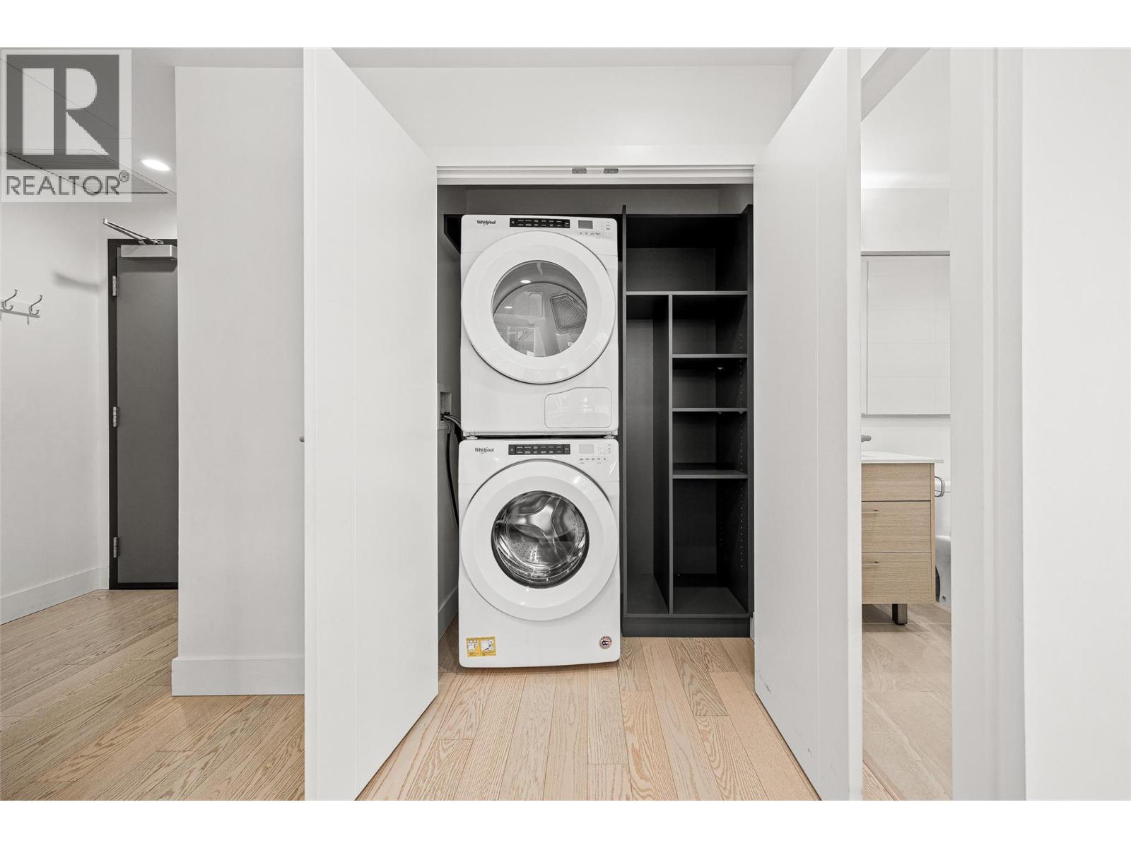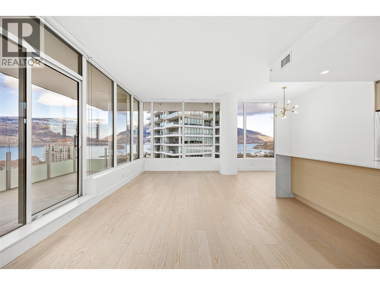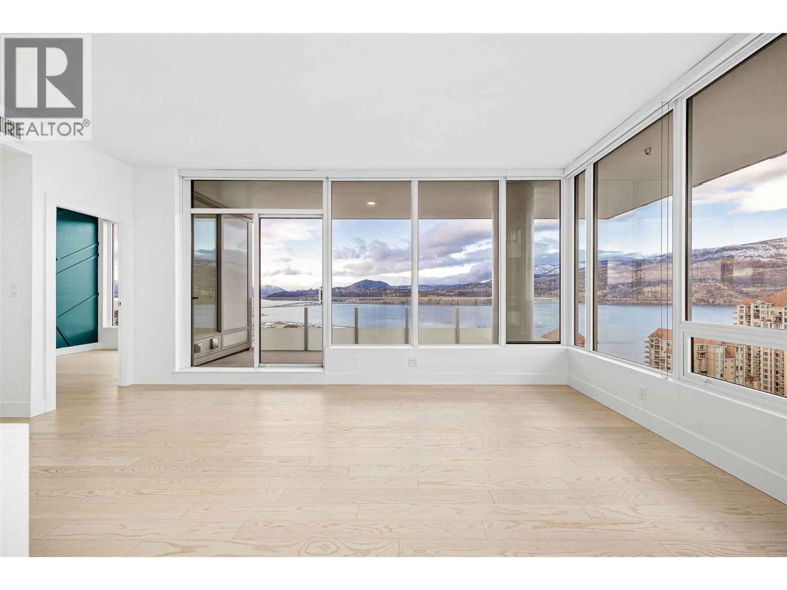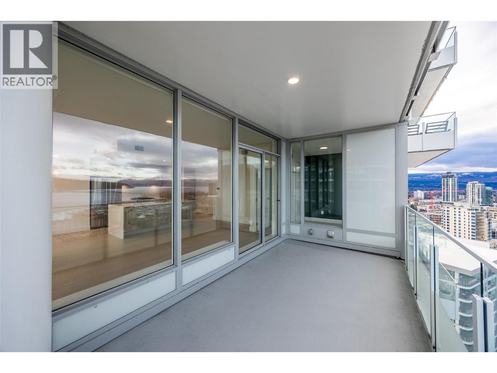 PANORAMIC LAKE VIEWS. Perched high above the city, unit 2205 at One Water Street delivers a true condo-in-the-sky experience with a sweeping west-facing vistas, capturing lake, city mountain & sunset views from every angle! This 2 bed, 2 bath corner unit features an open floor plan where the kitchen, dining and living spaces flow seamlessly to a massive covered sundeck overlooking Kelowna’s waterfront park & Okanagan Lake. The best spot in town to watch boats pass and a front row seat to take in the fireworks! The kitchen blends warm beach tones inspired by Knox Mountain with stainless steel appliances, gas range, island seating, upgraded lighting & near floor to ceiling windows. Custom upgrades include Westwood cabinetry in the primary bedroom and a built-in laundry closet with stacked washer & dryer. The primary bedroom offers a walk-in closet & 3-pc ensuite, while the 2nd bedroom captures jaw-dropping lake views. Ideal as a guest room, office, or flex space! This condo also has a second 4-pc bath with rain shower. Enjoy resort-style amenities: 2 pools, hot tub, fitness centre, yoga studio, steam room, pickleball court, BBQ stations, fire pits, security, guest suites, car wash bay, dog park & more! Includes 1 parking stall near the elevator + 1 storage locker. Convenience meets luxury - live steps to the beaches, restaurants, breweries, coffee shops, Prospera Place, the Cultural District, yacht club + city transit! Move in this spring! A fast possession is possible! (id:6770)