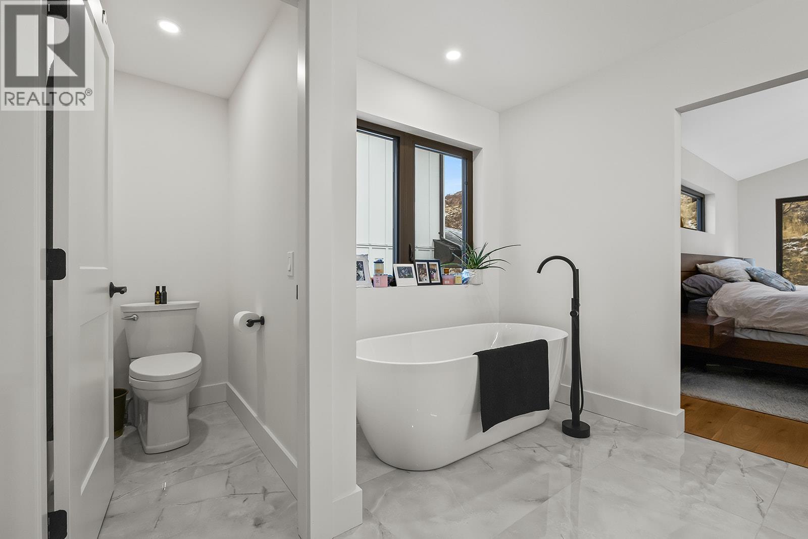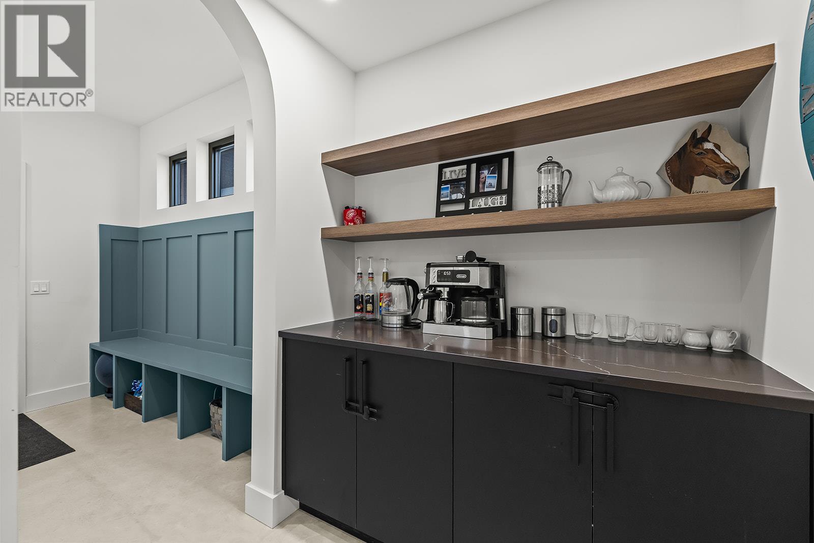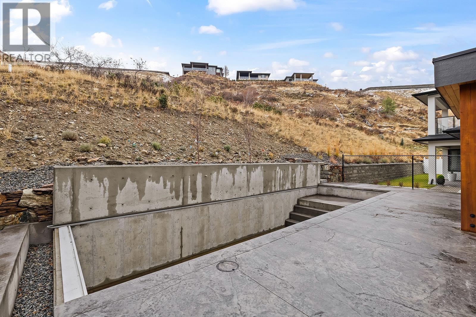 This Kettle Valley contemporary home blends luxury Okanagan living with striking architectural detail and a bright, polished interior. Approx. 2,384 sq ft across two levels creates easy flow, starting with an impressive main floor featuring soaring ceilings, floor to ceiling windows, and a seamless connection to the covered patio with two folding doors and in-ground pool area. The kitchen pairs sleek black cabinetry with warm wood accents, stainless steel appliances, a walk-in coffee bar area, and a large island that opens to the dining and living spaces. Enjoy in-floor hydronic heating throughout the entire main floor, office, and entryway. A natural gas fireplace anchors the room, while the glass enclosed wine cabinet adds a bold focal point. The main level also includes an office, mudroom, bathroom, and access to the garage. Upstairs, you’ll find three bedrooms including the spacious primary with a modern ensuite and generous walk-in-closet. A full bathroom, and laundry room complete the upper level. The backyard sits against natural rockwork for privacy and a dramatic backdrop, the opportunity to add your own finishing touches to this 12x34 concrete pool. Located in a quiet pocket of Kettle Valley near parks, trails, schools, and the new Mission Park Shopping Centre, this home suits families or investors seeking a unique and modern property in a highly desirable neighbourhood. (id:6770)