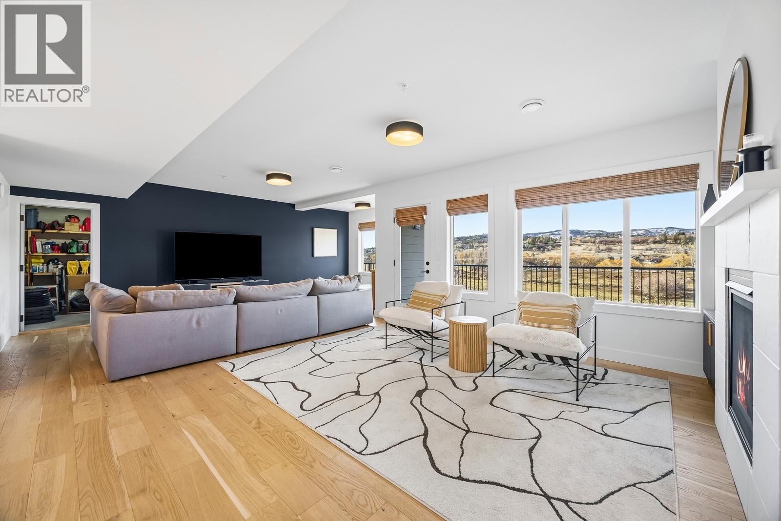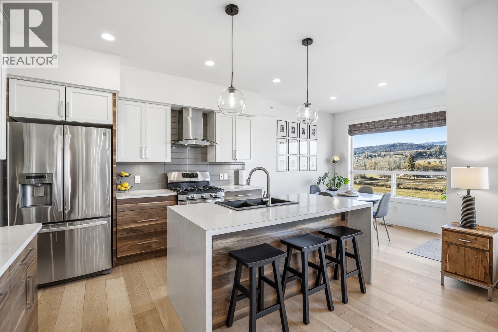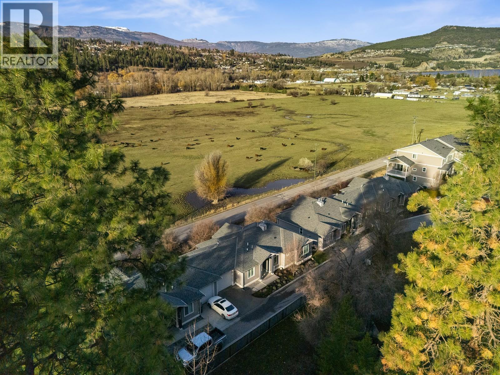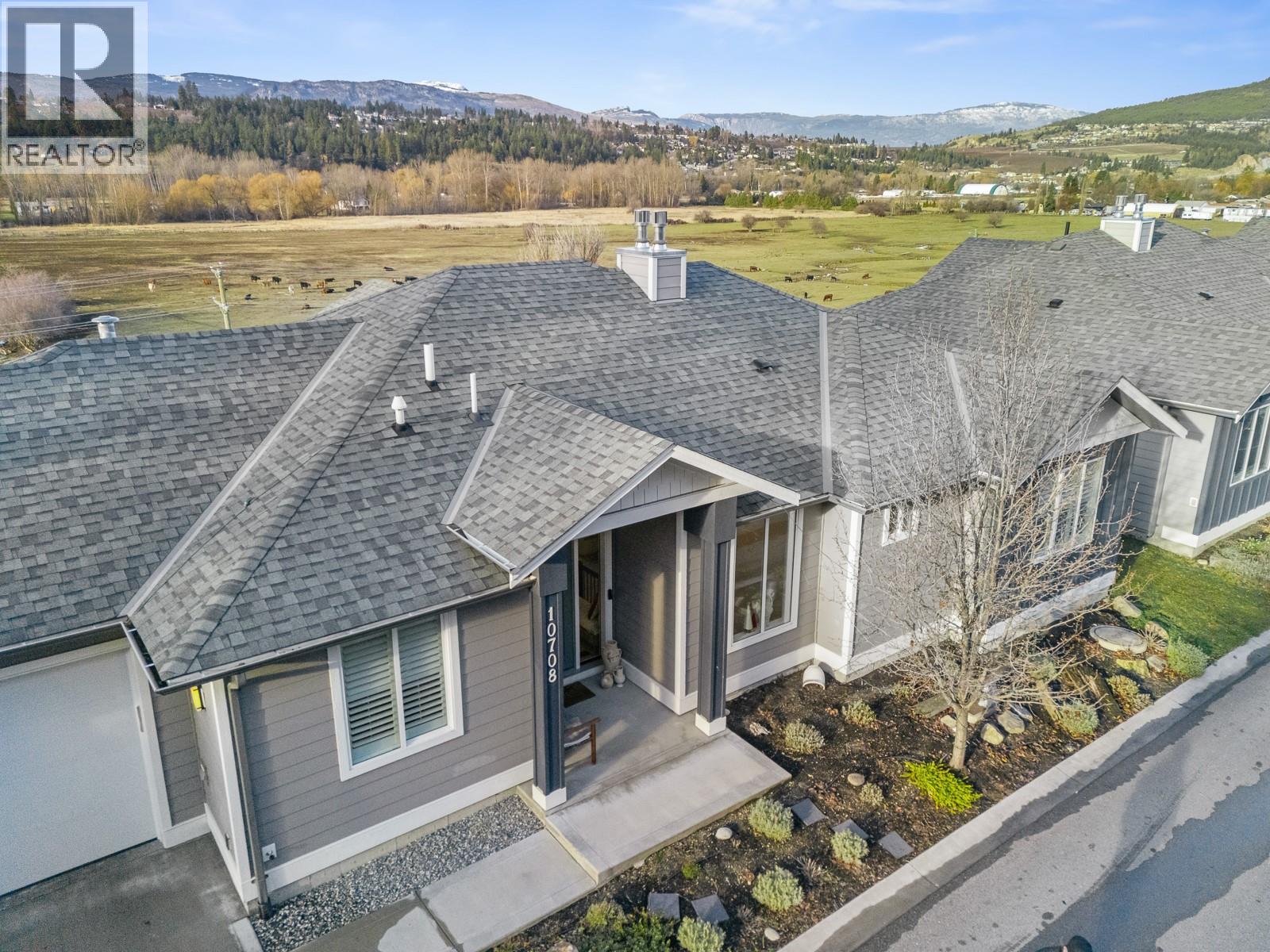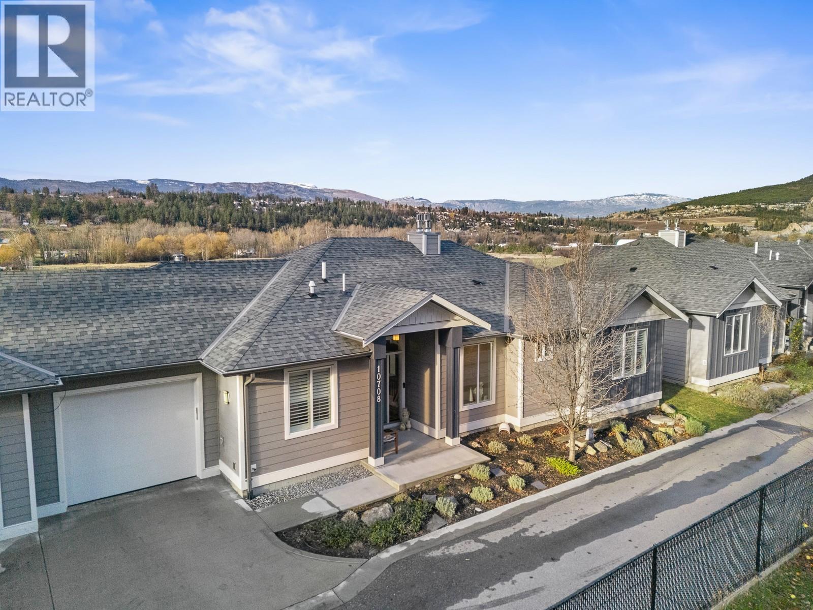 Experience the allure of Lake Country in Lodge Pine Townhomes, an exclusive community featuring only 4 stunning residences. Low strata fees! This exceptional 4-bedroom, 3-bath semi-detached walkout rancher blends luxury & practicality with thoughtfully designed living space. Enjoy easy main floor living with bonus height ceilings & an airy, open-concept layout brimming with natural light. The stylish kitchen showcases premium stainless-steel appliances, a gas range, and a generous kitchen island. The luminous living area leads to an oversized patio, perfect for enjoying breathtaking valley views & vibrant summer sunsets. The primary suite offers a private sanctuary highlighted by a spa-like ensuite featuring a freestanding tub, dual vanities, and a walk-in shower. The lower level hosts two spacious bedrooms, a full bath, and a cozy gas fireplace, along with a wet bar with a mini fridge—ideal for entertaining or relaxing. Designed for effortless living, this home also includes a walkout patio outdoor space and tons of flexible space beneath the garage—perfect for a workshop, gym, or media room. Private gargage and 2 extra spots. Situated a short distance of Wood Lake and moments from the Rail Trail, you’ll find a serene retreat with access to outdoor adventures, wineries, Predator Ridge, UBCO, and YLW. This residence is a unique opportunity for those seeking distinct style and comfort in a coveted locale. (id:6770)