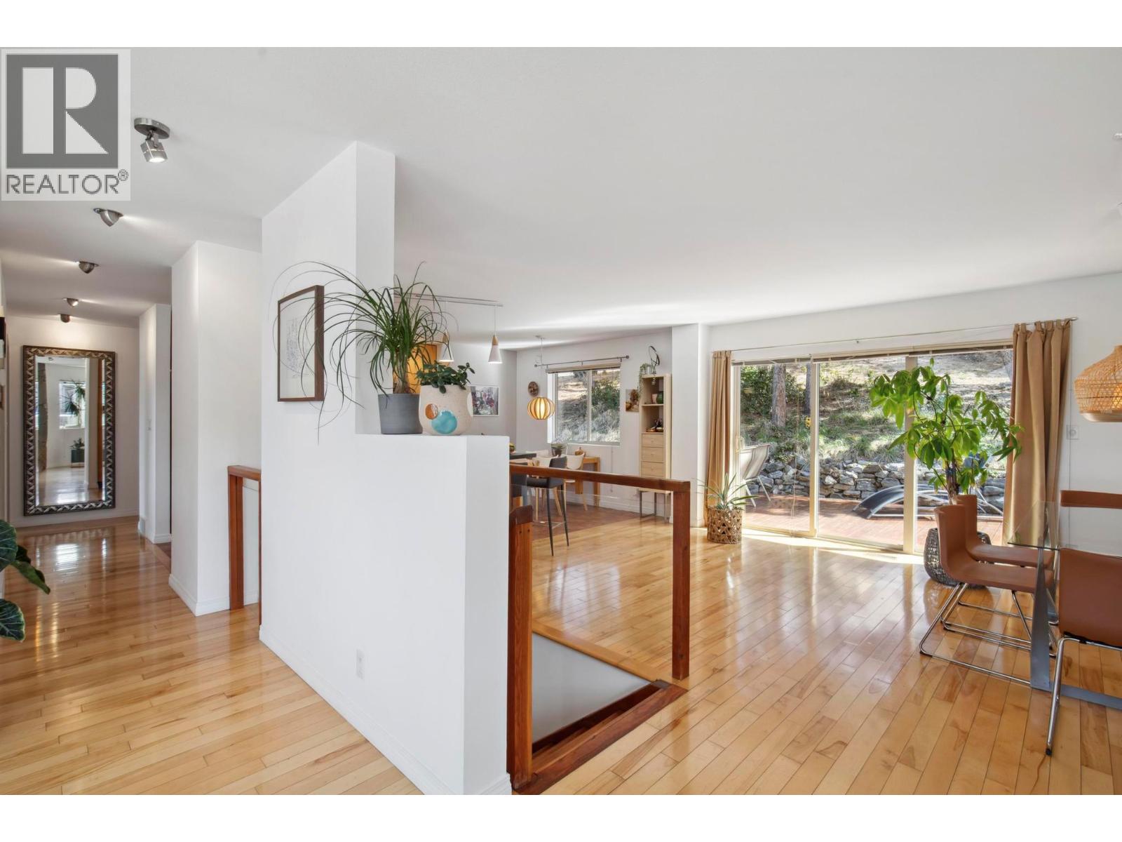 Located in the prestigious northern part of Magic Estates, this architecturally designed 4 bed 3 bath home offers gorgeous views of Okanagan Lake and the mountains. Designed to maximize natural light, it features oversized windows on all sides, bathing every room in daylight and offering stunning views from nearly every angle. With far more windows than a typical home, the design ensures a bright, open atmosphere throughout. Custom built with quality and longevity in mind, the home features a durable cement tile roof, offering fireproofing, exceptional thermal mass, and superior insulation for year-round comfort and energy efficiency. The spacious foyer leads to Douglas fir stairs with glass railings, opening to the upper level. Solid hardwood and ceramic tile floors provide timeless elegance. The living area boasts a cathedral ceiling, a gas stove on a stone feature wall, and panoramic lake and mountain views. A 180 sq. ft. covered balcony is perfect for relaxation. The kitchen offers ample counters, a gas range, and custom-built cabinetry for style and functionality. The dining room opens to a red cedar deck and tranquil low maintenance yard with mature trees. The lower level includes a bright office or studio with large windows, a spacious gym that can double as a theater, music room, or flex space, a 4th bed, a 3rd bath, and laundry. Offered for sale for the first time, this home reflects exceptional care and attention to detail, with easy access to Knox Mountain Park. (id:6770)