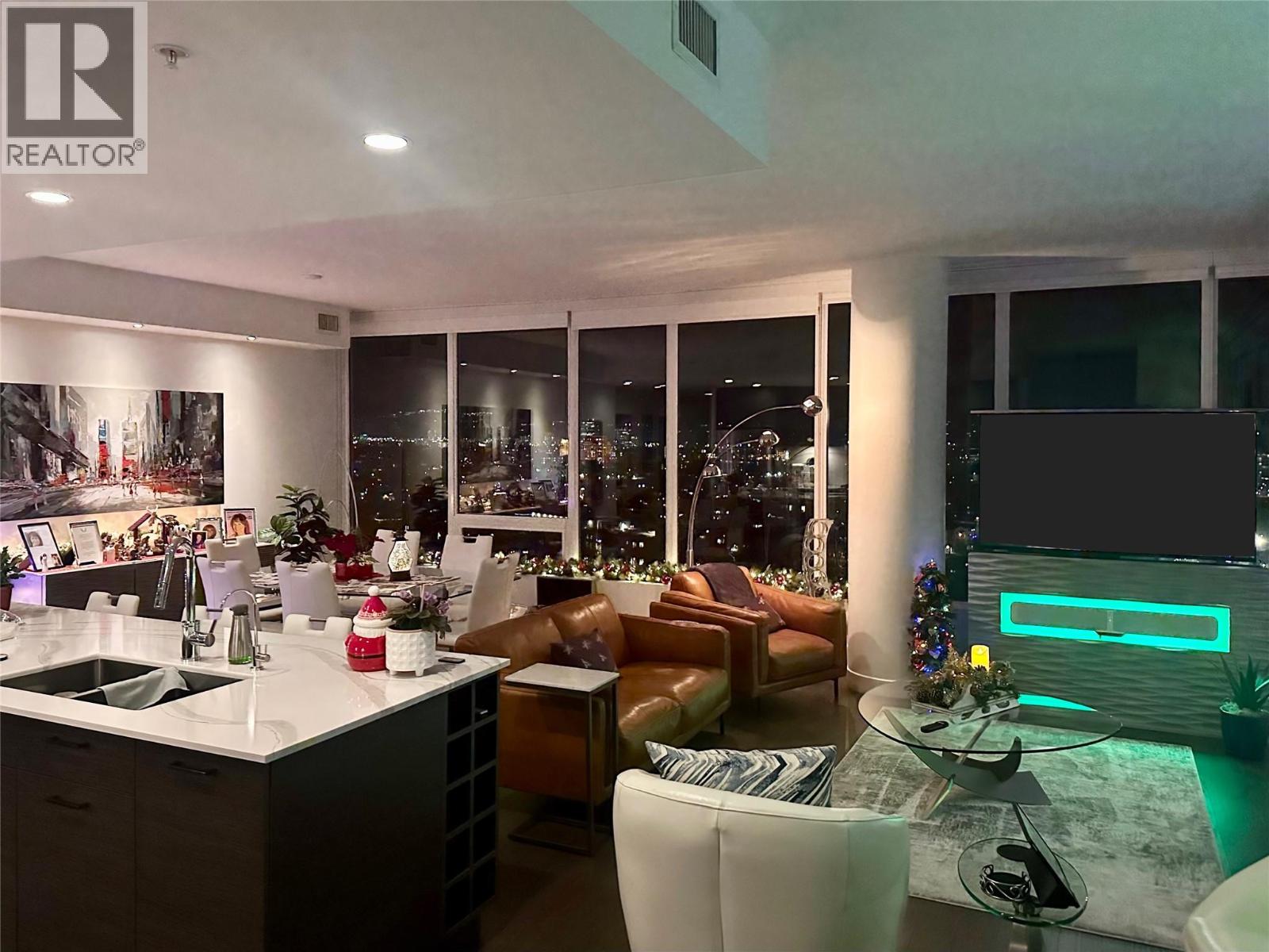 Experience elevated luxury in this stunning corner-unit residence, located at One Water. Step out onto the extended covered deck to take in the most majestic views in Kelowna. Equipped with a gas BBQ hookup, this outdoor space offers a front-row seat to the Yacht Club, the William R. Bennett Bridge, and breathtaking panoramic views of Okanagan Lake and the city skyline. The views continue throughout the home that has approximately $80,000 in meticulous upgrades designed to maximize functionality, storage, and style. The gourmet kitchen features a waterfall quartz countertop, a gas stove, upgraded microwave/convection oven, custom pull-out drawers, water purifier, and a dedicated pantry room with added shelving. The living area is highlighted by custom pot lighting above the hutch, while designer dimmer switches throughout allow you to set the perfect ambiance. The primary suite features custom cabinets with integrated lighting for added storage and aesthetics. The den has been professionally transformed into a functional workspace with a built-in office and cabinetry. Even the utility space has been enhanced with added storage beside the laundry. This offering is completed by a private storage locker that is conveniently larger than most of the standard units in the building. Residents of One Water enjoy first class amenities including two pools, hot tub, fire pits, fitness centre, guest suites and more, all within walking distance to the beach and all downtown has to offer! (id:6770)