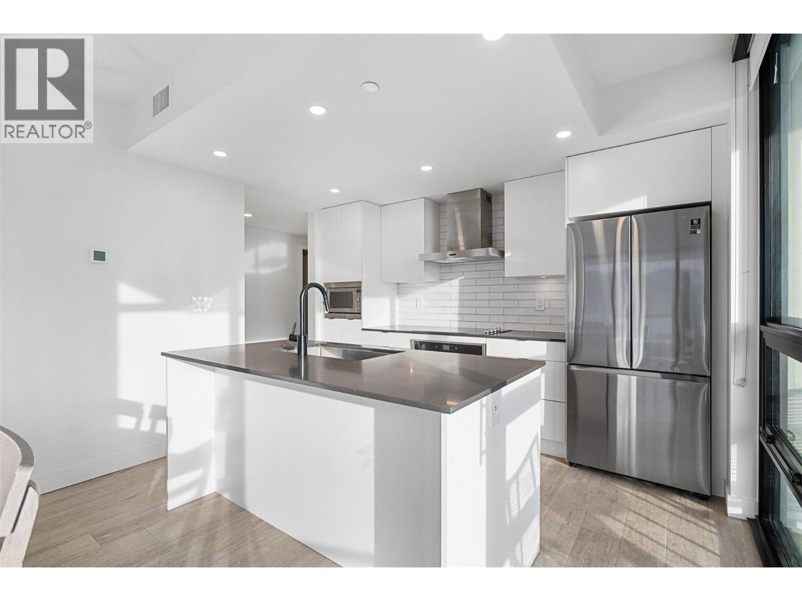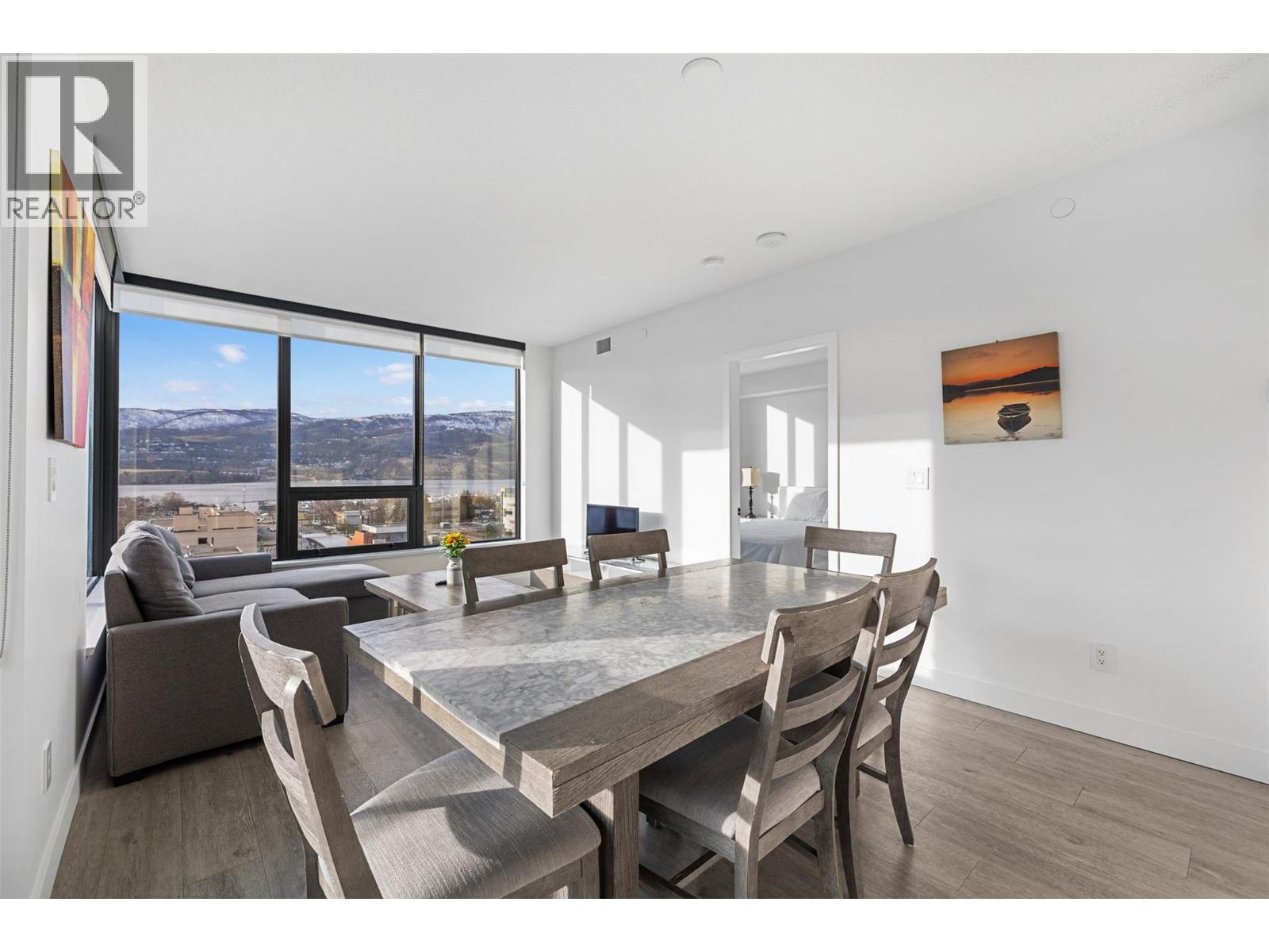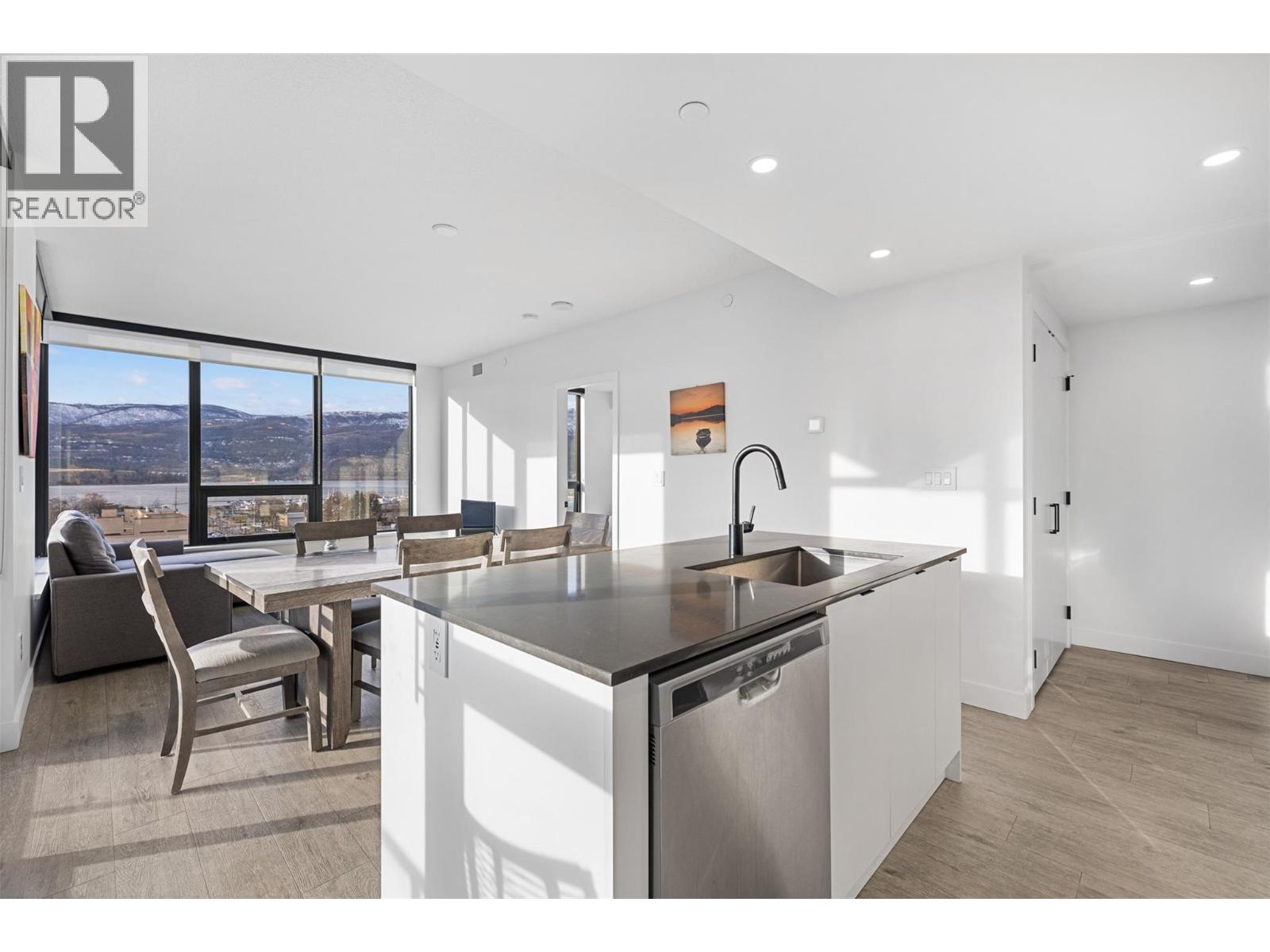 This stunning southwest-facing, 2-bedroom, 2-bathroom corner unit offers 871 sq. ft. of modern, open-concept living plus a private 99 sq. ft. patio that’s perfect for soaking in the lake views. Bright and inviting, the home features a light color palette, sleek stainless steel appliances, quartz countertops, and in-suite laundry. Situated in the vibrant Bernard District, you’ll enjoy a 98 WalkScore with City Park, the lake, top restaurants, shopping, and nightlife right at your doorstep—plus the future UBCO downtown campus just a short walk away. Pet-friendly and with no age restrictions, this home is ideal for professionals, investors, or anyone seeking an urban lifestyle. Residents enjoy premium amenities like a rooftop terrace with BBQ area, conference room, lounge, dog wash station, bike wash, and secure bike storage. One designated parking stall is included. Owner-occupied and move-in ready. Allow two dogs or two cats or one of each, no size or breed restriction on dogs. (id:6770)