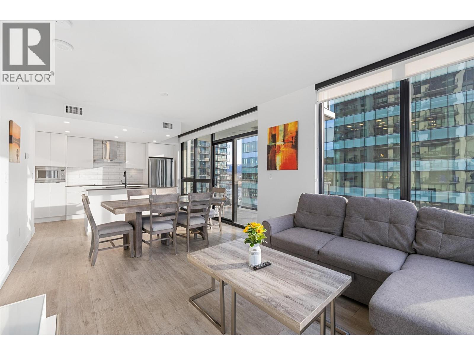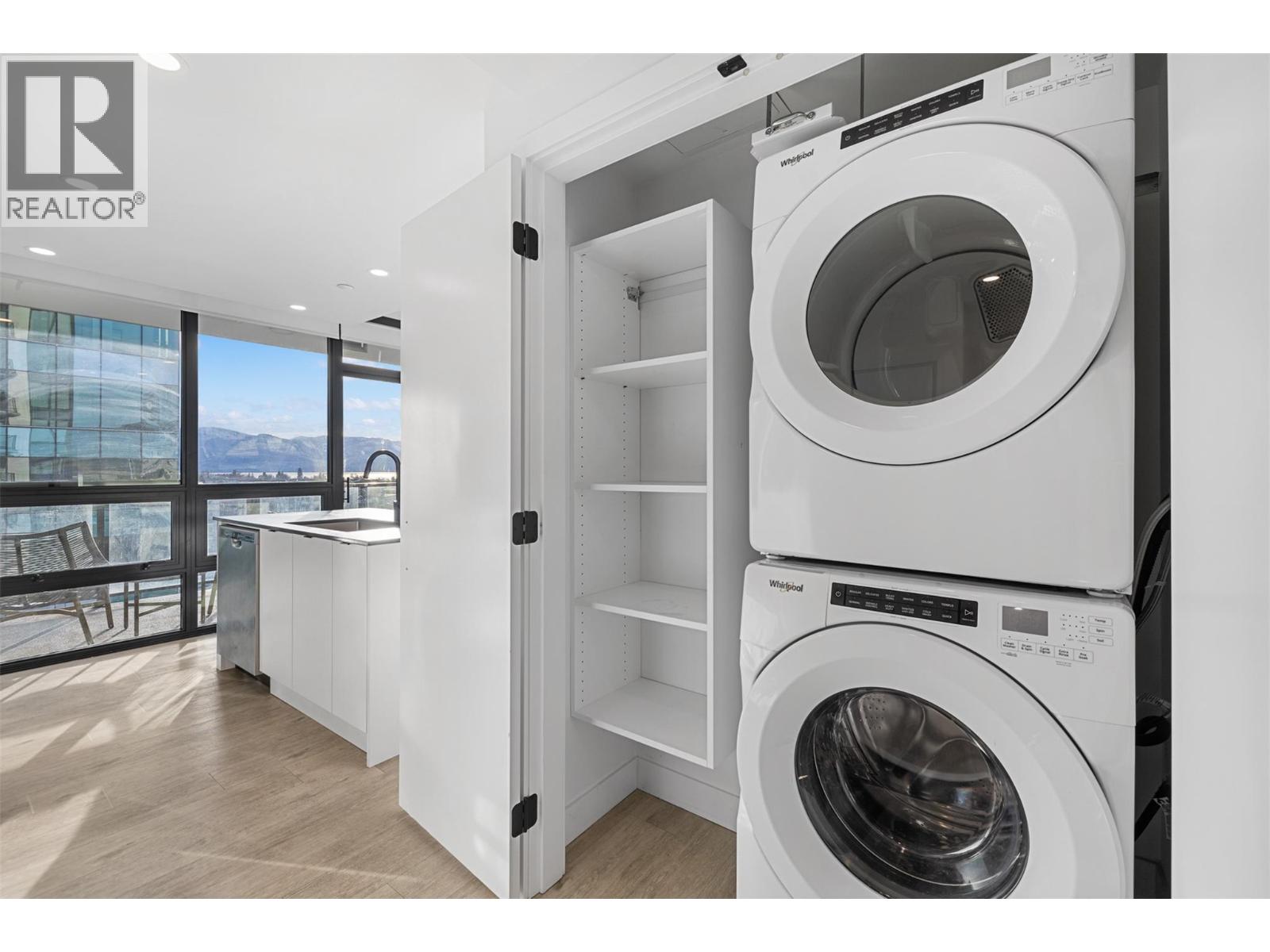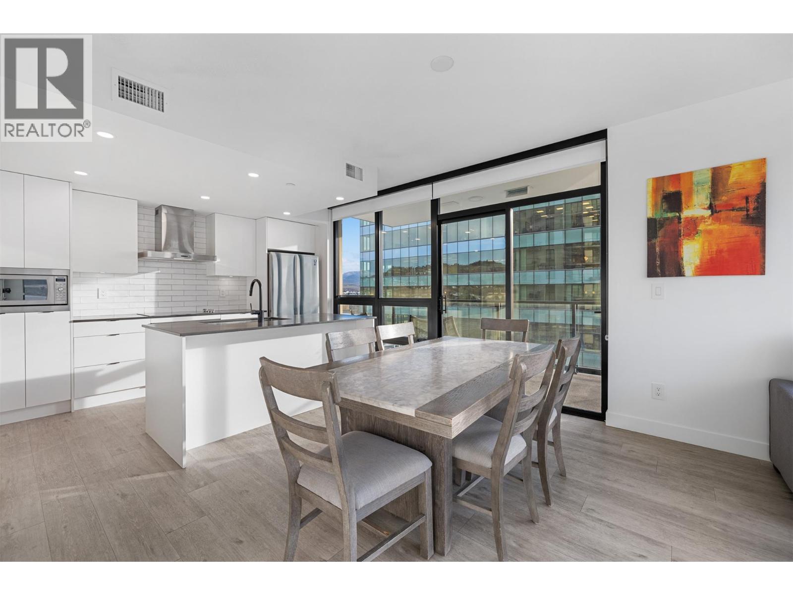 This stunning southwest-facing, 2-bedroom, 2-bathroom corner unit offers 871 sq. ft. of modern, open-concept living plus a private 99 sq. ft. patio that’s perfect for soaking in the lake views. Bright and inviting, the home features a light color palette, sleek stainless steel appliances, quartz countertops, and in-suite laundry. Situated in the vibrant Bernard District, you’ll enjoy a 98 WalkScore with City Park, the lake, top restaurants, shopping, and nightlife right at your doorstep—plus the future UBCO downtown campus just a short walk away. Pet-friendly and with no age restrictions, this home is ideal for professionals, investors, or anyone seeking an urban lifestyle. Residents enjoy premium amenities like a rooftop terrace with BBQ area, conference room, lounge, dog wash station, bike wash, and secure bike storage. One designated parking stall is included. Owner-occupied and move-in ready. Allow two dogs or two cats or one of each, no size or breed restriction on dogs. (id:6770)