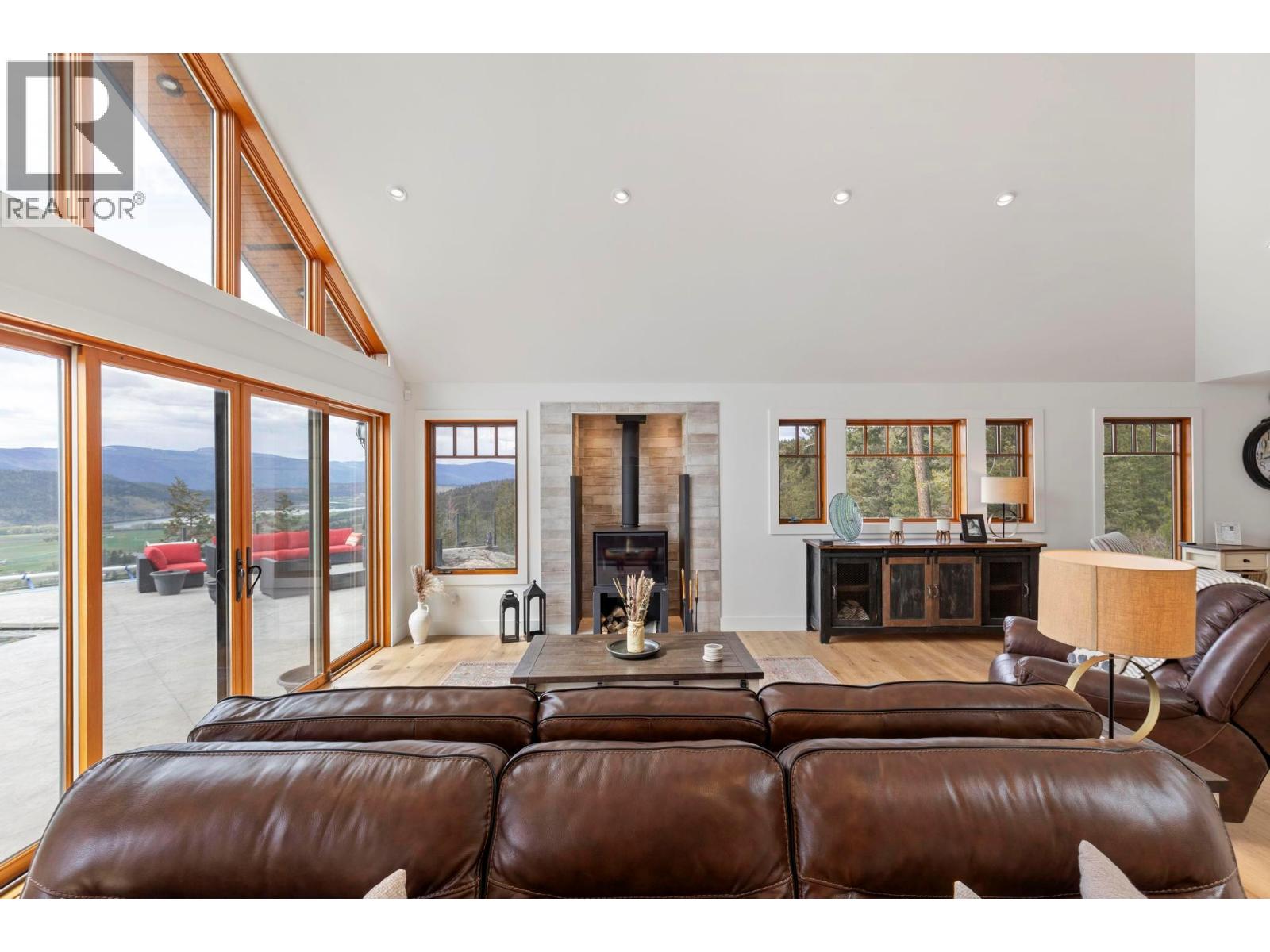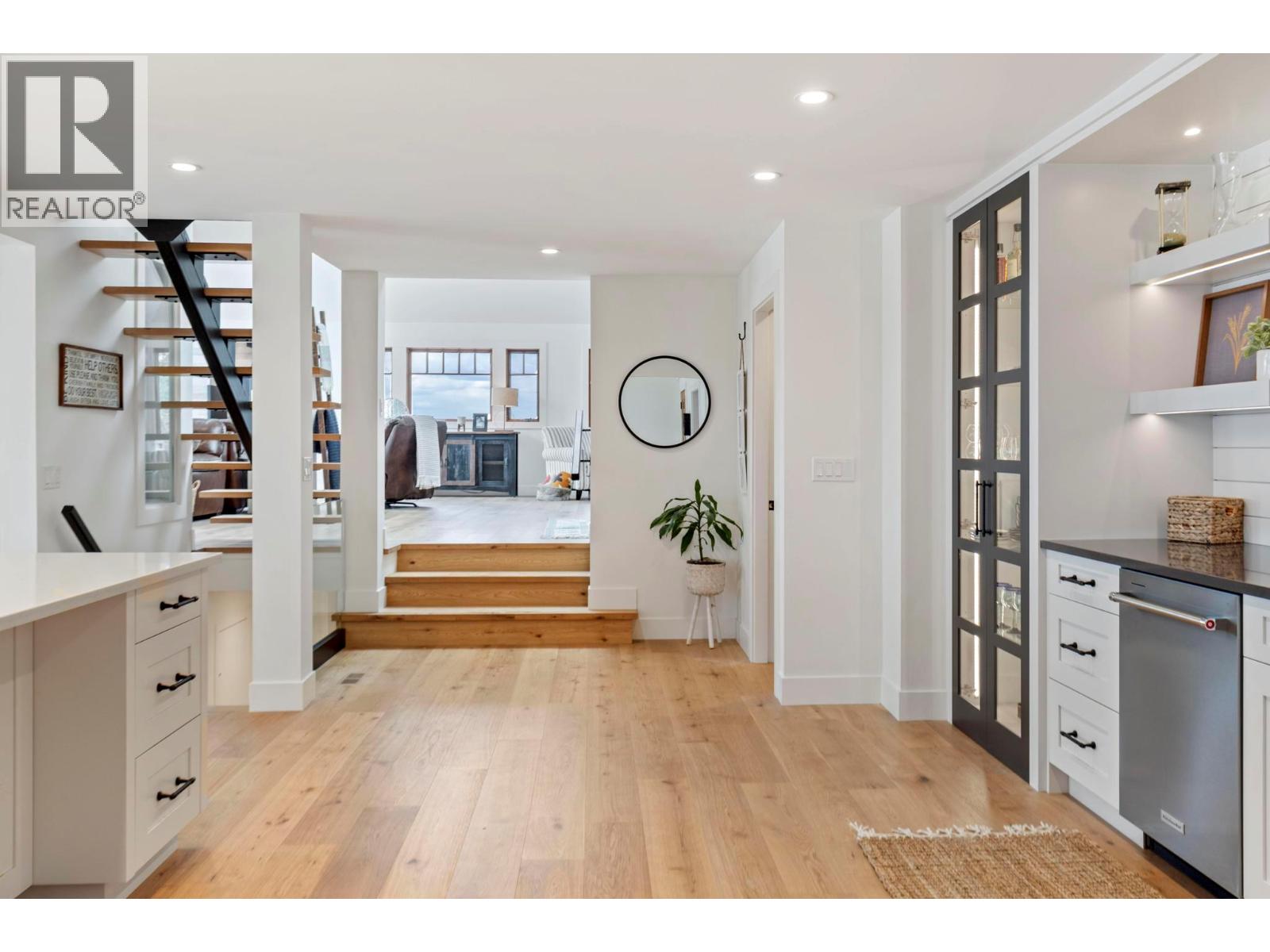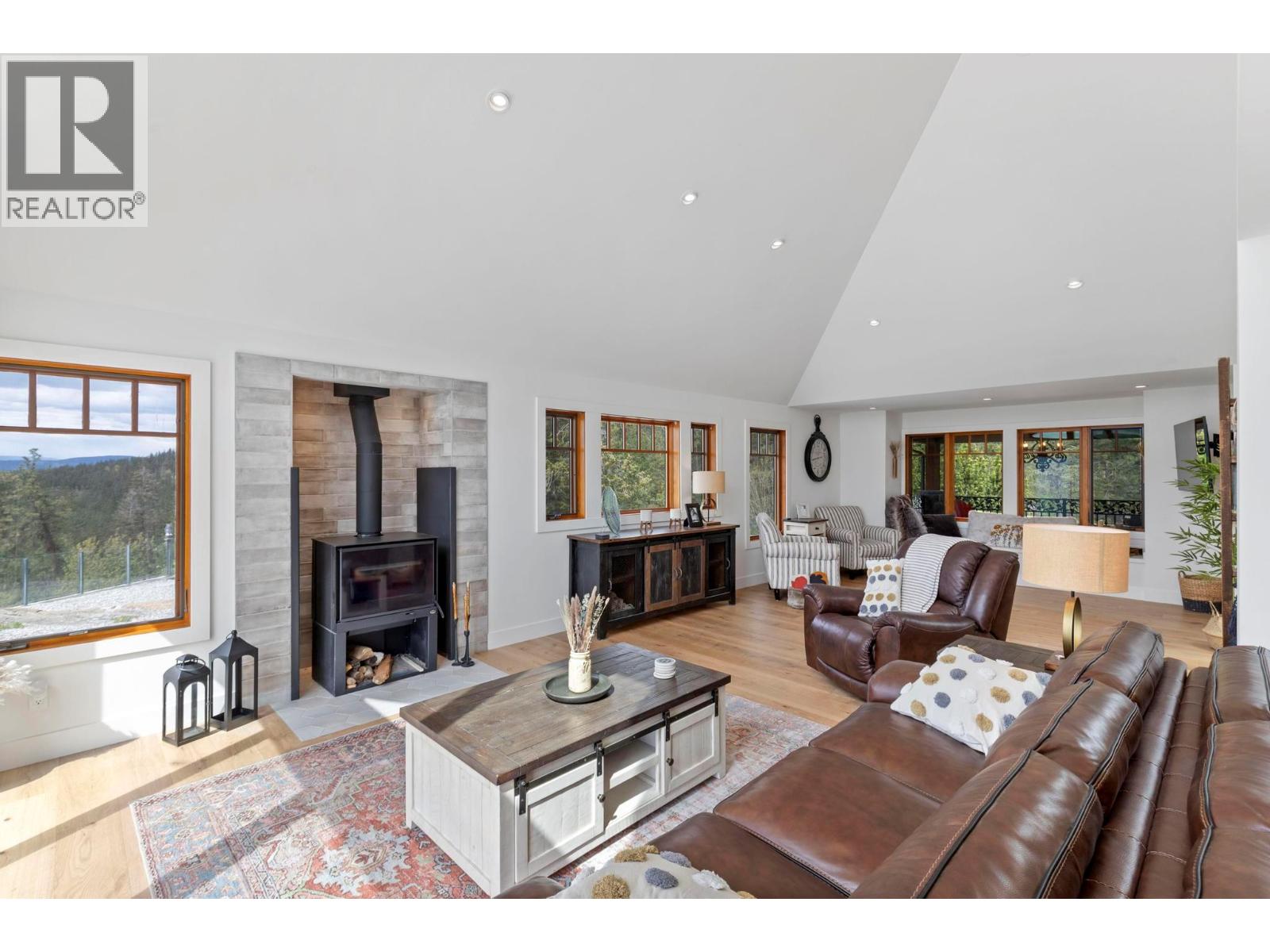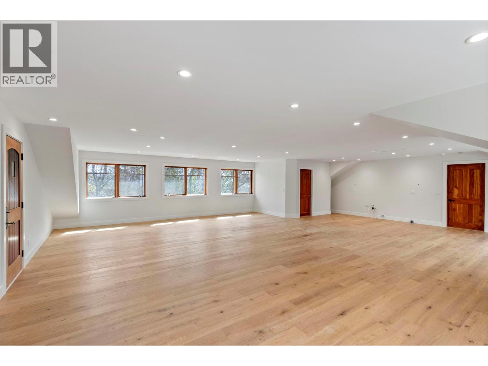 Over 6000 square foot recently renovated six bedroom, six bathroom residence situated on 9.364 acres of land in the Ellison area of Kelowna with a huge pool, lake views, and more. The home has been renovated from top to bottom and down to the studs, including newer electrical, plumbing, drywall, insulation, exterior (including roof), all cosmetic finishings, and more, making this a showstopping renovation by Caliber Developments. Through the gated entry, you are immediately drawn to the wood and stone exterior of the home, with a huge oversized triple car garage and additional side garage, perfect for a dedicated workshop. The living room with over height ceilings/windows is complimented by a wood-burning stove and a cooled wine room. Down a half-level is the new kitchen, complimented by brand-new appliances, an emphatic double island, and a family room, all opening up to the outdoor living space for a perfect indoor/outdoor transition. Off the kitchen is a powder room, and bedroom/office. Upstairs, the family-friendly layout offers three bedrooms, including a spacious master bedroom with his/her sinks, a freestanding tub, and tiled shower. There is a 35' by 34' recreational room, perfect for a studio/office, gym, kids room, etc, with a bathroom and rough-ins for a bar. There is a fully self-contained legal suite in the basement, great for guests! Outside, the infinity pool offers expansive views of the lake and valley ahead, and concrete areas for entertaining. (id:6770)