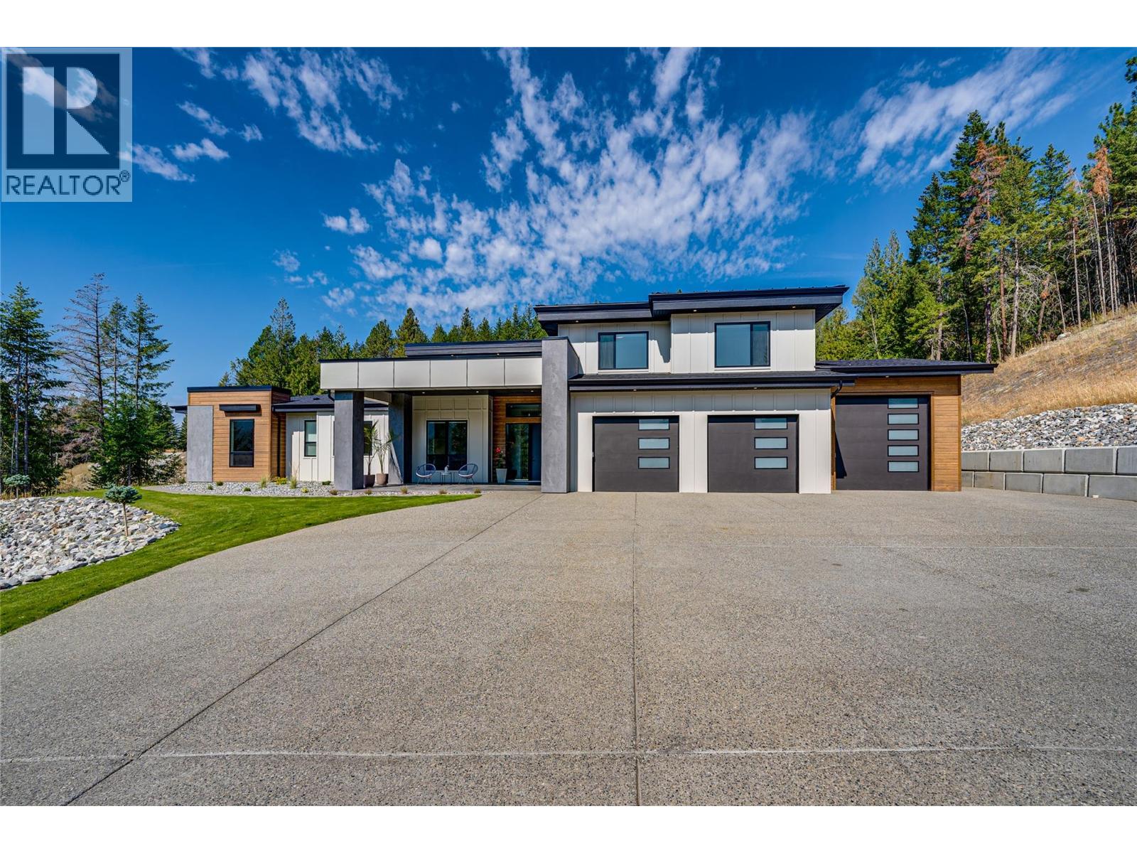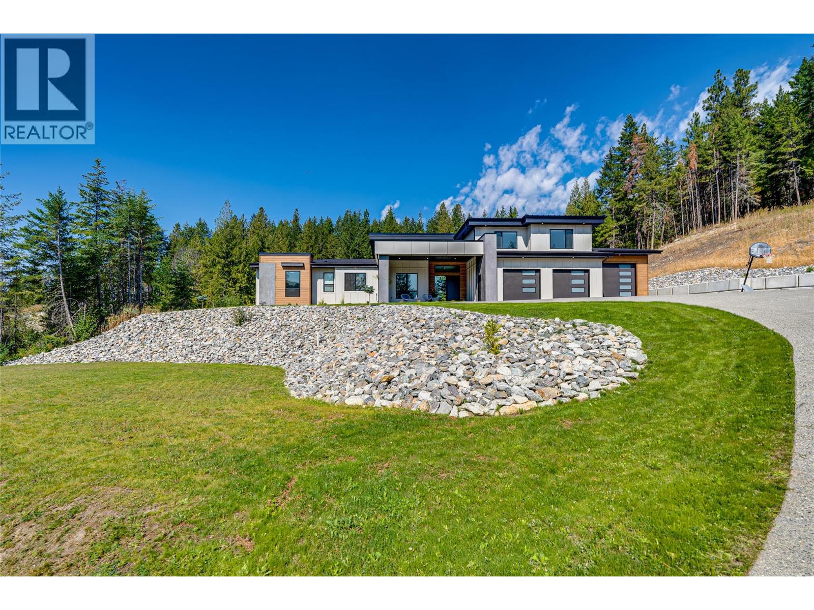 An unexpectedly intuitive fusion of the Okanagan Valley’s rustic natural beauty and the calming clean lines of modern design, this stunning 6-bedroom new construction property on nearly 5 acres that allows for a secondary suite or carriage house, boasts incredible privacy with room for expansion. Ski lovers will adore the location, mere minutes from Silver Star Resort. Upon arrival, over 8000 square feet of exposed aggregate driveway and walkways welcome you, seamlessly complimented by contemporary and low-maintenance landscaping. Upon entry, an expansive and open concept living, dining, and kitchen area unveils itself with custom millwork and cabinetry throughout and gleaming premium engineered hardwood underfoot. The gourmet kitchen impresses with bespoke design, an oversized centre island, quartz countertops, stainless steel appliances, and slatted wood accents. A main floor primary suite comes complete with a walk-in closet and ensuite bathroom with double vanity. Two bedrooms plus an additional office or third bedroom share a superbly appointed full hall bathroom. Upstairs two more bedrooms a shared full bathroom and a bonus room could be utilized for a number of purposes. Move right into this marBuilt by Avalanche Construction, electric in-floor heating in tiled areas. Roughed in for future pool. For more informationor to submit an offer please contact Laura Reners at 250-307-4596 or laura@saltfowler.com.vellous home and imagine the possibilities for the future, whether you have your sights set on a pool or large shop, the expansive property is ready to serve. (id:6770)
