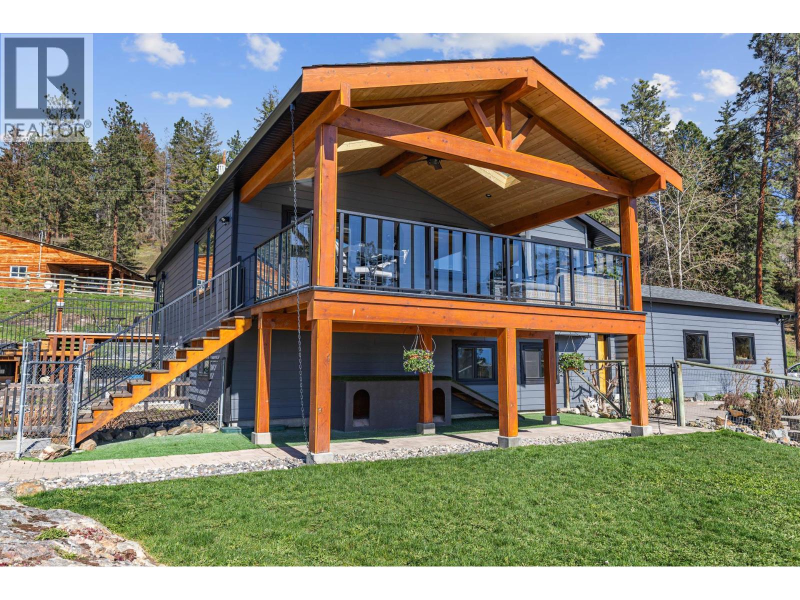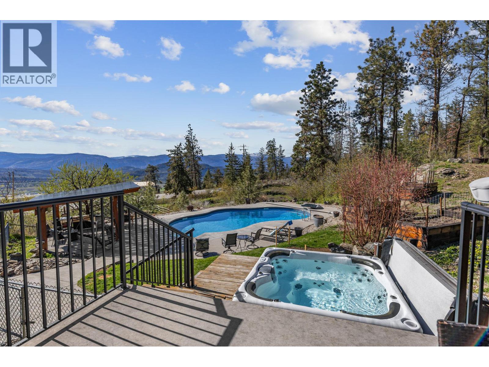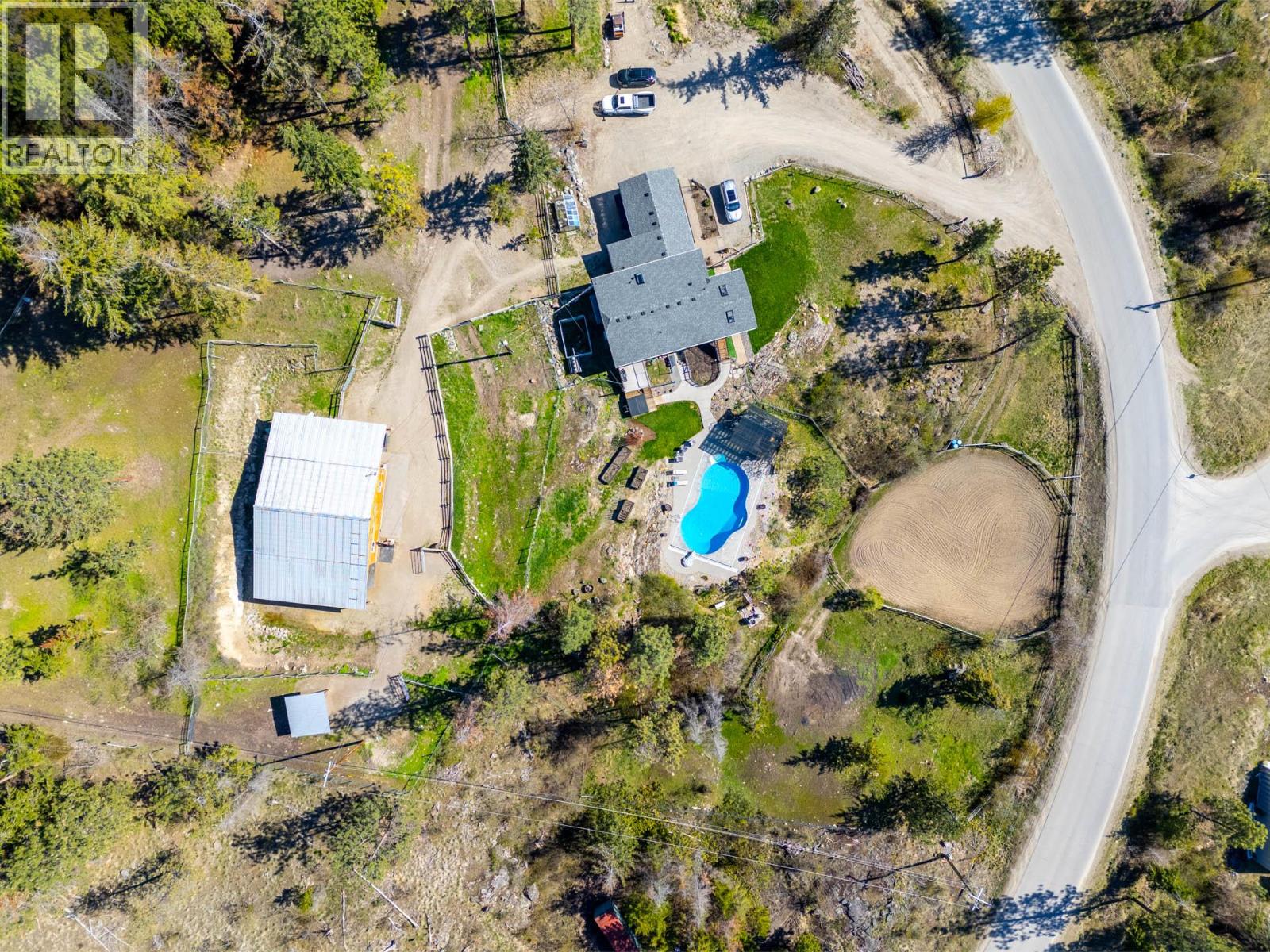 Set on 10.14 acres in scenic Ellison, this estate showcases breathtaking views of Kelowna, Okanagan Lake, and the valley, while offering a rare combination of privacy, usability, and long-term infrastructure. The 2,700+ square foot four bedroom, three bathroom home has been thoughtfully renovated over the years, including new windows, siding, R8 Rockwool insulation, and a new roof (2025). Maple hardwood flooring flows throughout the main level and primary suite, while the renovated ensuite provides a luxurious private retreat. The hickory kitchen is functional and refined, featuring a quartz island with Corian perimeter countertops. Outdoor living is equally impressive, with valley views from the 14’x21’ covered deck, complete with power retractable shades, and a $200K+ saltwater automatic self-cleaning pool with power cover. The property is fully irrigated and fenced, featuring seven enclosures (potential pastures), making it ideal for hobby farming or equestrian use. A standout feature is the 1,400 square foot barn/workshop, originally built as a five stall barn with asphalt flooring, rubber matting, heated tack room, and hot/cold water, now partially converted into an insulated 16’x36’ workshop with mezzanine storage while retaining functional barn space. There is abundant parking and storage for equipment and rec vehicles. Infrastructure is well planned with 500amp power, including a separate pre-installed 200amp service at the top of the property for future development. A private second driveway off Sierra offers future access for a potential carriage home. The flat upper building site also includes an RV power hook-up. Water supply is robust with a 12 GPM well, supported by a 2,000-gallon cistern (2010) and a newer well pump (2024). Find nearby Crown land access, while remaining 5 minutes to the airport and 20 minutes to downtown. A rare opportunity for rural Okanagan living at its finest. (id:6770)