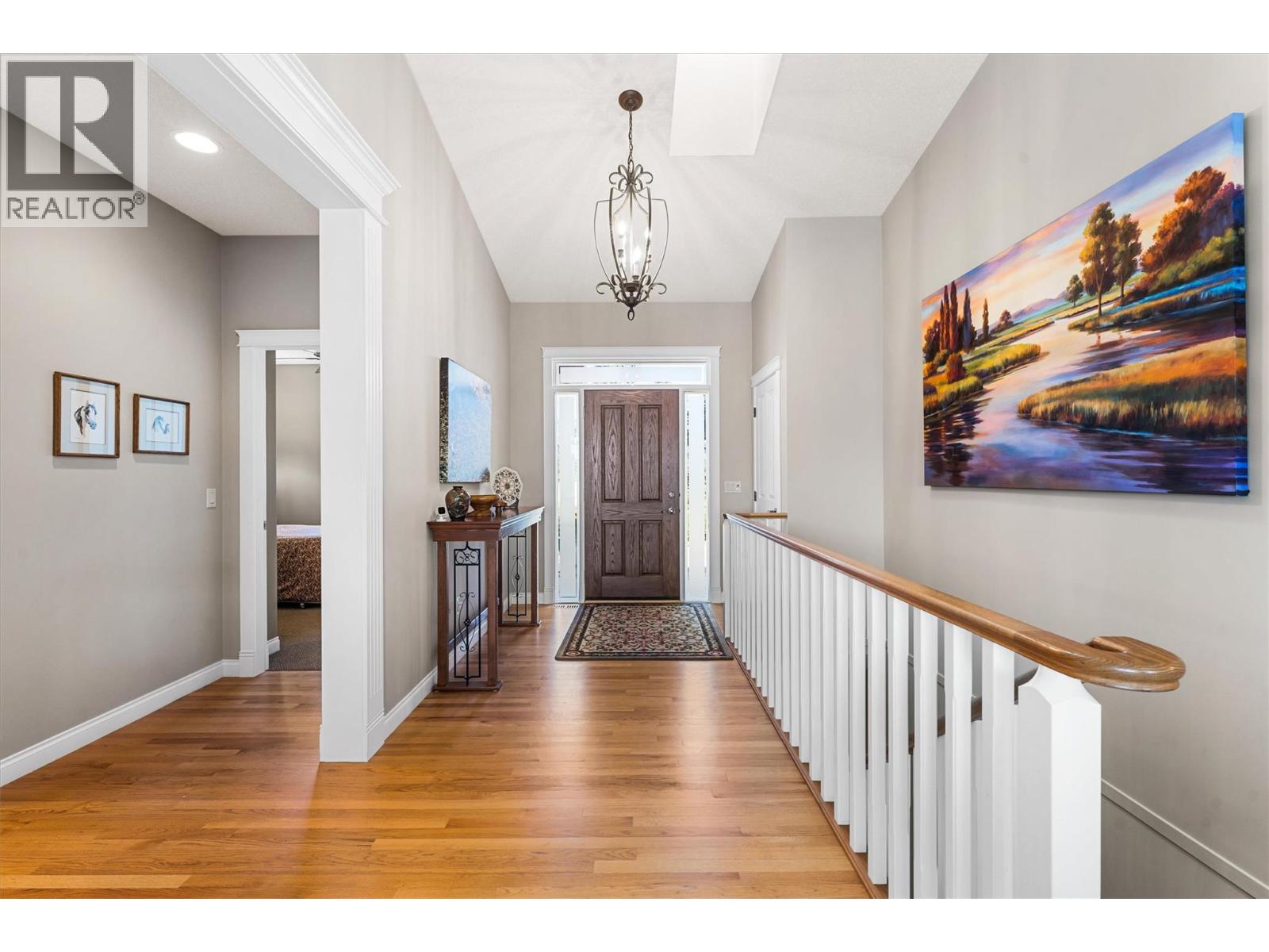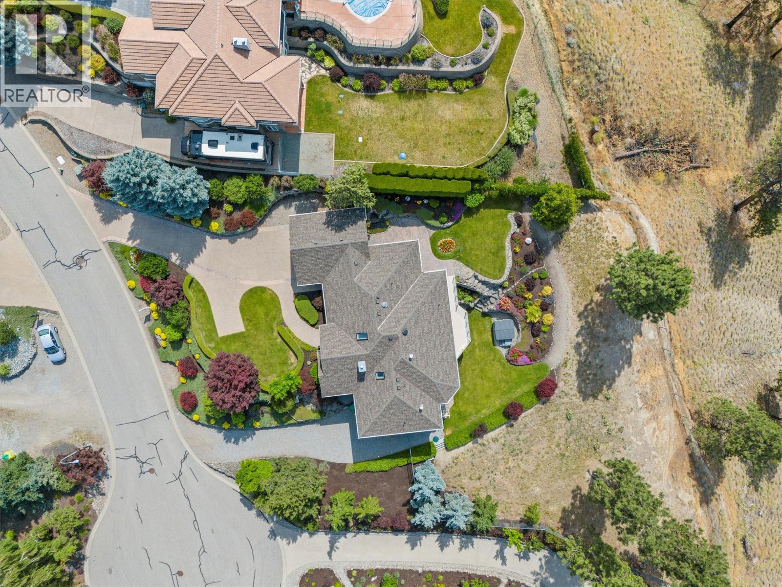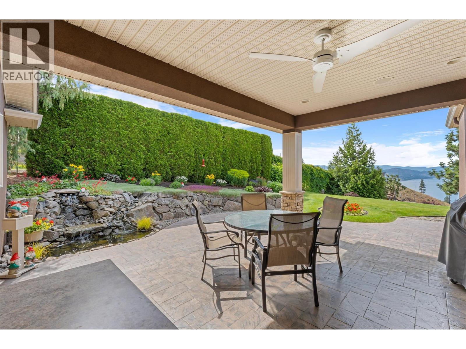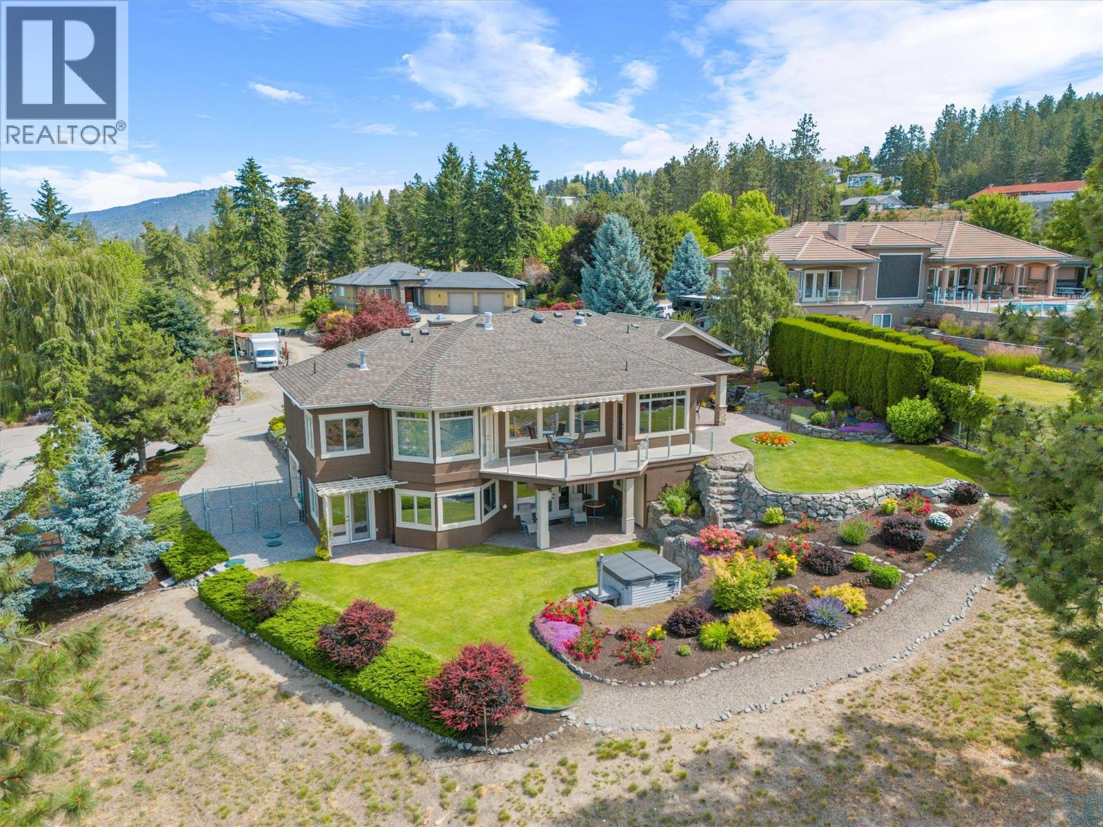 Welcome to The Pointe, an exclusive and tranquil community just north of Lakestone in Okanagan Centre. Capturing breathtaking south-western lake views, this 3,365 Sq.Ft. walkout rancher offers an exceptional blend of serenity, elegance and indoor–outdoor living. Set within a perfectly manicured lot, the property is a true private retreat complete with impressive rock walls, handcrafted staircases and a fully fenced back yard with hot tub, soothing water feature and an expansive covered patio, perfect for relaxing afternoons or sunset gatherings. The main level features a bright open-concept dining and living space with vaulted ceilings, anchored by a gas fireplace framed in stone with a rich wood mantle. Solid oak hardwood floors extend throughout, complementing the chef’s kitchen equipped with granite countertops, gas cooking and an adjacent prep area perfect for hosting with ease. A generous skylit foyer leads to two beautifully appointed bedrooms on this level, including the primary suite. The ensuite showcases a two-way fireplace, soaker tub, heated floors and spacious walk-in closet with direct access to the laundry room. A walkout basement with expansive windows seamlessly connects the interior to the outdoor oasis. A large recreation area with wet bar offers the perfect setting for entertaining, while a sound-proofed media room and temperature-controlled wine storage enhances the home’s sophisticated amenities. An office or additional bedroom provides a welcoming space for guests, complemented by a versatile den ideal for use as a massage or fitness room. Car enthusiasts will value the storage: a 220V double garage, plus a second single garage and workshop with its own driveway, and fully serviced RV site. Meticulously maintained and move-in ready, recent upgrades include a high-efficiency furnace, hot water tank and new roof. Minutes from award-winning wineries, boat launch and public beach, this remarkable property offers an unparalleled Okanagan lifestyle. (id:6770)