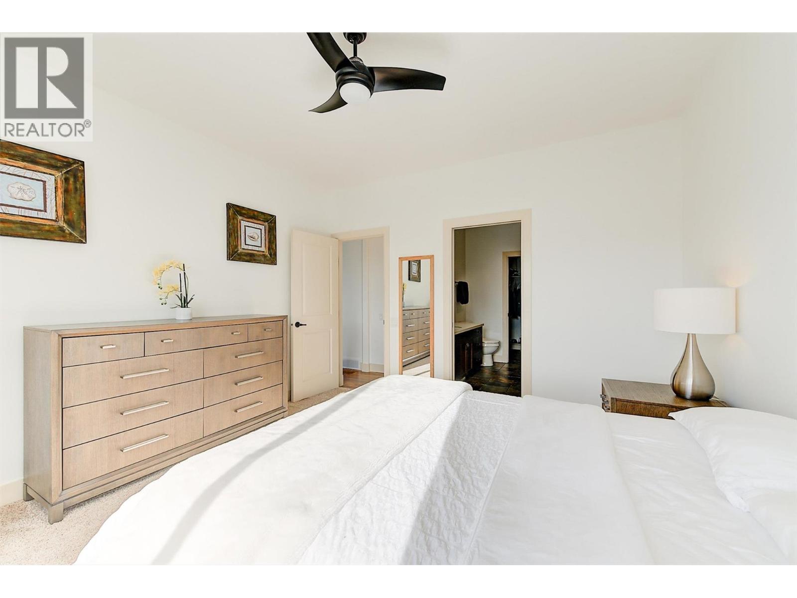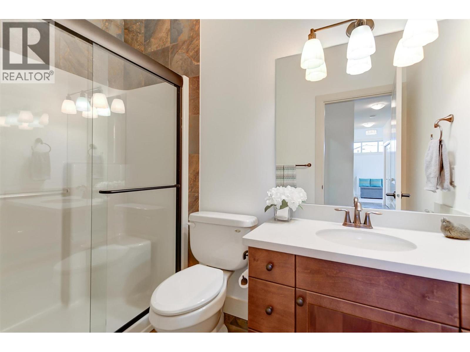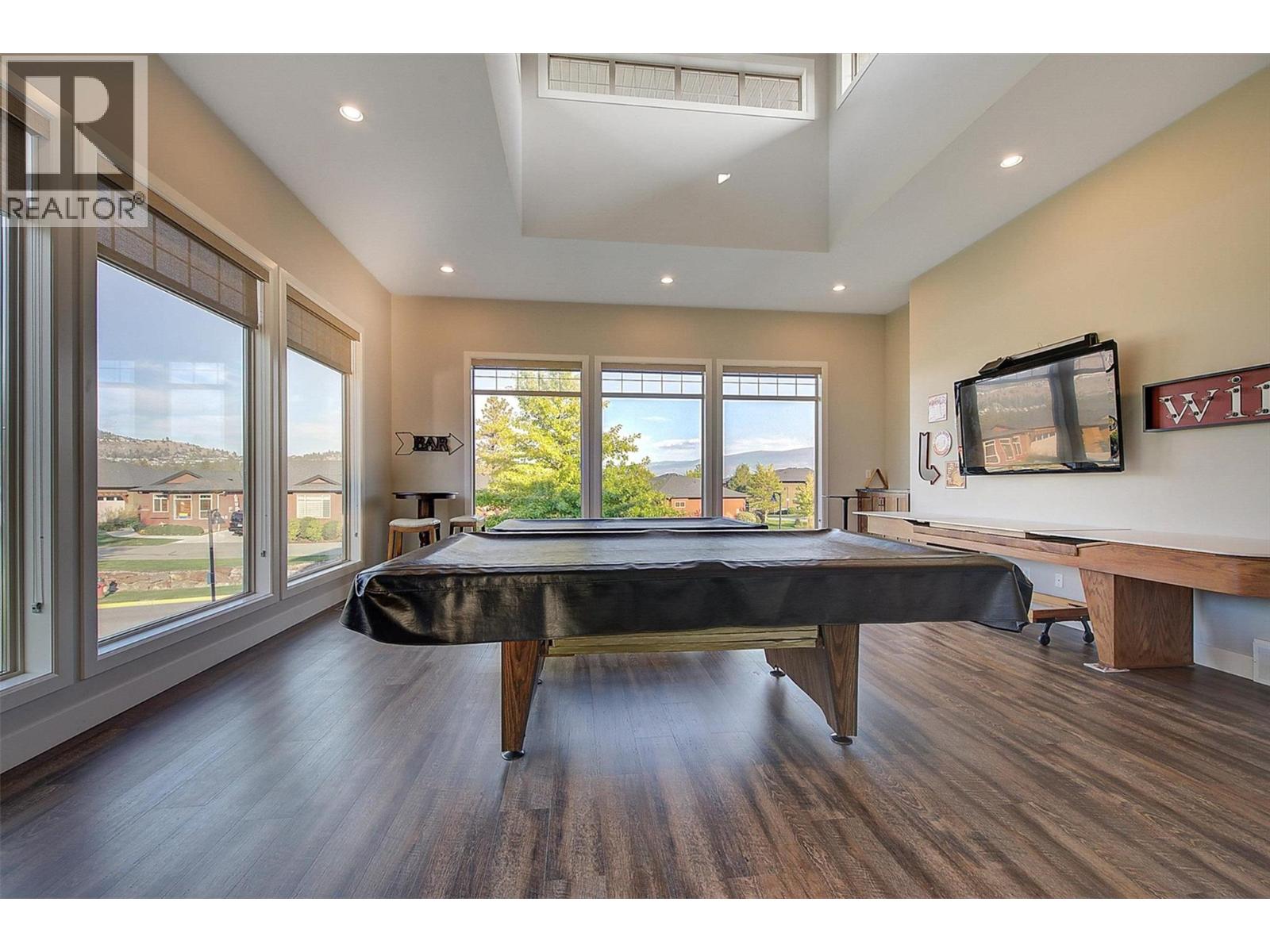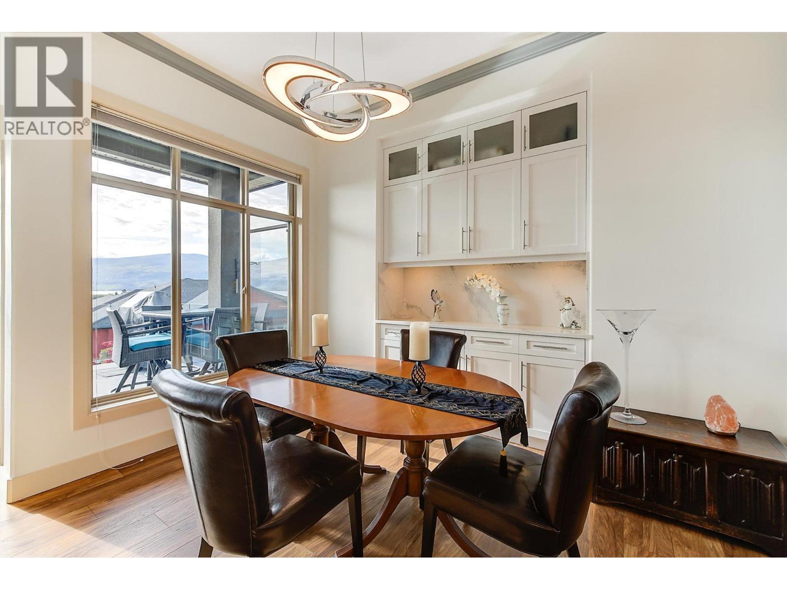 Welcome to this beautifully updated semi-detached townhome in the highly desirable Sonoma Pines community! Step into the stylish, modern custom kitchen featuring white shaker-style soft-close cabinets extended to the ceiling, sleek quartz countertops, stainless steel appliances, a convenient coffee station, a wave-activated Moen kitchen faucet, and updated lighting. The open-concept living room boasts newer laminate flooring, a cozy gas fireplace, and stunning lake views. Adjacent, the dining room includes custom built-in cabinetry and opens onto a spacious deck with topless glass railings—perfect for soaking in the panoramic lake views. The deck also comes equipped with gas hookups for BBQ. The bright and inviting primary bedroom features lake views, newer carpet, a walk-in closet, and a 4-piece ensuite with Corian counters. A second bedroom, full bathroom, and convenient laundry area complete the main floor layout. Downstairs, you'll find a spacious family room with an electric fireplace, a flex room ideal for a home office or gym, a third bedroom, another full bathroom, a large storage room, and access to a lower covered patio with hot tub hookup—perfect for year-round enjoyment. Additional highlights include a double garage, flat driveway, and low-maintenance living in a fantastic location close to golf, shopping, and Okanagan Lake. Sonoma Pines amenities include a clubhouse with gym, library, billiard room, and sizeable social room with a full kitchen available to rent. Secure RV parking is also available on-site. This is the perfect blend of comfort, style, and breathtaking views—don’t miss it. NO PTT, PREPAID LEASE. (id:6770)