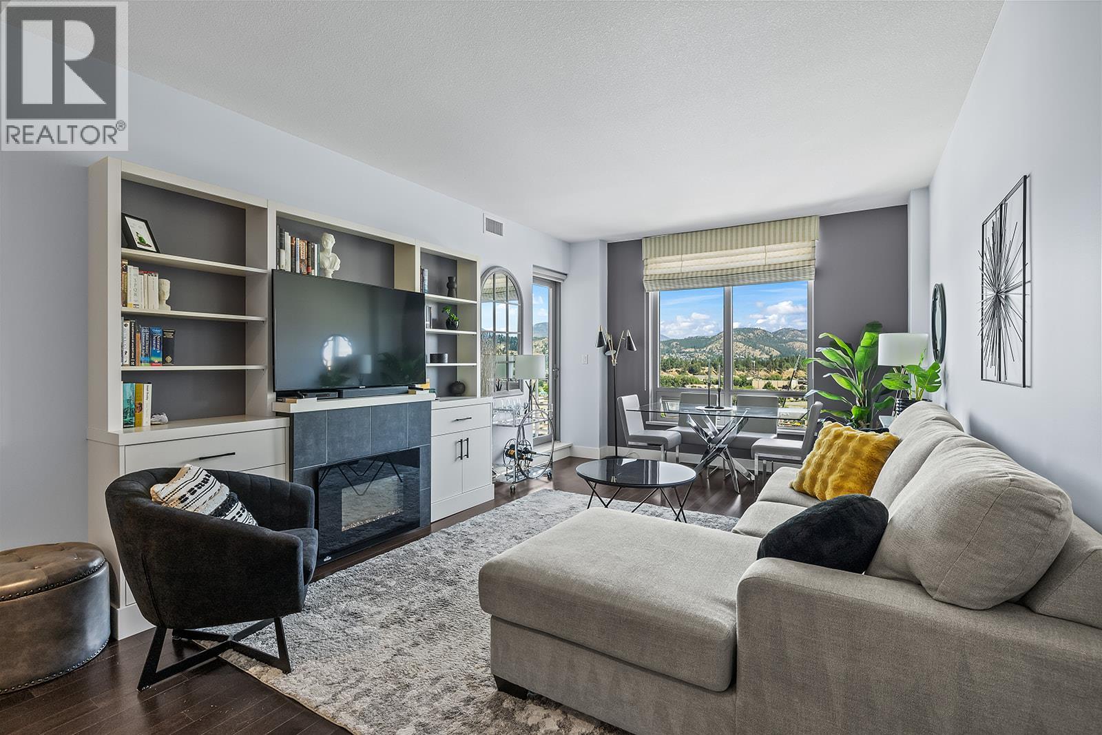 Experience contemporary urban living at INvue with this stylish sub-penthouse condo. that comes with TWO underground parking stalls—a rare and highly desirable feature. Updated with fresh paint, new carpets, blinds, modern faucets, extra shelves and cabinetry in the living room, and a new electric fireplace, enhancing both style and functionality. Located in a well-maintained concrete tower, this 2-bedroom, 2-bathroom unit offers 1,011 sq. ft. of split-layout space—perfect for young families, first-time buyers, or empty nesters. Bright & airy with floor-to-ceiling windows, it features dual balconies with mountain, city, and Okanagan Lake views in the distance ideal for relaxing or entertaining. Quick occupancy is possible, and there is an optional high-end furniture package available. The open-concept living area now includes additional storage and a cozy electric fireplace. The primary bedroom has dual closets and a luxurious five-piece ensuite with double vanities. Building amenities include a 15th-floor rooftop pool, hot tub, fitness center, dog wash, and a residents lounge with pool table and games. In-suite laundry and pet-friendly policies add convenience. Its prime location offers easy access to groceries, retail stores, restaurants, Orchard Plaza, and Orchard Park Shopping Centre. This condo combines modern updates, excellent amenities, rare parking, and a coveted location—an ideal Kelowna home. (id:6770)