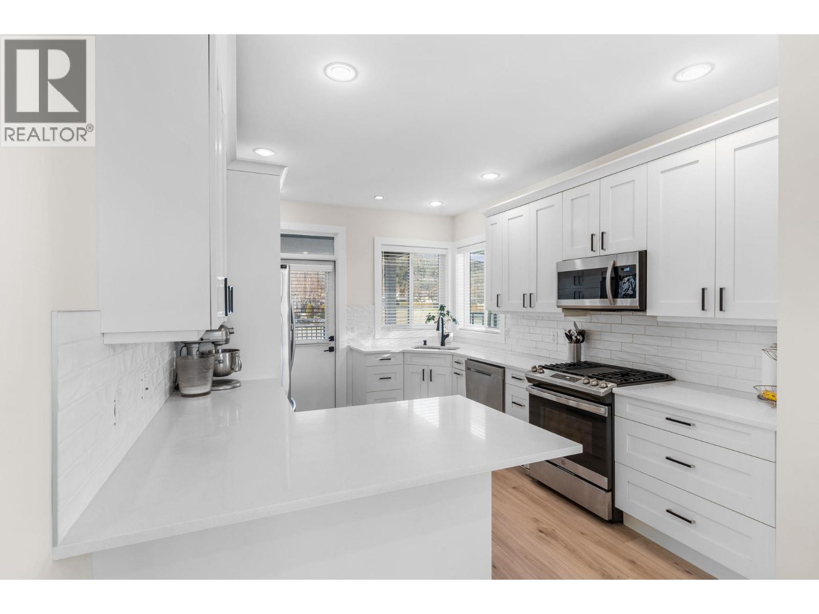 Exceptional North Glenmore Home with Legal Suite & Strong Income Potential. Located in a quiet, family-oriented North Glenmore, this impressive custom-built home offers modern design, functional living, and a fully self-contained 2-BR legal suite—an ideal mortgage helper that has never been vacant. Thoughtfully designed with private deck, the suite is highly attractive to tenants and investors alike. Main flr showcases contemporary finishes throughout, including quartz countertops and a stunning gourmet kitchen equipped with a gas range—perfect for entertaining. The open-concept living and dining area is anchored by a sleek linear electric fireplace, creating a warm yet modern atmosphere. Step outside to a deck off the kitchen with stairs leading to a low-maintenance, fully fenced and landscaped backyard. This home offers a well-appointed primary BR with walk-in closet and ensuite, plus 2 more bedrooms and a full bath—ideal for growing families. On the lower level, a flexible BR near the main ent can easily function as a home ofc, studio, or guest space. Additional highlights include a double garage, EV charging, ample parking for both guests and tenants. The location is second to none—close to UBCO, YLW Airport, transit, shopping, and just 10-mins to downtown and beaches. A rare opportunity to own a stylish, income-producing home in Glenmore. All measurements from iGuide. Buyers to verify if important. (id:6770)