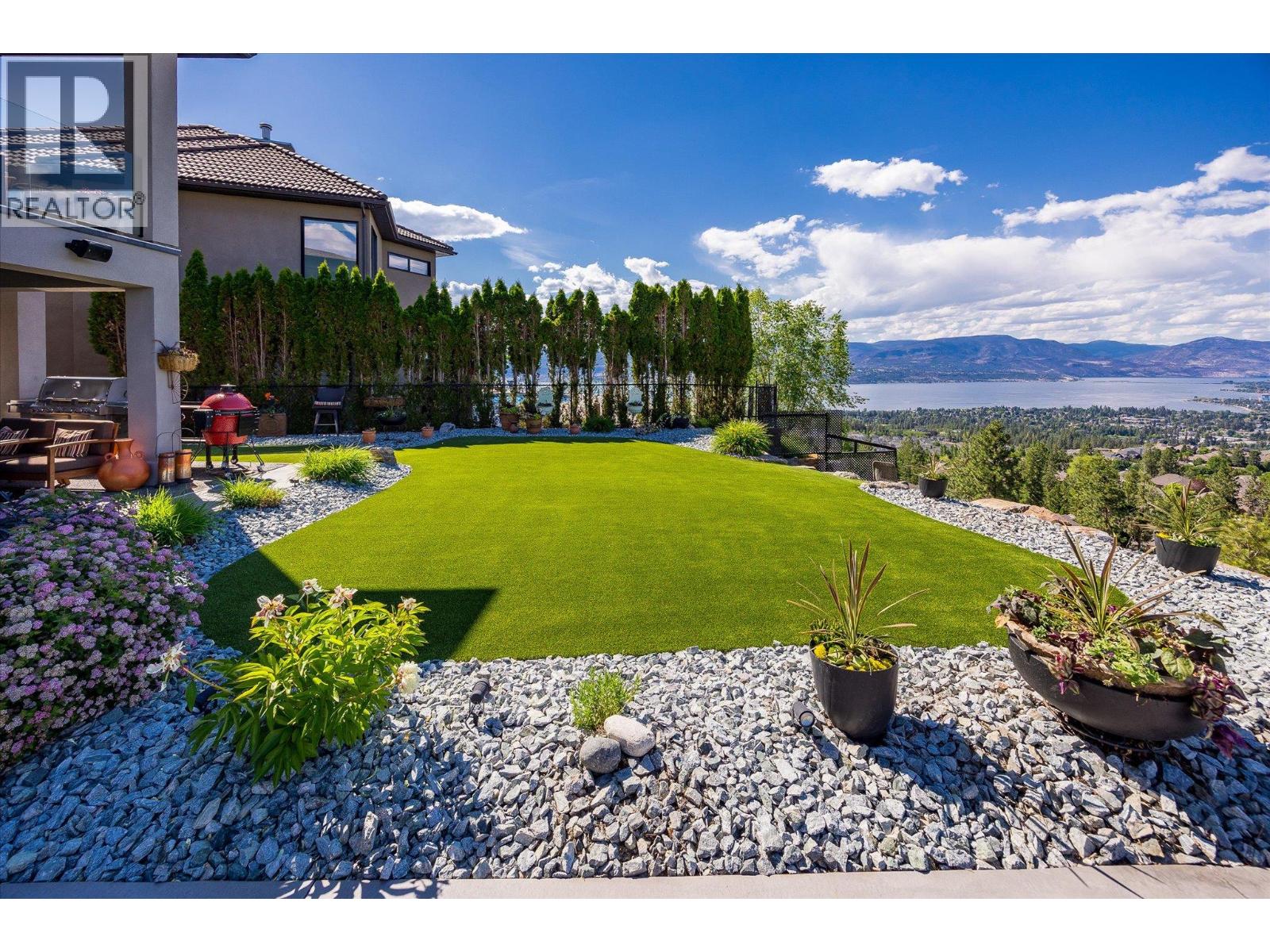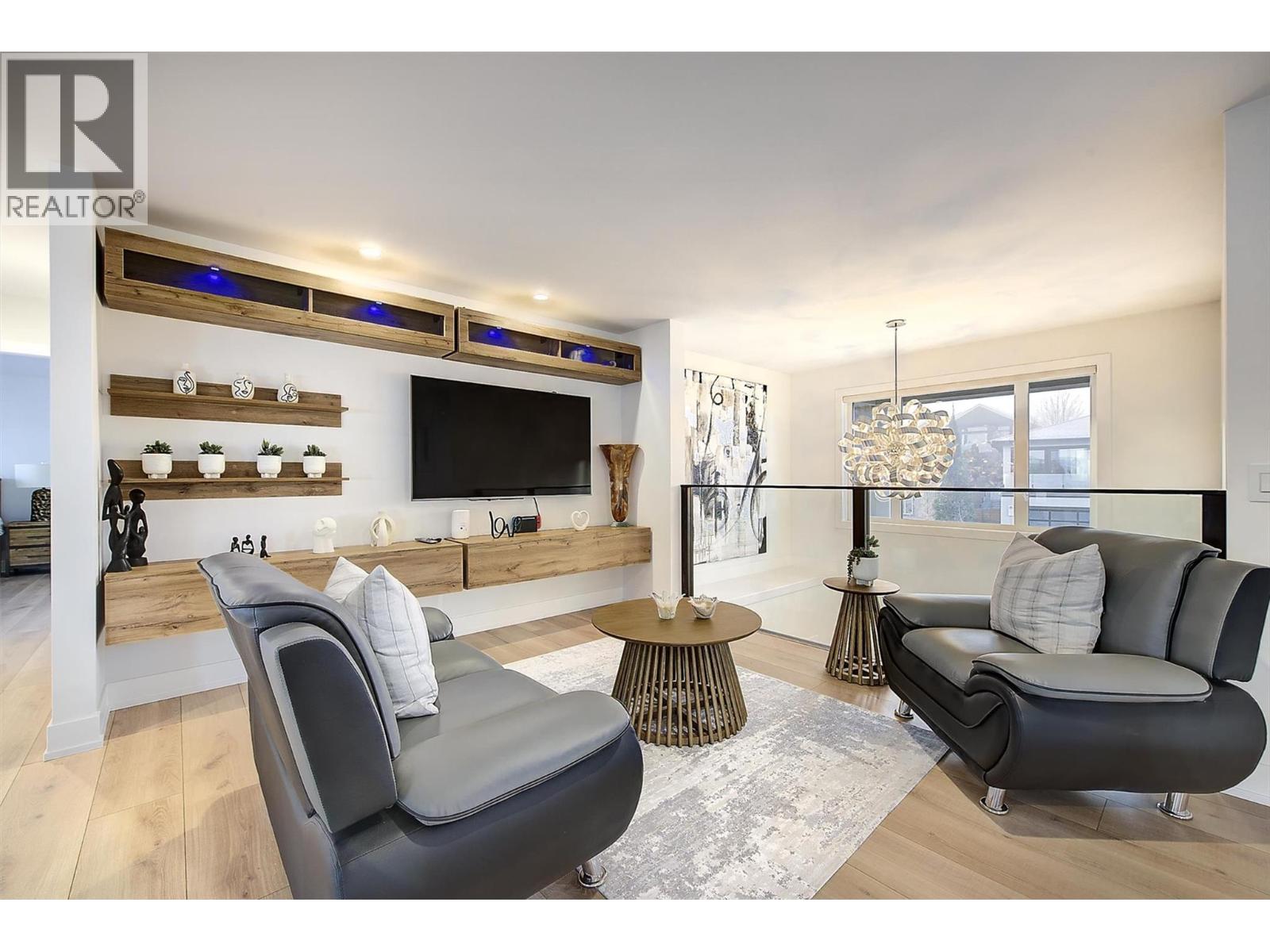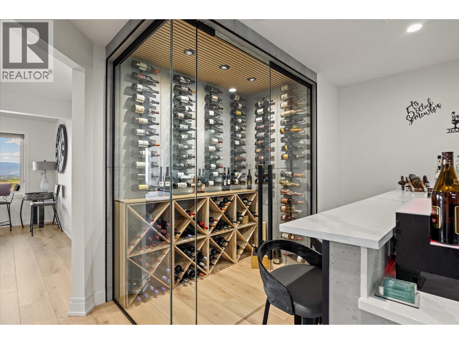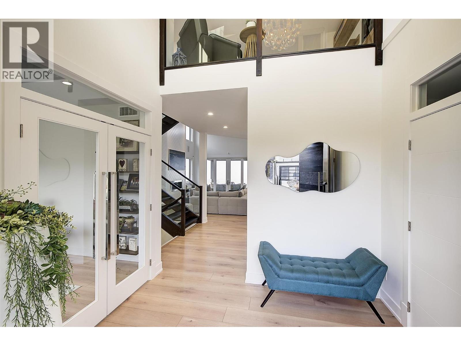 Step into elevated living in this beautifully re-imagined 5-bed + den, 4-bath residence, where luxury, comfort, and panoramic views converge. From the moment you arrive, the grand entry and soaring vaulted ceilings set the tone for a home designed to impress, while the chef’s kitchen, featuring premium appliances and a butler’s pantry, anchors the heart of the main level with style and function. Expansive windows frame breathtaking 180-degree vistas across the city of Kelowna and Okanagan Lake, creating an extraordinary backdrop for everyday living and entertaining. The primary retreat, privately positioned on the main floor, offers a serene escape complete with stunning lake views and a spa-inspired ensuite. Two additional spacious bedrooms upstairs offer comfort and privacy for family and guests. The walk-out lower level is an entertainer’s haven, thoughtfully designed with a refined whiskey tasting room, temperature-controlled wine cellar, sleek bar, generous recreation space, and a state-of-the-art theatre. Step outside to the private backyard and pool area, where the views become more spectacular and unforgettable. Completing this exceptional home are four garage spaces, including a double and tandem garage, with EV charging and abundant room for a boat or RV, along with extensive additional parking for guests. Every element of this residence blends elegance with practicality, offering an unparalleled lifestyle opportunity in one of Kelowna’s most desirable settings. (id:6770)