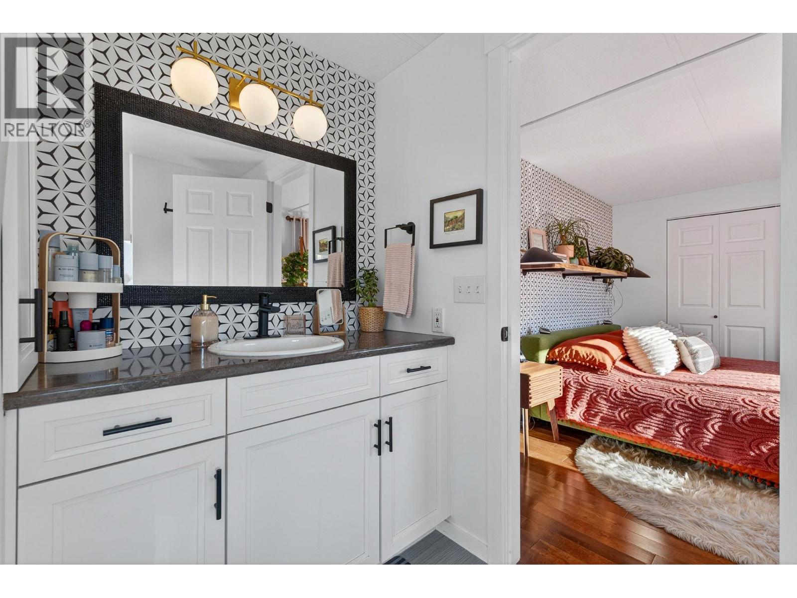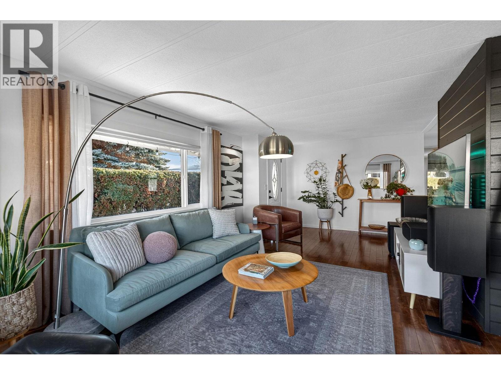 55+ Community. This one is a cream puff. Top quality renovations with a designer's touch. Nothing left to do but move in! Spacious with 3 nice sized bedrooms, 2 full bathrooms, large living room, dining room with enough space for friends and family. Beautiful yard with mature plantings, garden, partially fenced. Views of farmland, mountains and lake. Private yard for enjoying the Okanagan Sunshine and long warm seasons. Flooring, kitchen, bathrooms, painting, lights, appliances....all fairly new! Covered parking to protect the paint! and additional parking on the driveway for quests. Garden shed for the tools. No financing available. Cash buyers in this park! (id:6770)