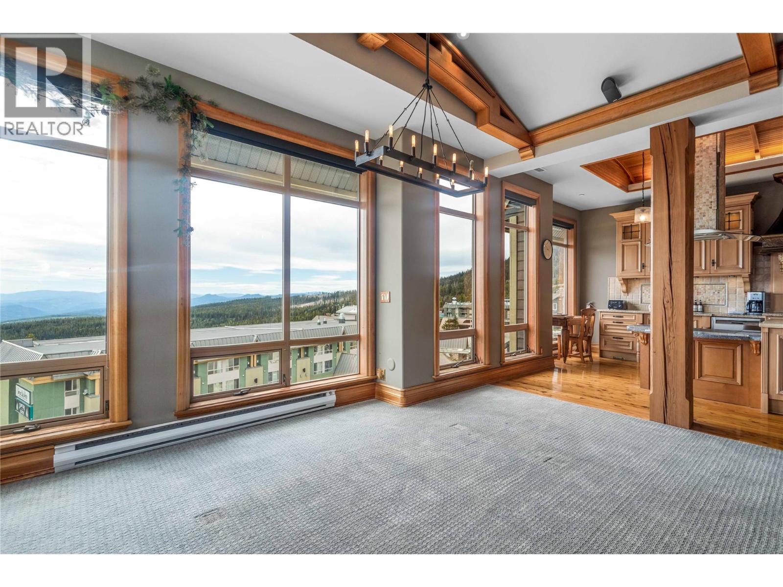 Located in the absolute best position at Big White Ski Resort, this exceptional top-floor, corner residence at Chateau Big White offers a location and view that are unmatched and truly unrivaled. Situated directly above the Plaza unload ramp in the heart of the Village, the condo enjoys spectacular panoramic views of the Monashee Mountains, ski runs, Main Village, and the resort’s iconic fireworks—views that cannot be duplicated anywhere else. Purpose-built for the original owner/developer, this 3,500+ sq ft residence is one of the largest condo units at Big White. Floor-to-ceiling windows flood the home with light and showcase the resort’s most dynamic vantage point. The chef’s kitchen features a Wolf griddle, 48” Ultraline/Viking gas range with double ovens, and a Sub-Zero refrigerator. With four bedrooms and four bathrooms, including an oversized primary suite with a massive ensuite and walk-in closet, the layout comfortably accommodates family and guests. Two wood-burning fireplaces create a warm alpine atmosphere, and this is the only pet-permitted unit in the building. Included is 1,180 sq ft of strata lot in Parkade 1, currently configured as three parking stalls and 665 sq ft of storage, with flexibility for alternative uses. Offering true ski-in/ski-out access and immediate Village amenities, this is a rare opportunity to own the premier condo at Big White. (id:6770)