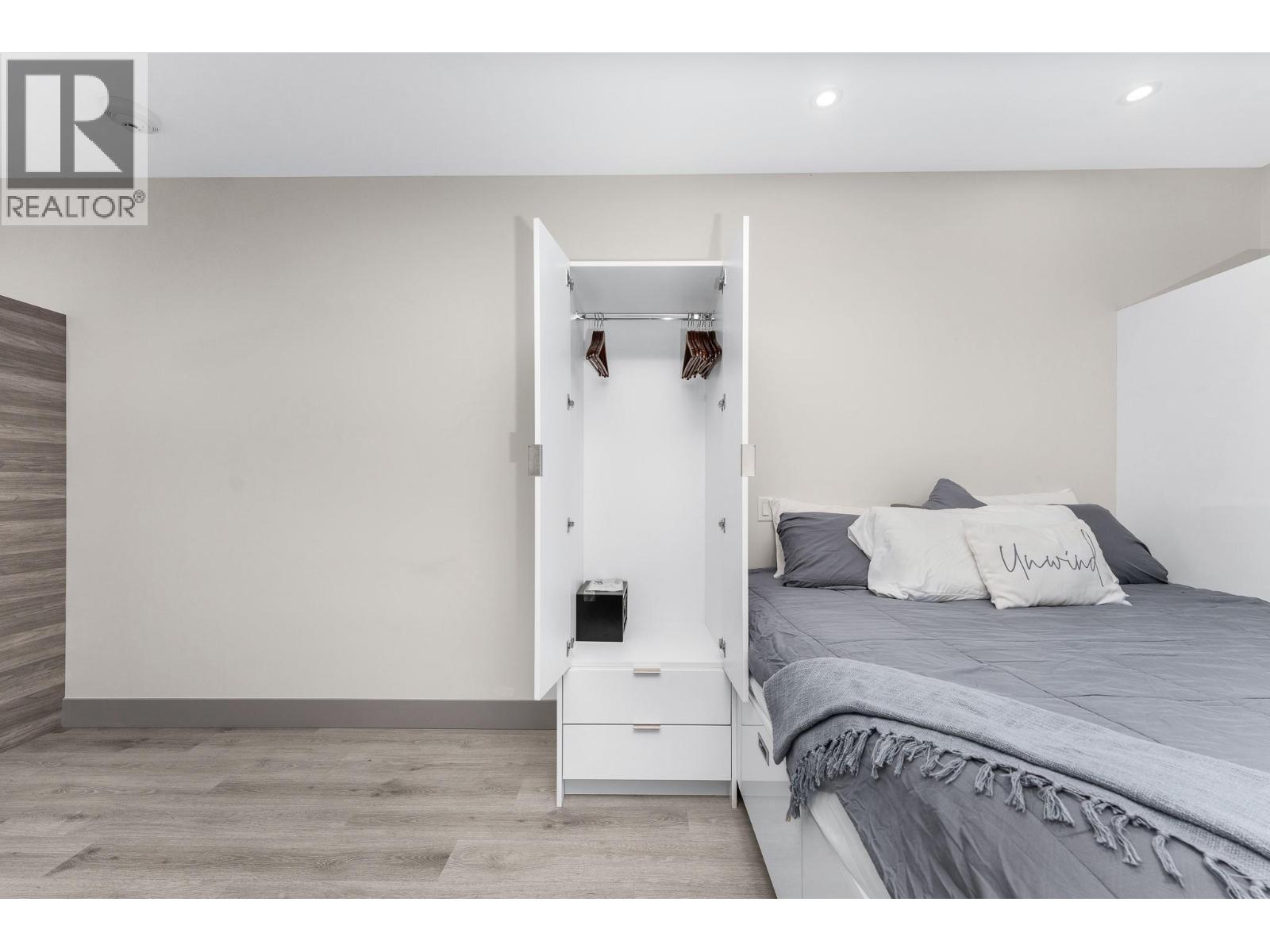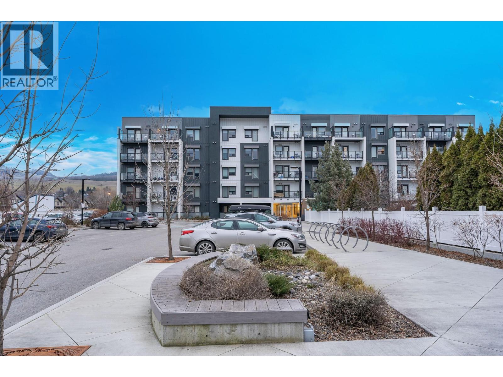 A pied-a-terre, a get-away location for summer and winter fun or an early toe-hold in the exciting world of home ownership -- this affordable and incredibly well designed micro unit is a great consideration. Built in 2021 just across the road from a well-kept public beach (Kin Beach) this development features a pool, gym, pickle-ball courts, community BBQ and EV charging stations. Inside, the Unit comes with everything you need to live - bedding, dining and kitchenware etc. Practical vinyl plank flooring, an awesome King size bed and cleverly designed storage. You have in-suite laundry with the latest in small space convenience - a washer-dryer combo designed to wash and dry clothes in the same drum! And then for bigger loads there is a coin operated laundry unit on the 3rd floor. The only thing inside this unit doesn't have is a sofa because the tenant said the original wasn't comfortable! So now all you need to do is invest in your own comfortable sofa and you have a truly compact and functional home! In addition, there is a 6'x4'x6' locker conveniently located on the same floor. Outside you have north-west facing massive deck (14'x 4'6"") with beautiful lake views for those summer evenings. And … the strata fees are reasonable at $282 per month. Oh and one more important thing -- unlike nearly every condo in Vernon, the Vita allows short term rentals -- see supplement for details. (id:6770)