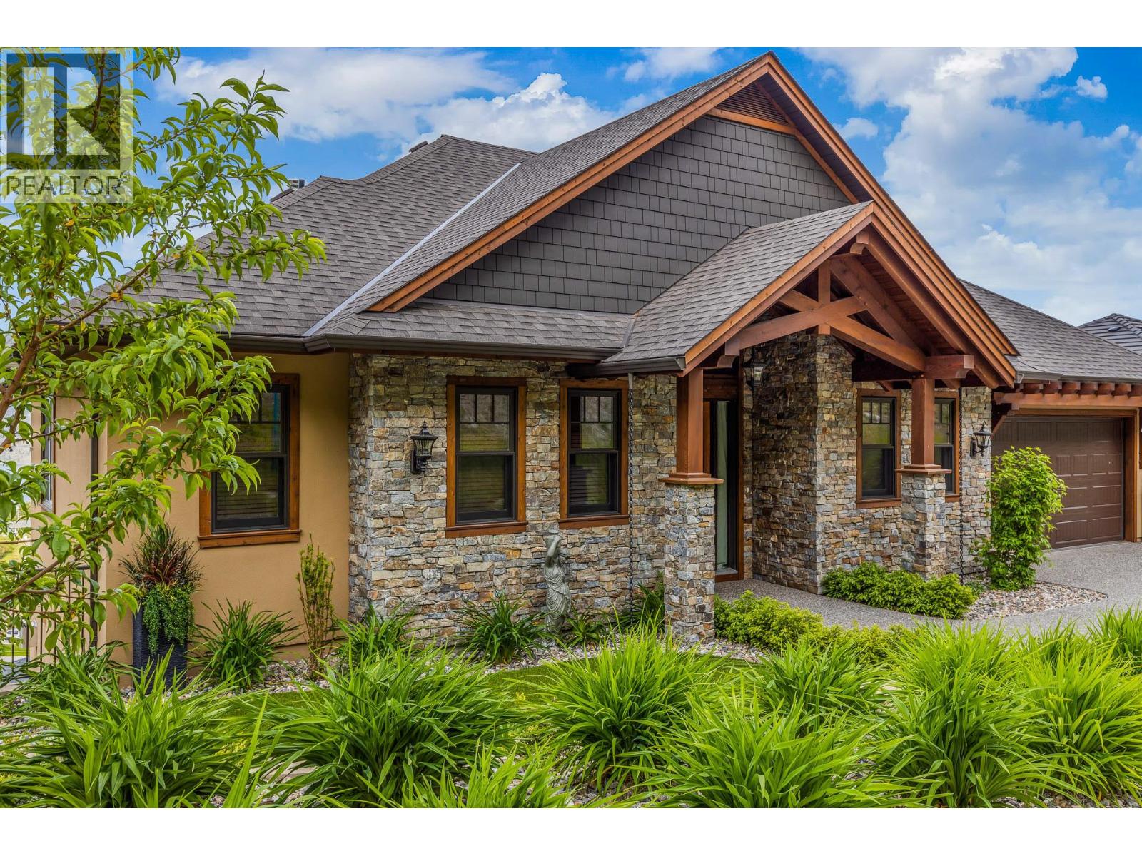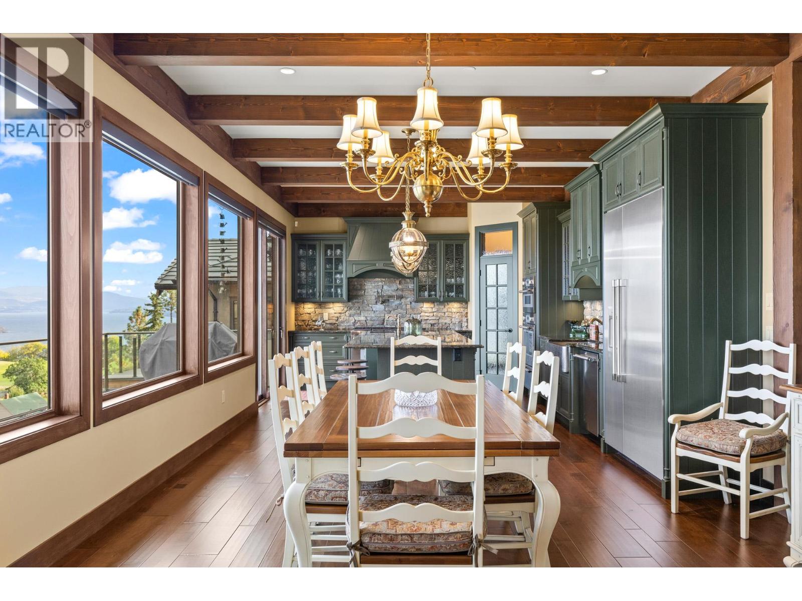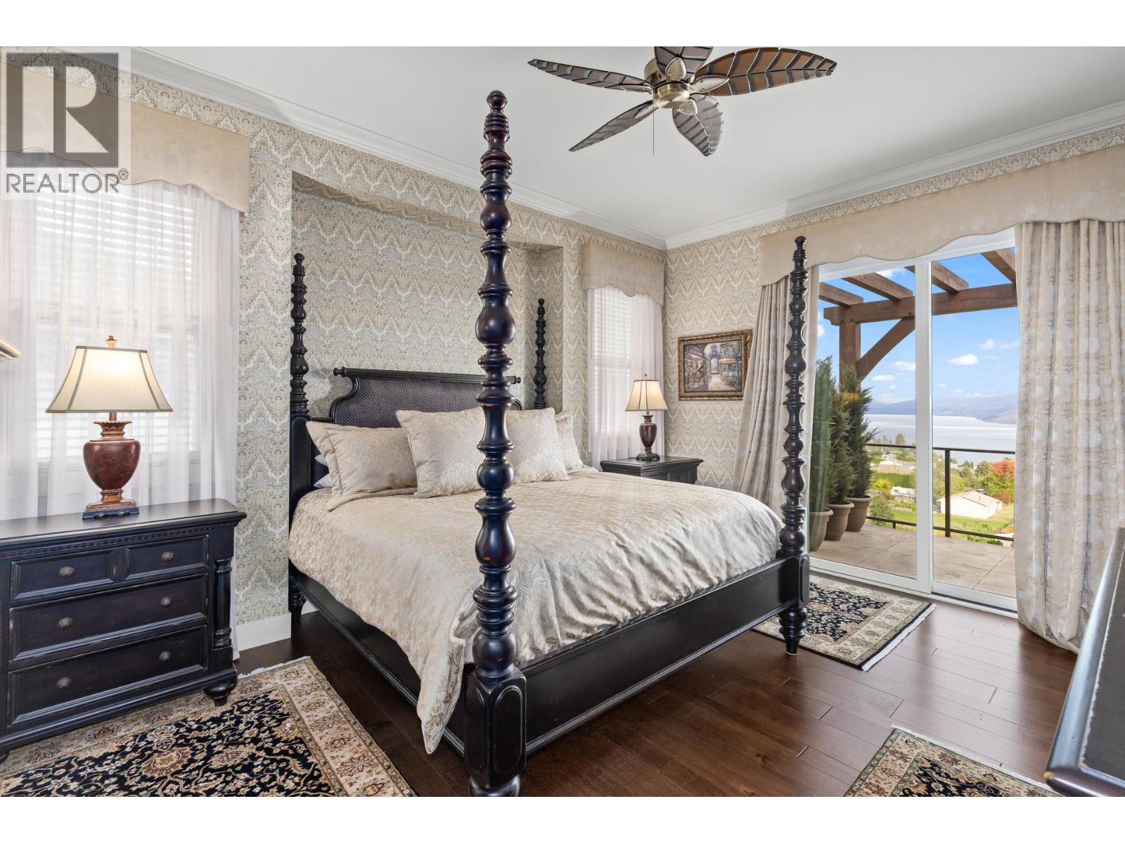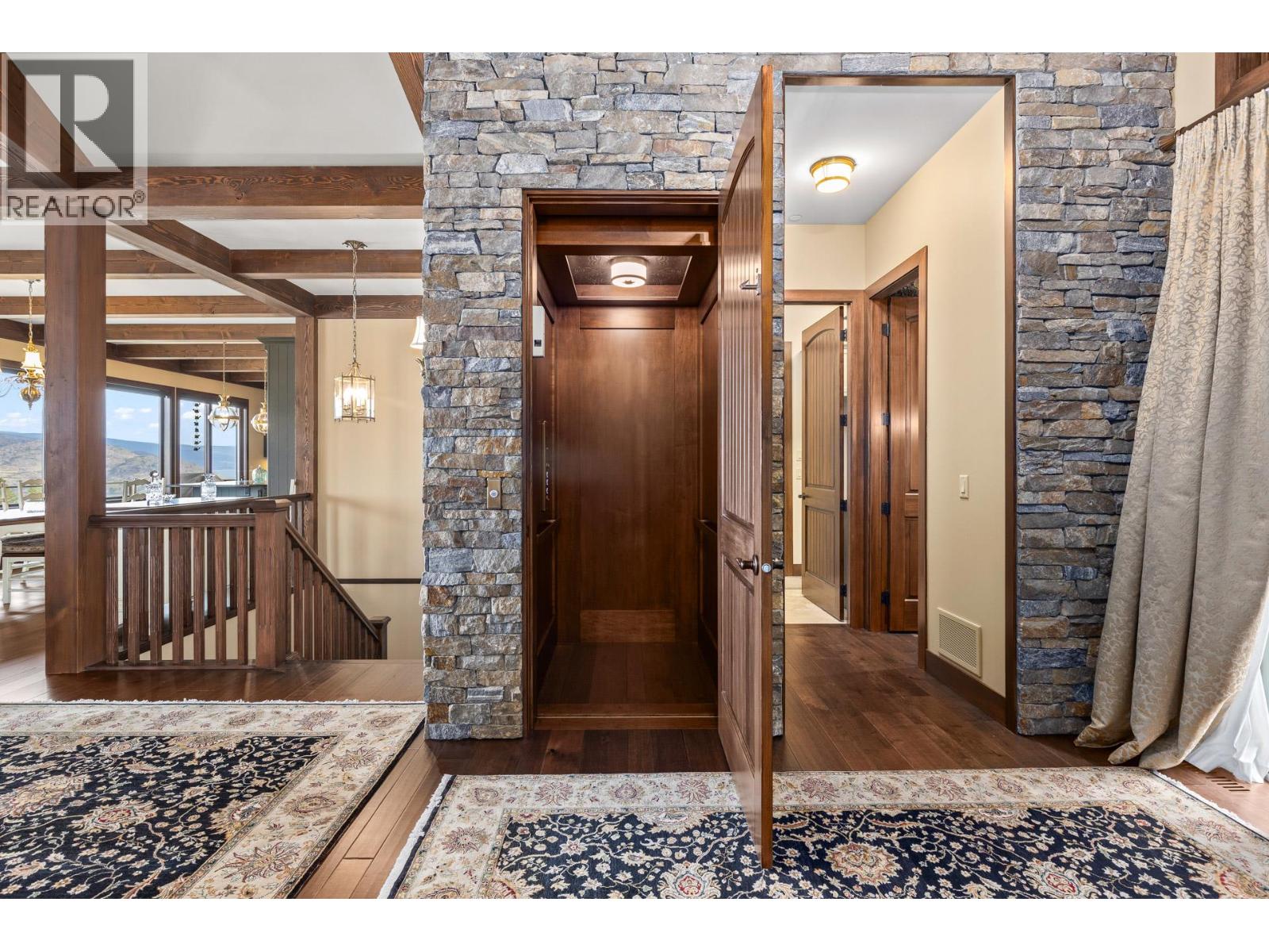 TODAYS pricing!! Over the top build quality with class, rich decor, soaring cedar beam ceilings and lavish finishings and elevator! Extremely rare and unobstructed views from Summerland to Kelowna on a peaceful cul de sac street. At over 4000 sq. ft. this home shows skilled craftsmanship and quality design. Maple hardwood floors, Kettle Valley Granite feature walls up and down and luxuriously decorated throughout. Enter into the main floor through an impressive 8 ft. solid hardwood door and be welcomed by the stunning lake views from the wall of wood windows in every room. Soaring 15 ft vaulted ceilings, Gourmet custom kitchen off the dining room is complete with never used and WIFI controlled S/S Thermador appliance package including gas range with pot filler, granite counters, corner pantry, soft close cabinets and numerous windows for picturesque mountain and lake views. Ease of access from the living room & kitchen to the massive concrete stamped deck with natural gas BBQ hookups. Primary suite and second bedroom/office on main floor, 5-piece ensuite and spacious walk-in closet. Take the elevator downstairs to be greeted with unobstructed views, massive deck, another primary bedroom suite, full kitchen/wet bar (minus range), 2nd laundry set, high ceilings, spacious recreation room with stone wall huge gas fireplace. Canada's best waterfront strip and shops/dining is minutes away and with suite, there's room for the whole family. Suspended slab, 24"" concrete build quality. (id:6770)
