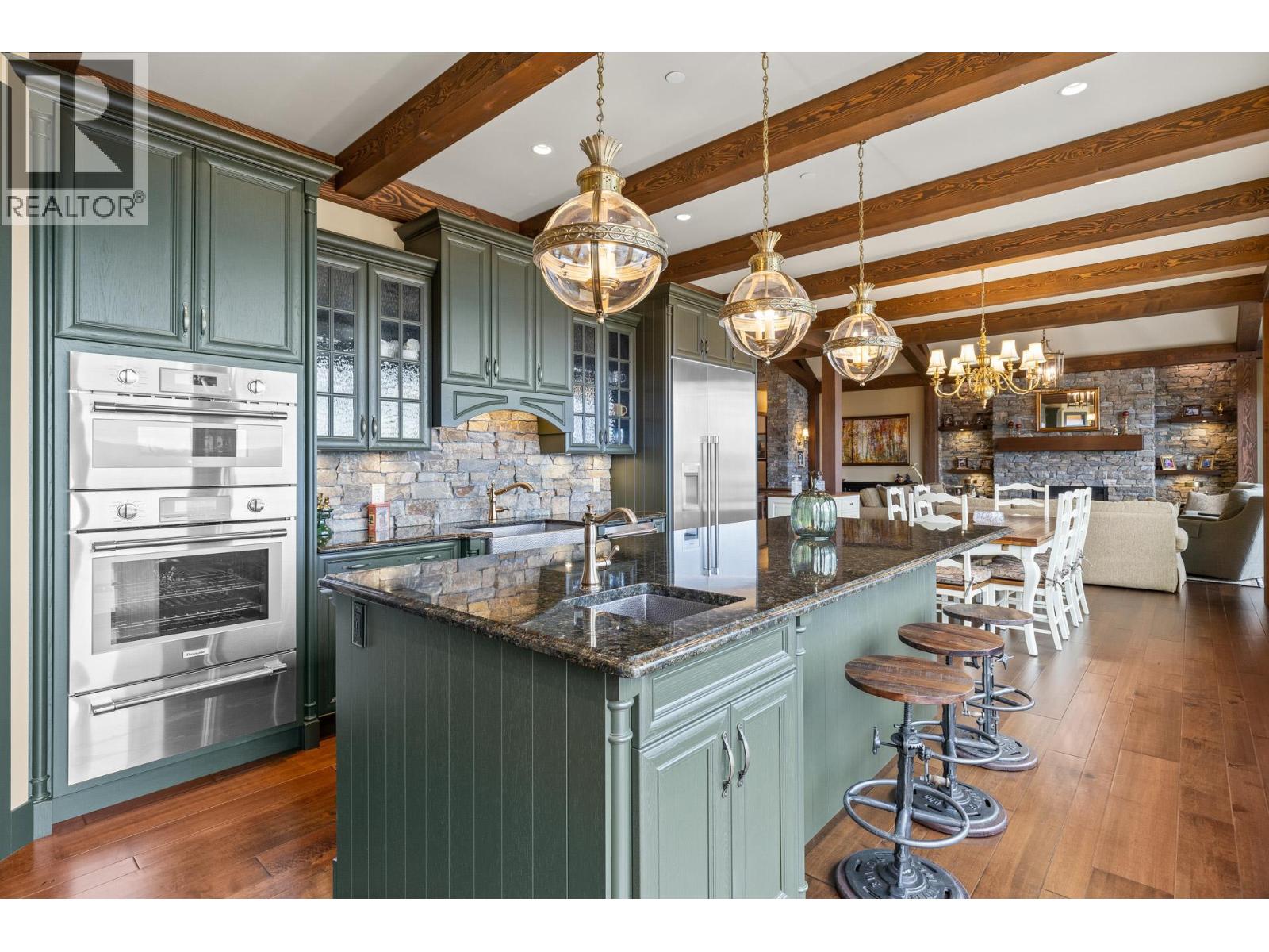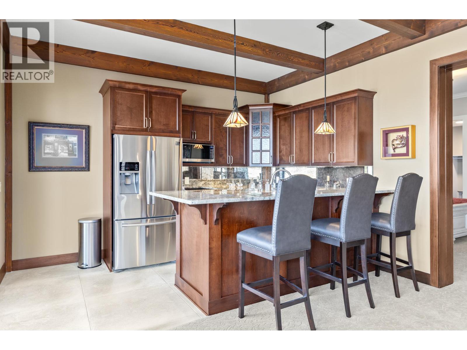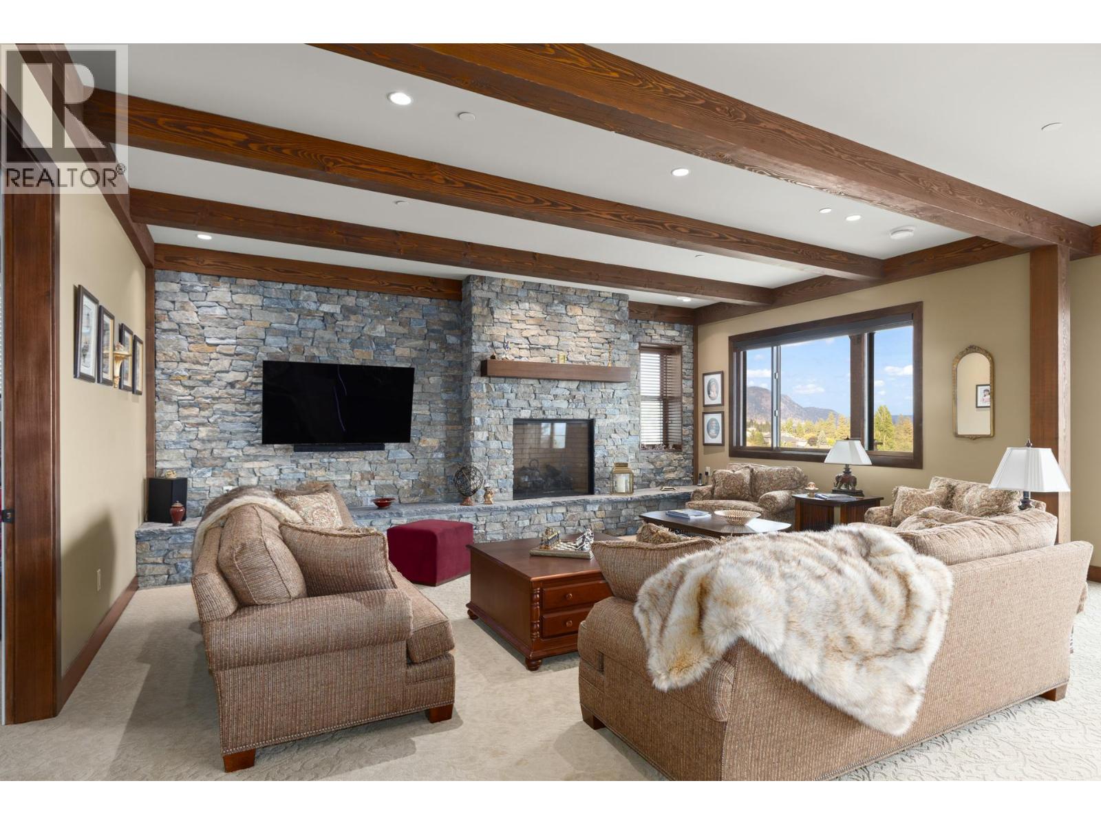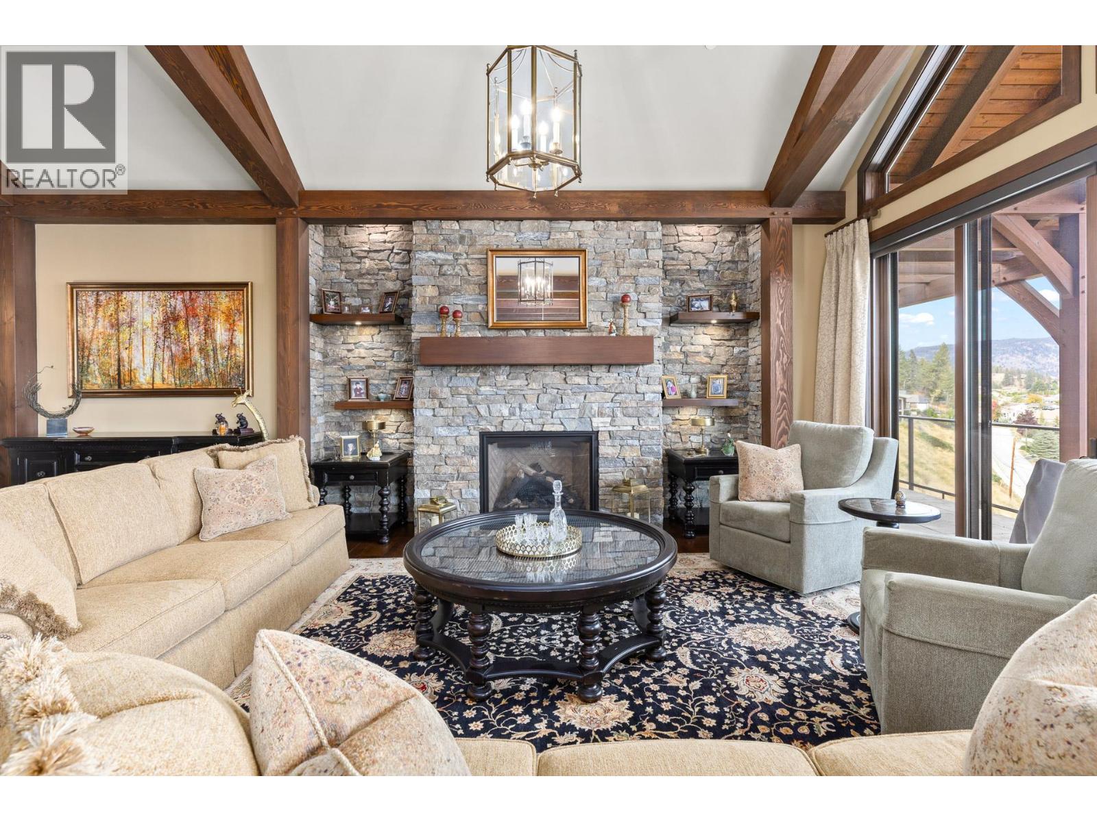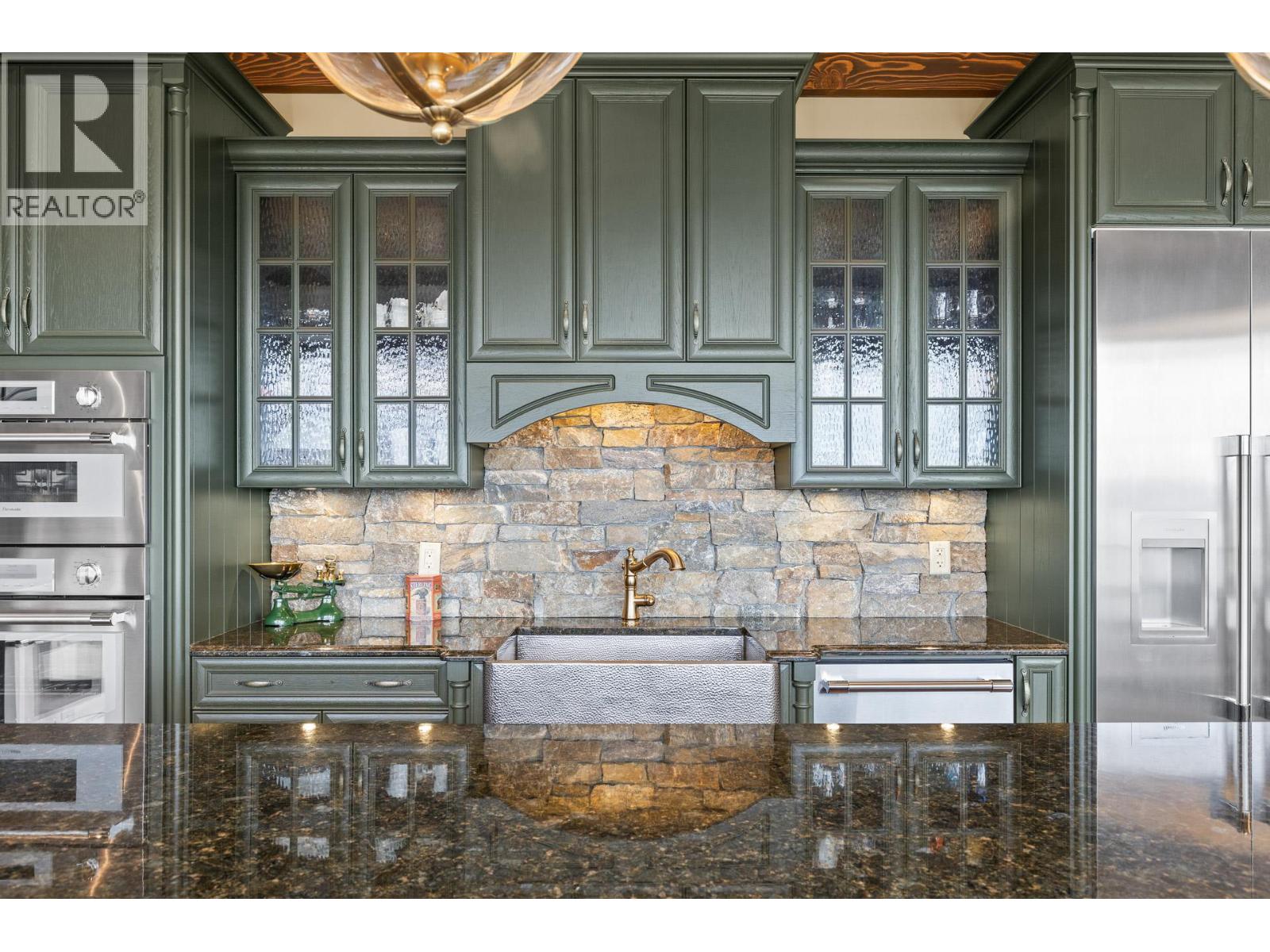 TODAYS pricing!! Over the top build quality with class, rich decor, soaring cedar beam ceilings and lavish finishings and elevator! Extremely rare and unobstructed views from Summerland to Kelowna on a peaceful cul de sac street. At over 4000 sq. ft. this home shows skilled craftsmanship and quality design. Maple hardwood floors, Kettle Valley Granite feature walls up and down and luxuriously decorated throughout. Enter into the main floor through an impressive 8 ft. solid hardwood door and be welcomed by the stunning lake views from the wall of wood windows in every room. Soaring 15 ft vaulted ceilings, Gourmet custom kitchen off the dining room is complete with never used and WIFI controlled S/S Thermador appliance package including gas range with pot filler, granite counters, corner pantry, soft close cabinets and numerous windows for picturesque mountain and lake views. Ease of access from the living room & kitchen to the massive concrete stamped deck with natural gas BBQ hookups. Primary suite and second bedroom/office on main floor, 5-piece ensuite and spacious walk-in closet. Take the elevator downstairs to be greeted with unobstructed views, massive deck, another primary bedroom suite, full kitchen/wet bar (minus range), 2nd laundry set, high ceilings, spacious recreation room with stone wall huge gas fireplace. Canada's best waterfront strip and shops/dining is minutes away and with suite, there's room for the whole family. Suspended slab, 24"" concrete build quality. (id:6770)