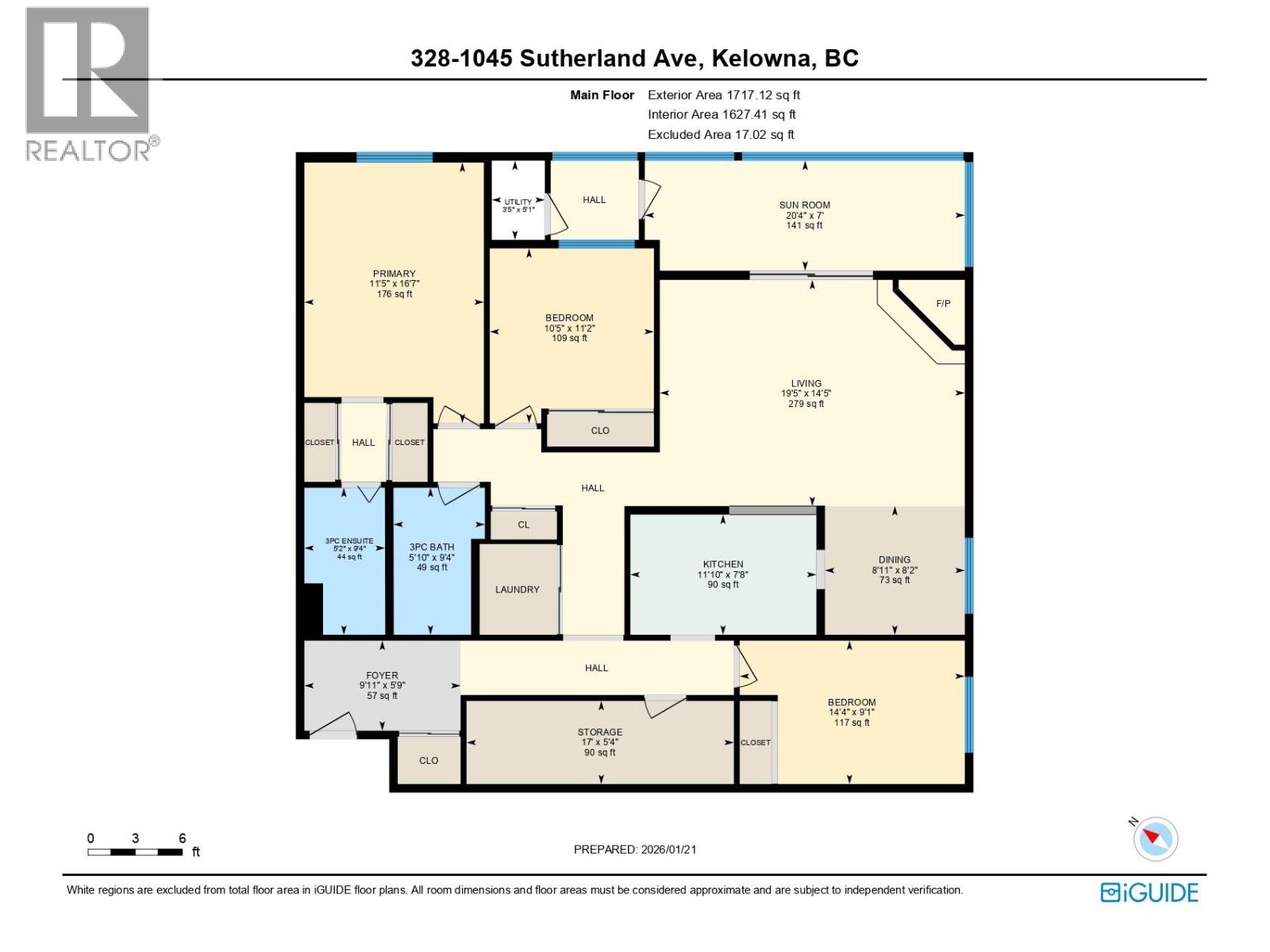 Welcome to The Wedgewood – Premier 55+ Living. Enjoy peaceful, top-floor living in this beautifully refreshed 3-bedroom, 2-bathroom corner unit at The Wedgewood. Recently fully repainted, this bright and spacious home features an ideal southwest exposure with an abundance of windows that flood the space with natural light. Overlooking a serene greenbelt and Mill Creek, you’ll love watching ducks glide by from the comfort of your own home. The thoughtfully designed floor plan offers generous living and dining areas, highlighted by a cozy gas fireplace. The kitchen features classic oak cabinetry and ample storage, while a skylight in the entrance adds to the home’s bright and airy feel. One of the standout features is the sunroom, an inviting space with exceptional natural light and tranquil creek views—ideal for morning coffee or quiet afternoons. The spacious primary bedroom includes double closets and a 3-piece ensuite with a stand-up shower. Two additional bedrooms provide flexibility for guests, hobbies, or a home office. Forced-air heating, one secure parking stall, and one storage locker complete the package. Residents of The Wedgewood enjoy an impressive array of amenities, including a fitness center, workshop, games room, car wash area, gardening spaces, and guest suites for visiting family and friends. The on-site dining room also offers optional meals three nights per week for a fee—adding convenience and a sense of community. (id:6770)