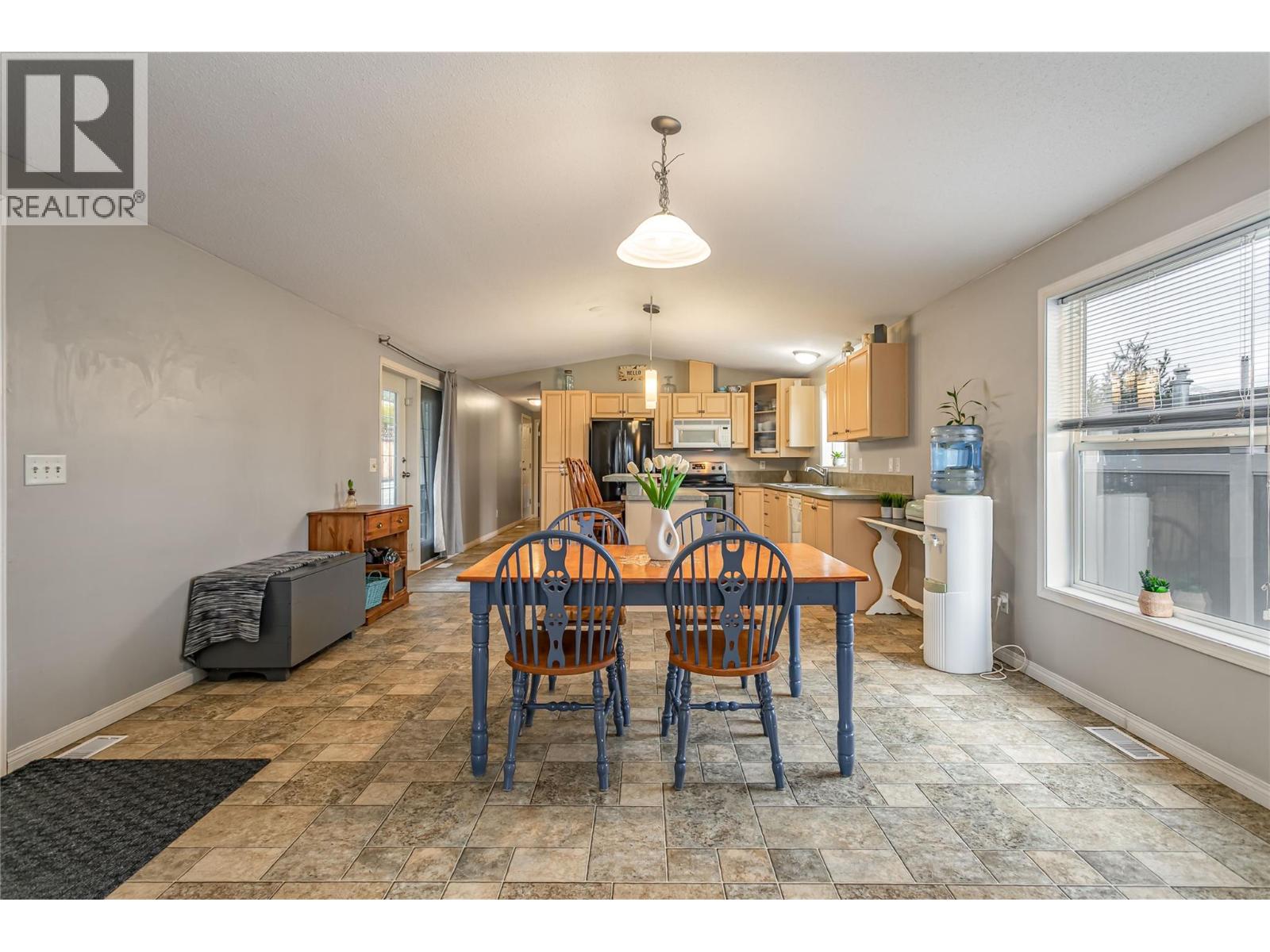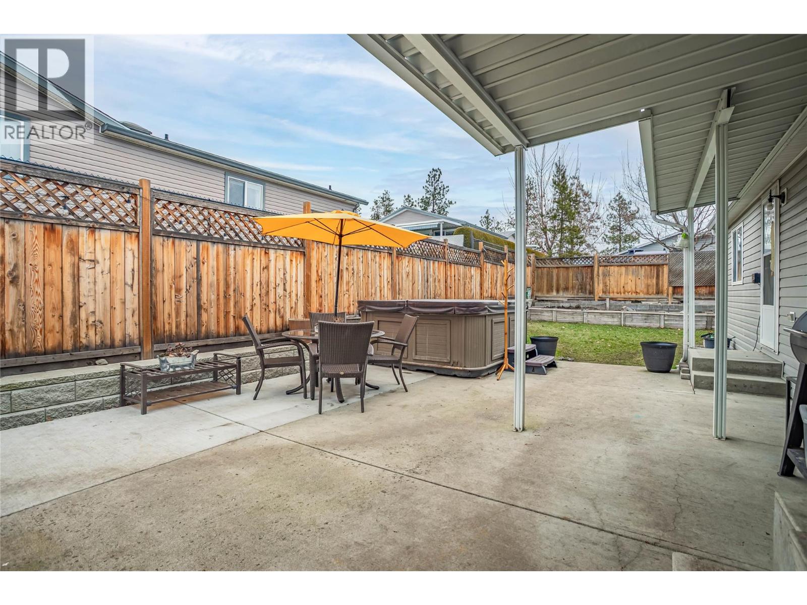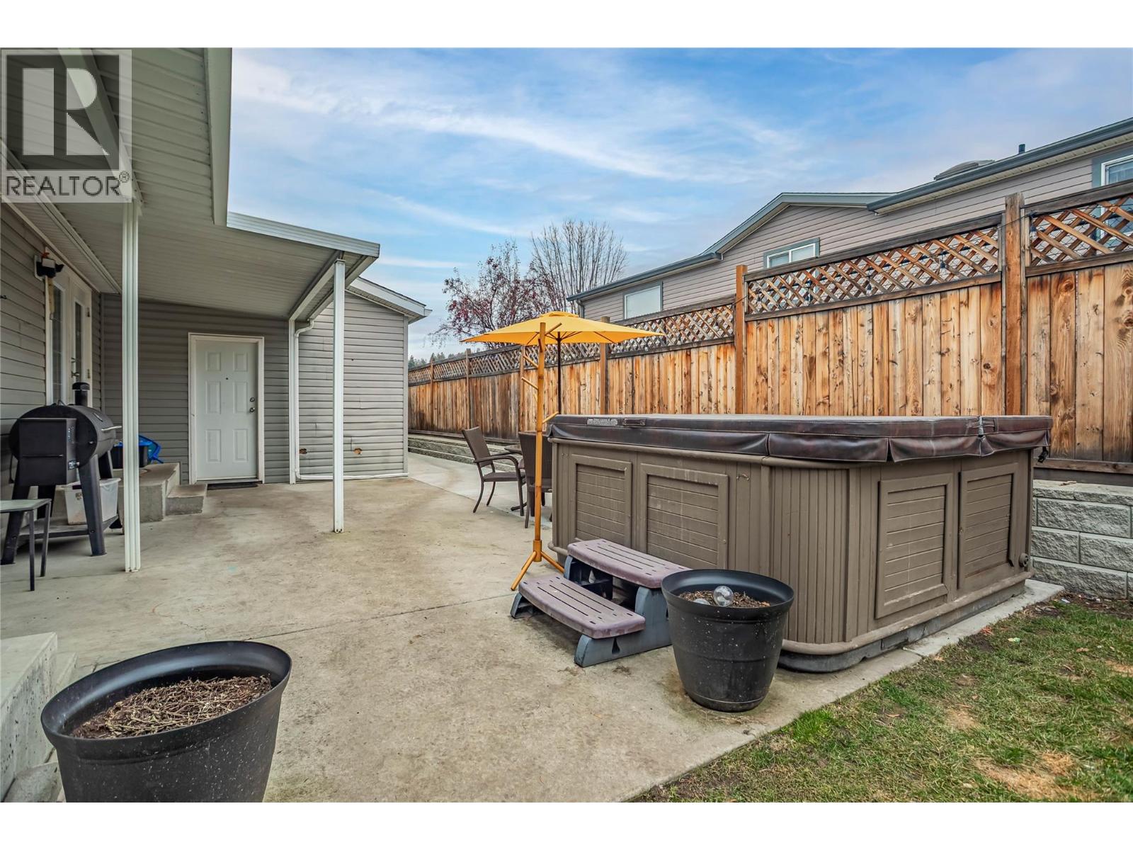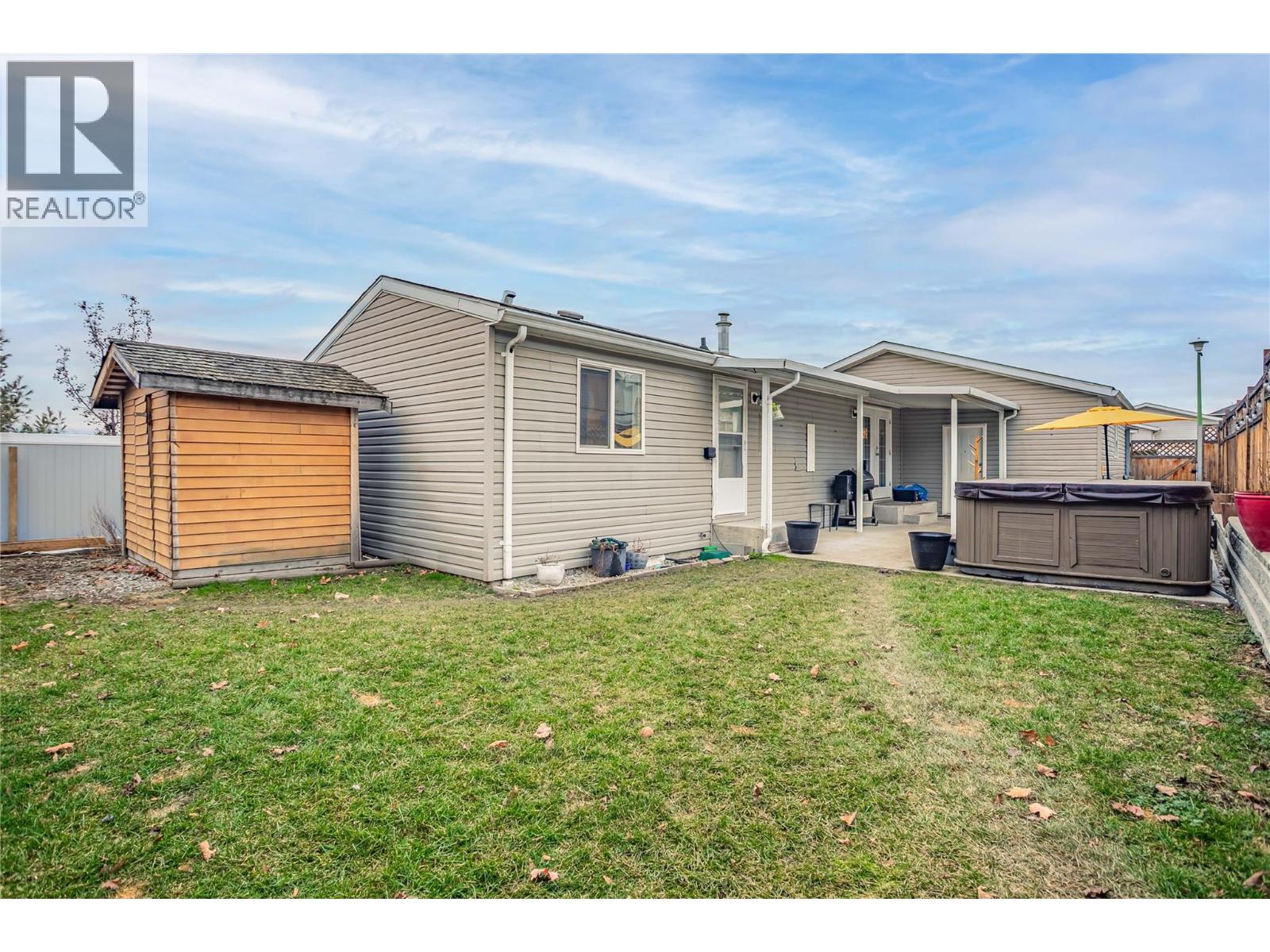 A fantastic opportunity for first-time buyers, investors or families looking to enter the market in the desirable College Heights location. This well-appointed home offers two bedrooms and one bathroom with an open-concept living area featuring a bay window that fills the space with natural light. The generous dining area flows seamlessly into the open-plan kitchen. Additional features include forced-air heating with central air conditioning, Underground irrigation, central vacuum rough-in, an all-in-one washer and dryer, vaulted 9-foot ceilings and a skylight in the bathroom. Step outside to a large, private patio and garden area, perfect for relaxing or entertaining. The fully fenced yard offers excellent privacy, with ample garden space for flowers, vegetables, or outdoor enjoyment, and includes a hot tub for year-round use. Parking is well accommodated with two driveway spaces plus a single-car garage. Enjoy no pet restrictions and a low monthly bare land strata fee of just $145. Conveniently tucked away near the UBC Okanagan, KGH airport and local amenities. Outside, this home offers beautiful mountain views and stunning Okanagan sunsets. A great alternative to renting, own your own home today! (id:6770)