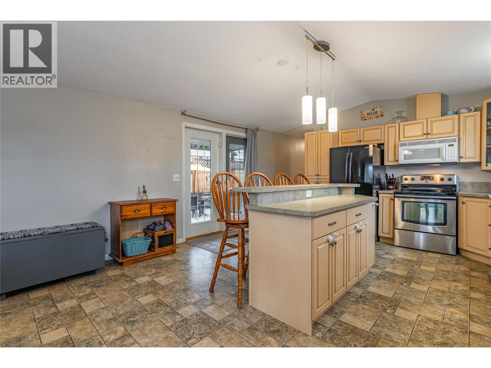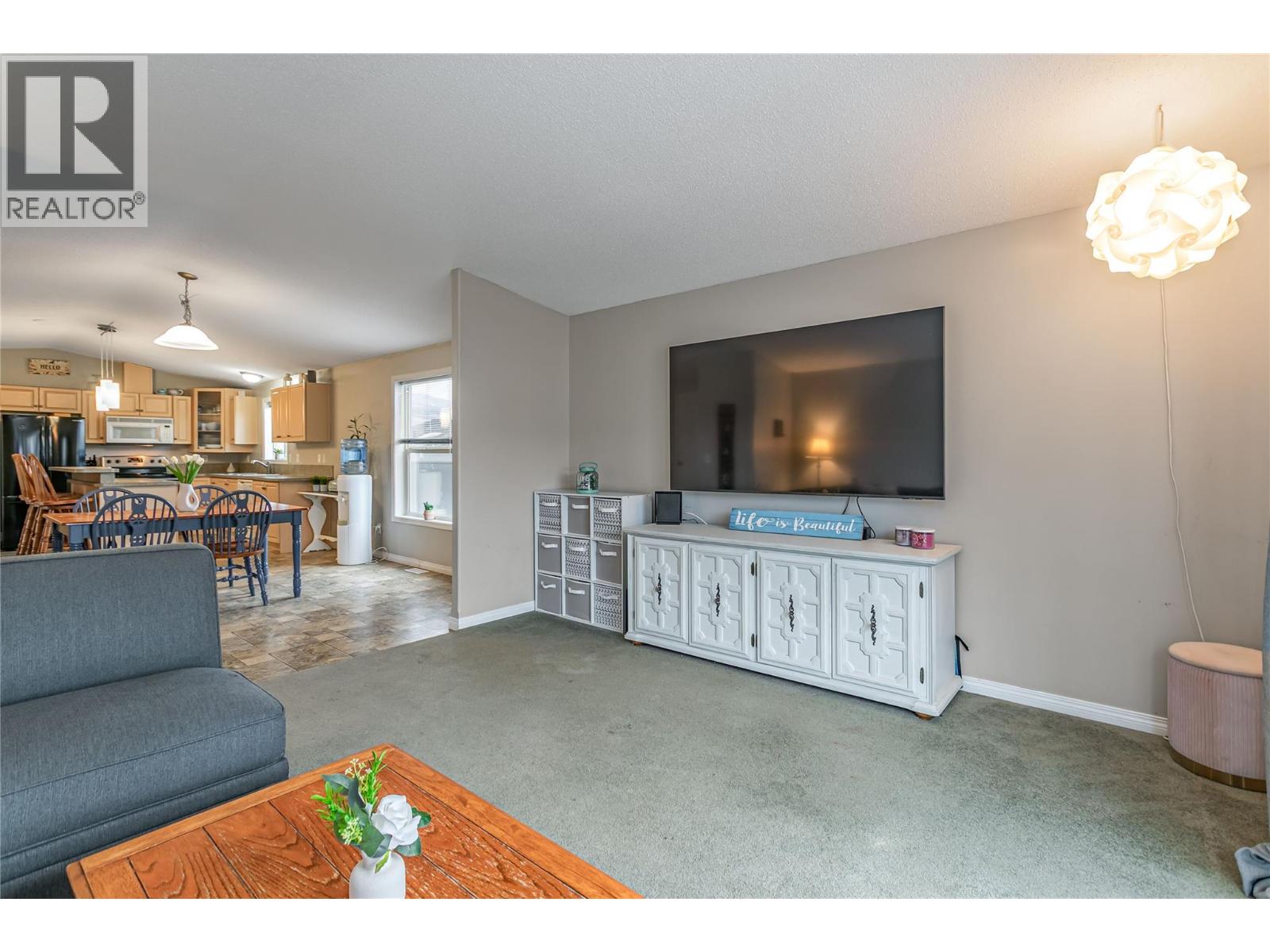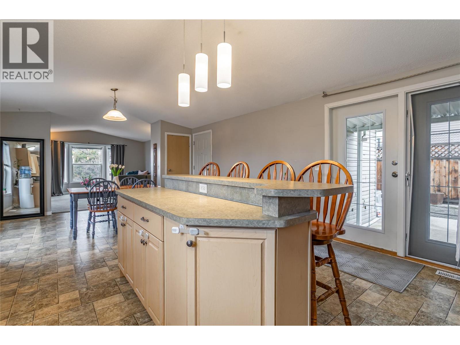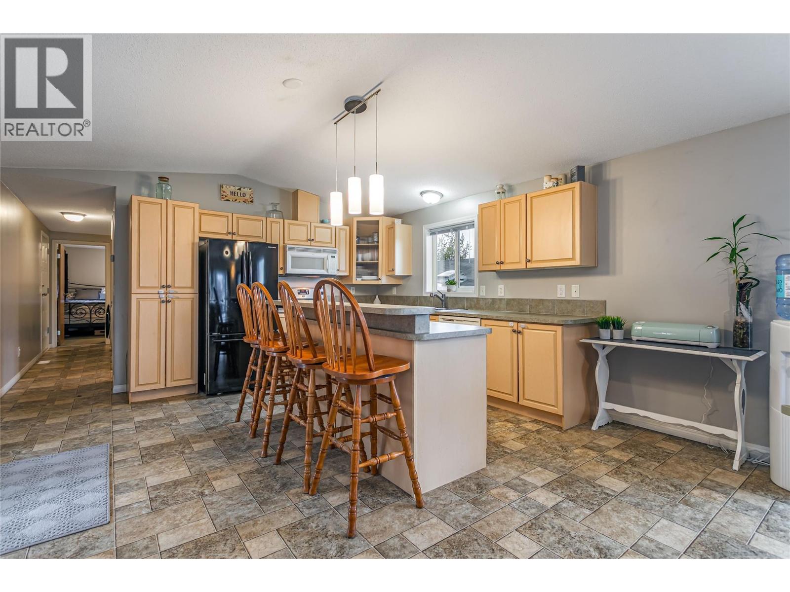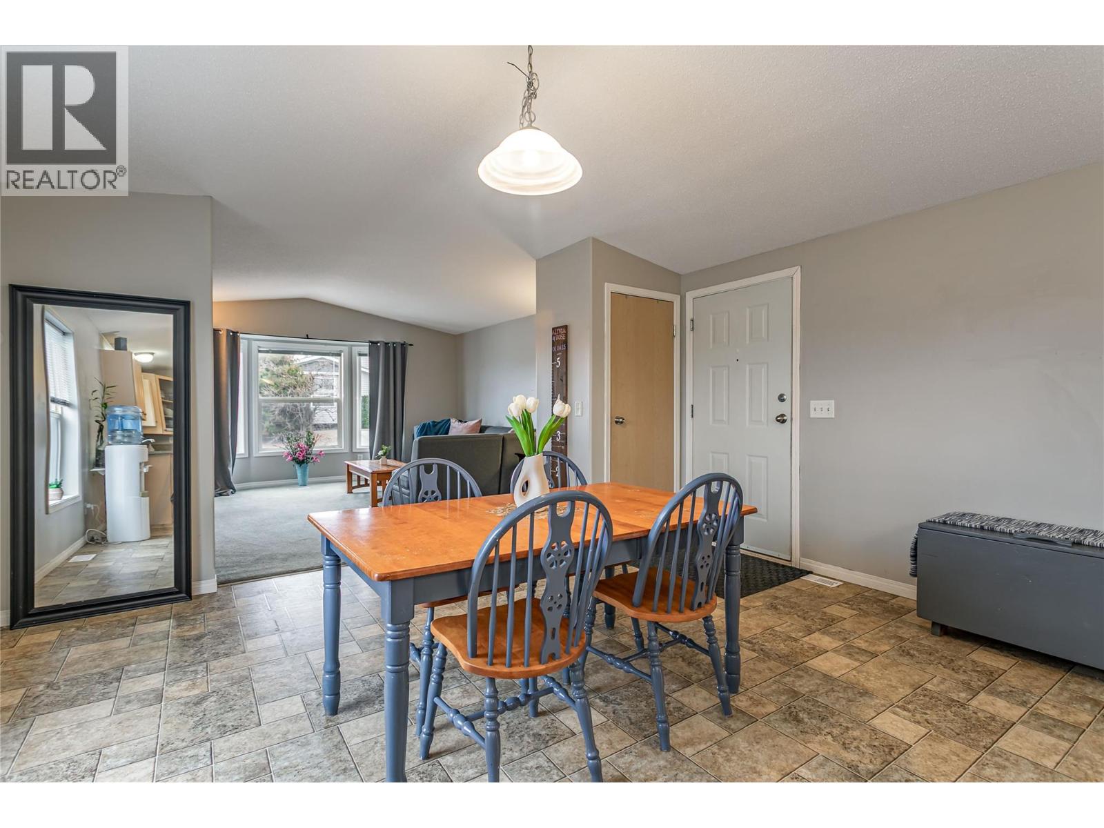 A fantastic opportunity for first-time buyers, investors or families looking to enter the market in the desirable College Heights location. This well-appointed home offers two bedrooms and one bathroom with an open-concept living area featuring a bay window that fills the space with natural light. The generous dining area flows seamlessly into the open-plan kitchen. Additional features include forced-air heating with central air conditioning, Underground irrigation, central vacuum rough-in, an all-in-one washer and dryer, vaulted 9-foot ceilings and a skylight in the bathroom. Step outside to a large, private patio and garden area, perfect for relaxing or entertaining. The fully fenced yard offers excellent privacy, with ample garden space for flowers, vegetables, or outdoor enjoyment, and includes a hot tub for year-round use. Parking is well accommodated with two driveway spaces plus a single-car garage. Enjoy no pet restrictions and a low monthly bare land strata fee of just $145. Conveniently tucked away near the UBC Okanagan, KGH airport and local amenities. Outside, this home offers beautiful mountain views and stunning Okanagan sunsets. A great alternative to renting, own your own home today! (id:6770)