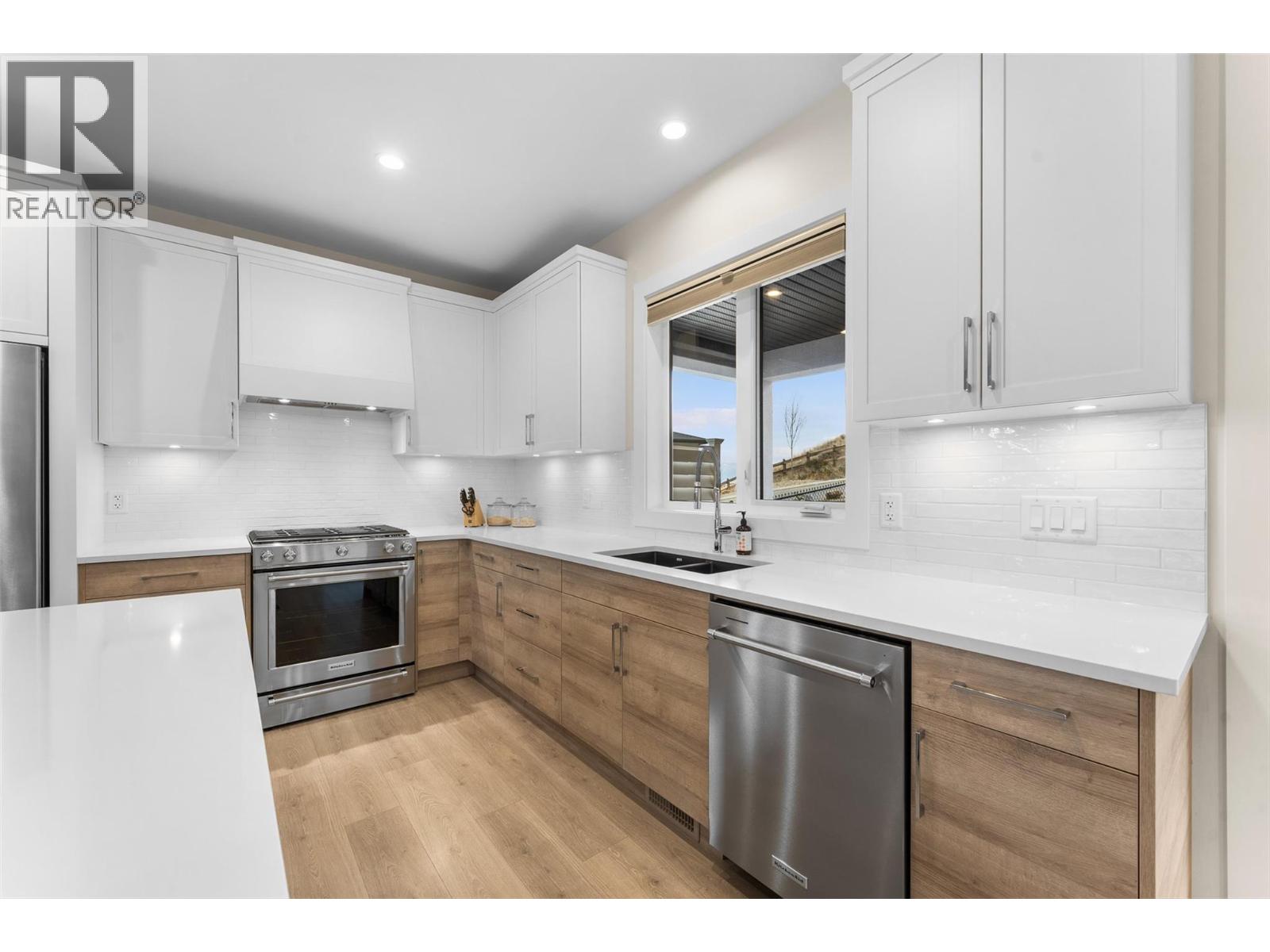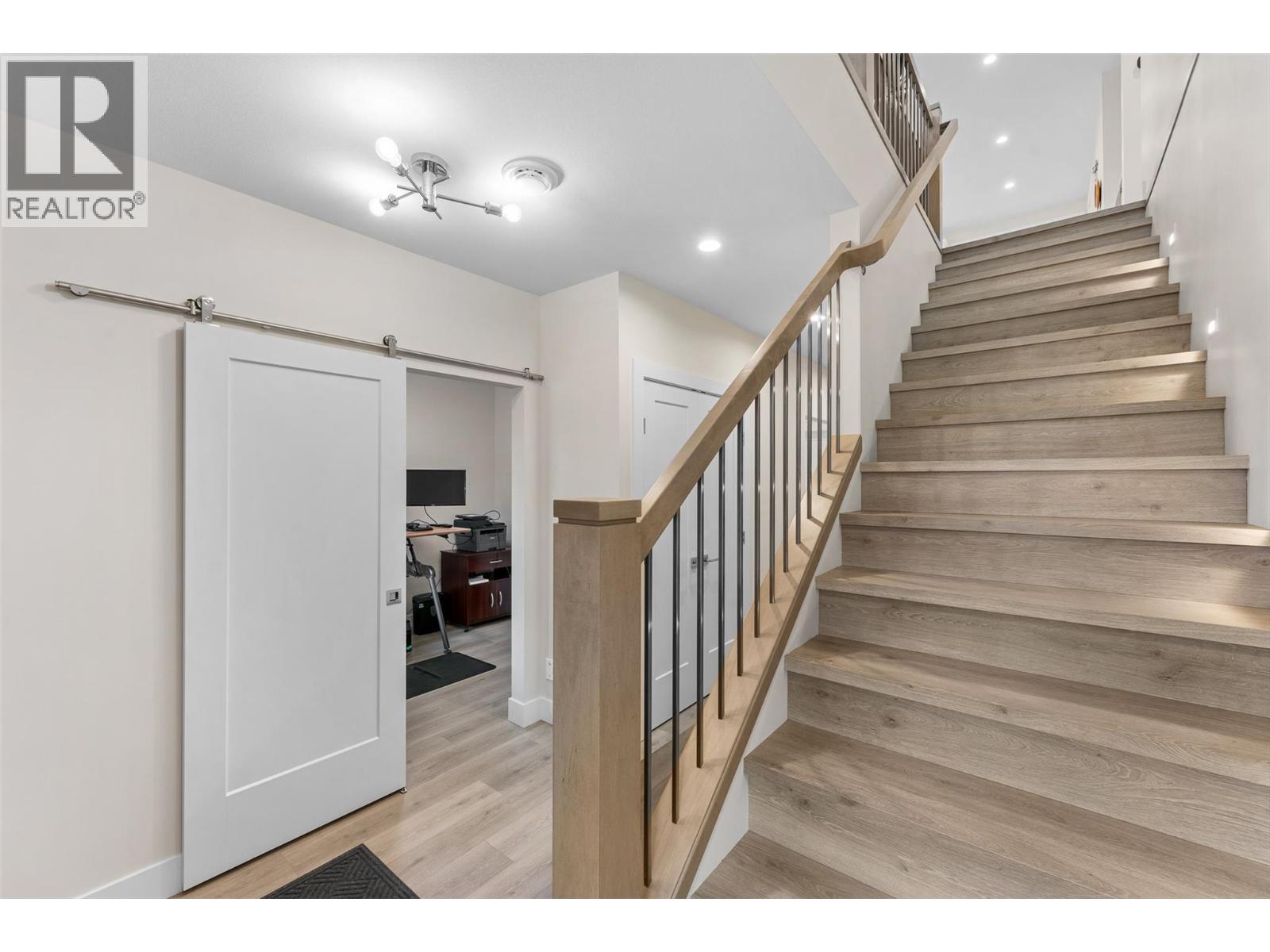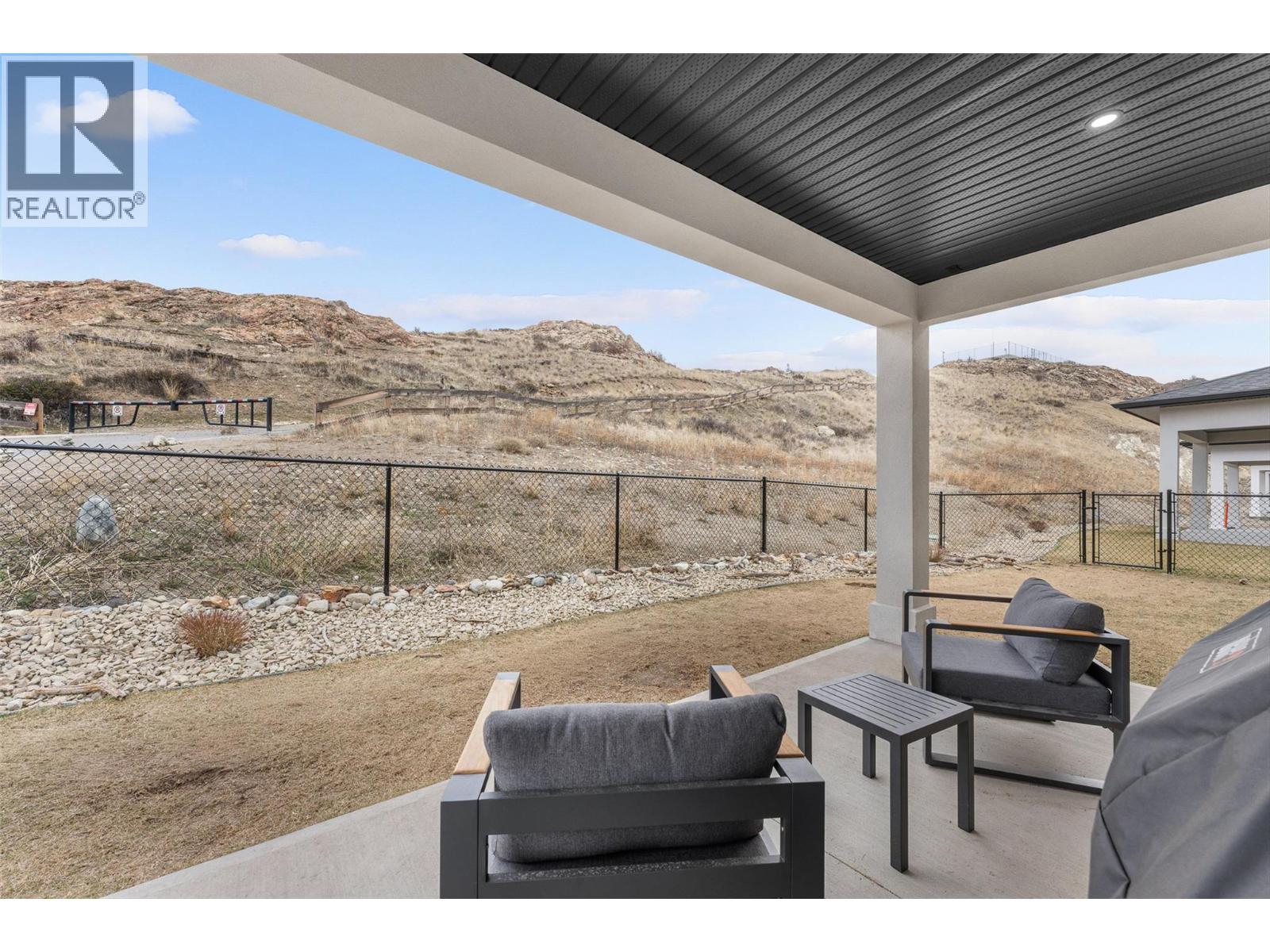 Perched at the edge of Kuipers Peak at South Ridge in the Upper Mission, this corner unit half-duplex has approximately$50K in upgrades. This home was built for people who want to be closer to nature without giving up a single modern convenience. The main level is where the home truly comes alive. High ceilings and natural light pour through generous windows, creating a space that feels both elevated and welcoming. The open kitchen features a large central island with seating for four, two-tone cabinetry, and quartz countertops, flowing seamlessly into the dining and living areas. A gas fireplace anchors the living room, while sliding doors lead to a covered deck with glass railings. The primary suite includes a spa-like ensuite with heated tile floors, a tiled walk-in shower with two shower heads and a built-in bench, plus a walk-in closet. A second bedroom, full bath, butler's pantry with built-in microwave, and laundry complete this level. The lower level offers a bedroom, four-piece bath, dedicated office, and recreation room with a wet bar, ideal for guests or a home gym. Walk out to the fully fenced backyard with a covered patio where sunshades keep you comfortable on warm afternoons. A two-car garage provides parking and storage. Located in a new community with quiet, no-through-access streets, you're three minutes from the new Mission Village shopping center, and steps to the trails of Thomson Flats, where the hills invite you to hike, bike, and explore. (id:6770)