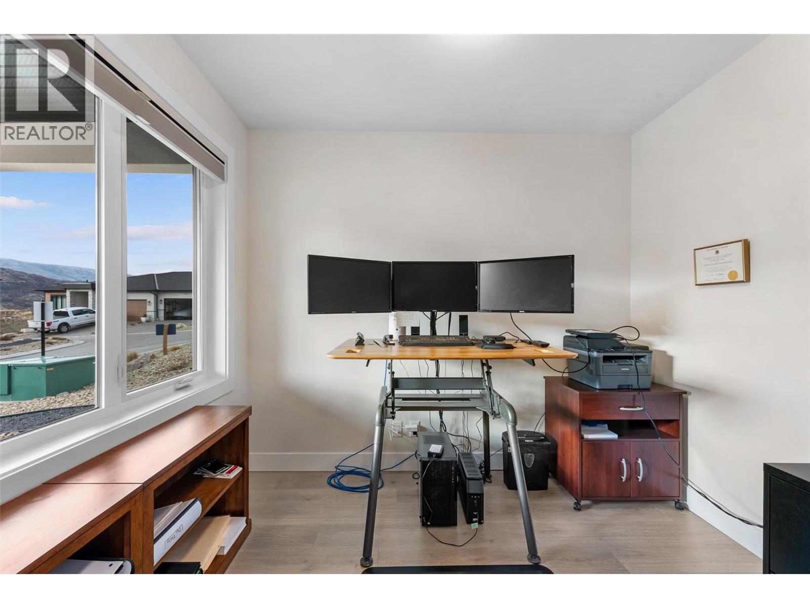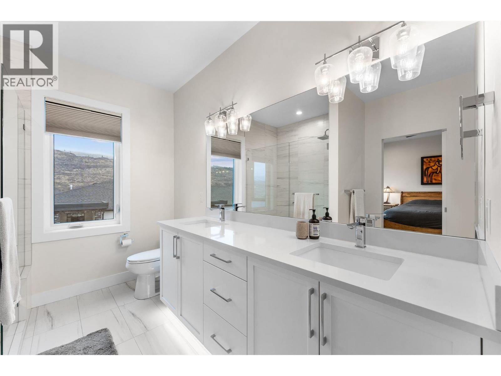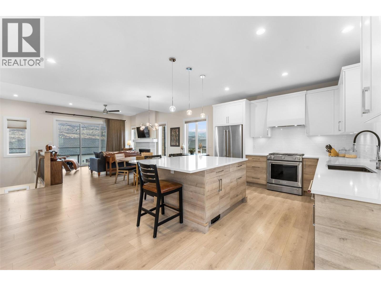 Perched at the edge of Kuipers Peak at South Ridge in the Upper Mission, this corner unit half-duplex has approximately$50K in upgrades. This home was built for people who want to be closer to nature without giving up a single modern convenience. The main level is where the home truly comes alive. High ceilings and natural light pour through generous windows, creating a space that feels both elevated and welcoming. The open kitchen features a large central island with seating for four, two-tone cabinetry, and quartz countertops, flowing seamlessly into the dining and living areas. A gas fireplace anchors the living room, while sliding doors lead to a covered deck with glass railings. The primary suite includes a spa-like ensuite with heated tile floors, a tiled walk-in shower with two shower heads and a built-in bench, plus a walk-in closet. A second bedroom, full bath, butler's pantry with built-in microwave, and laundry complete this level. The lower level offers a bedroom, four-piece bath, dedicated office, and recreation room with a wet bar, ideal for guests or a home gym. Walk out to the fully fenced backyard with a covered patio where sunshades keep you comfortable on warm afternoons. A two-car garage provides parking and storage. Located in a new community with quiet, no-through-access streets, you're three minutes from the new Mission Village shopping center, and steps to the trails of Thomson Flats, where the hills invite you to hike, bike, and explore. (id:6770)